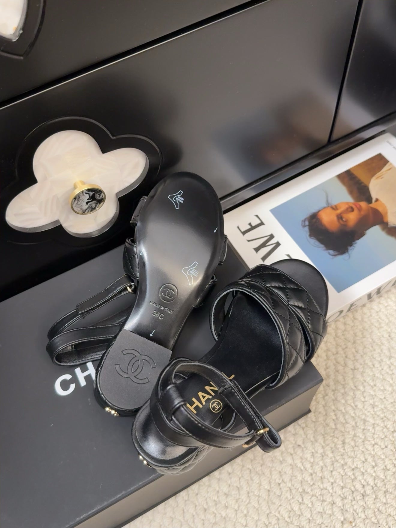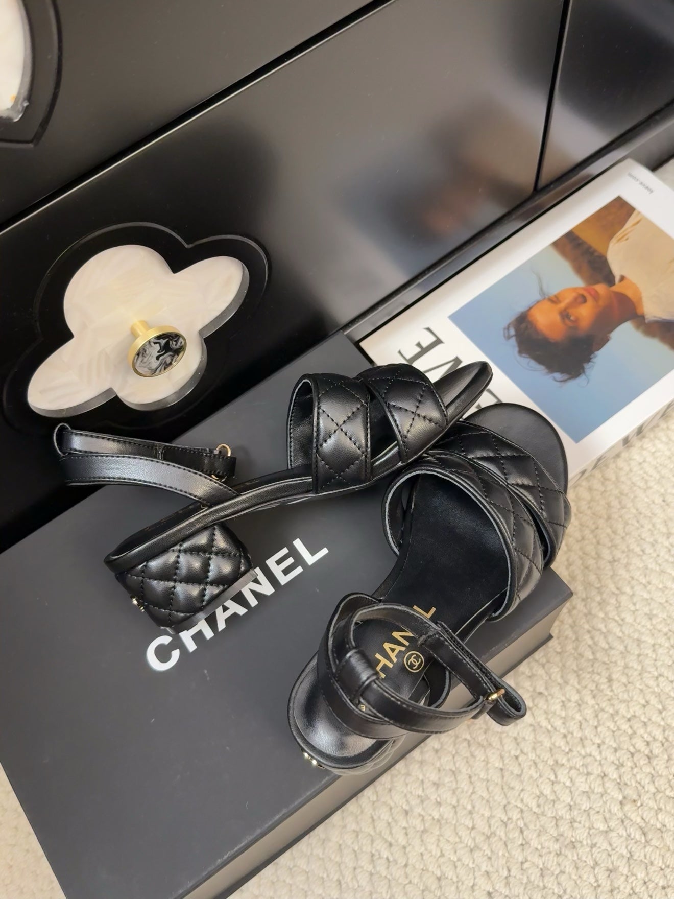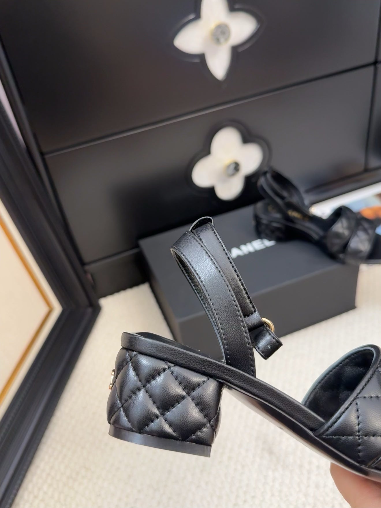 25C Sandal 45mm Open Heel Black Lambskin 233491