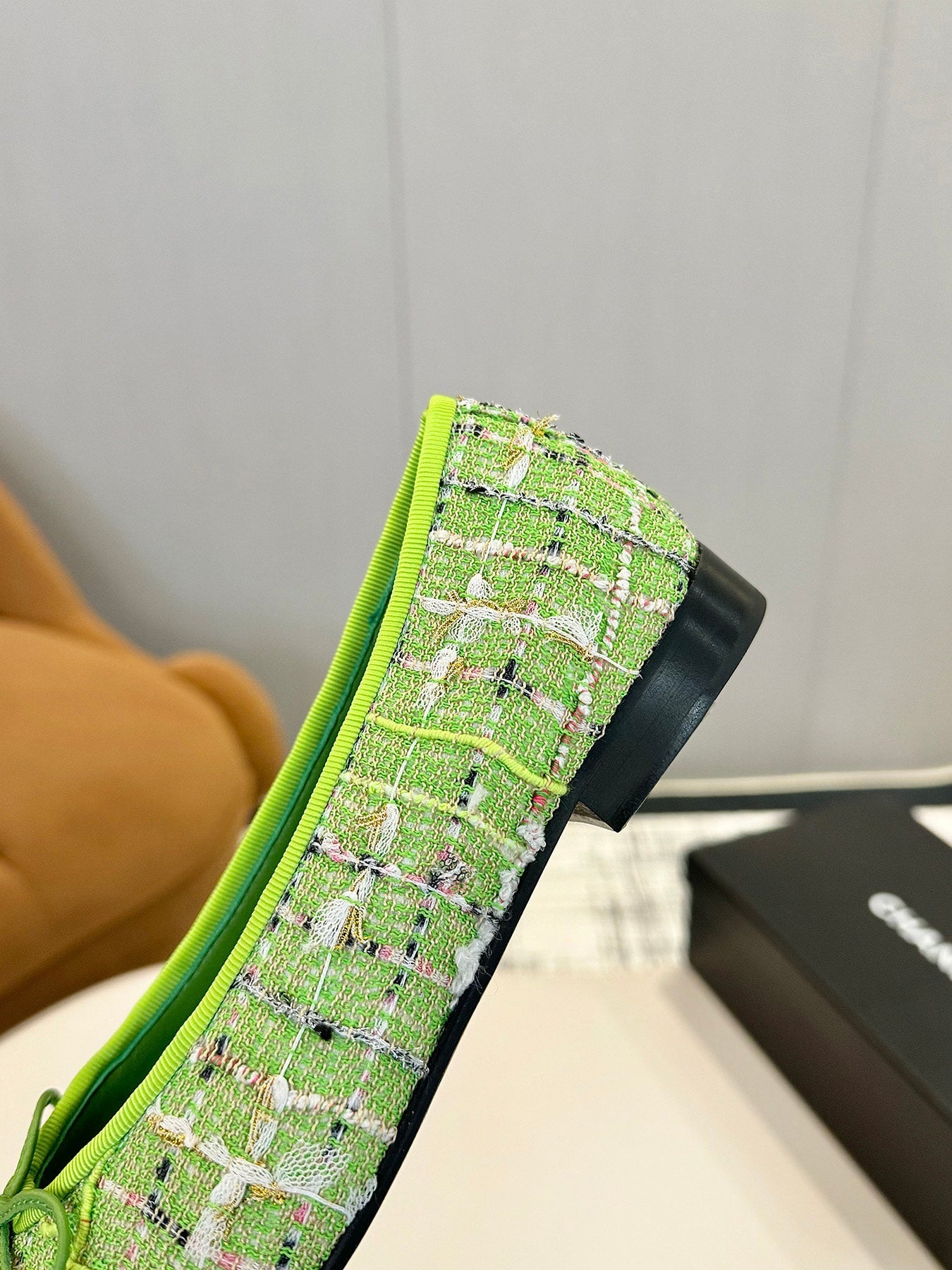 BALLET FLATS IN EMERALD GREEN TWEED AND FABRIC