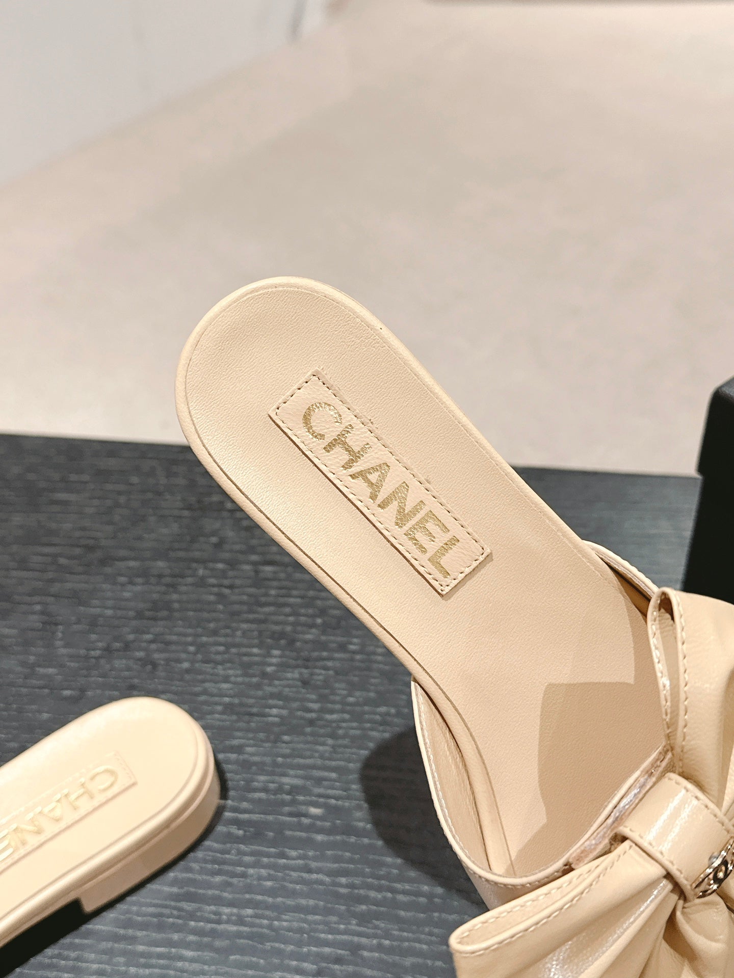 BOW LADY SLIPPERS BEIGE CREAM LAMBSKIN