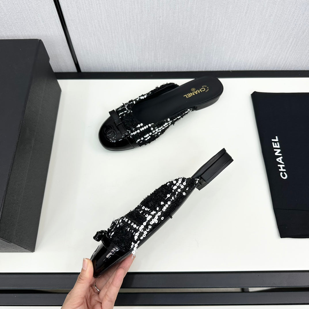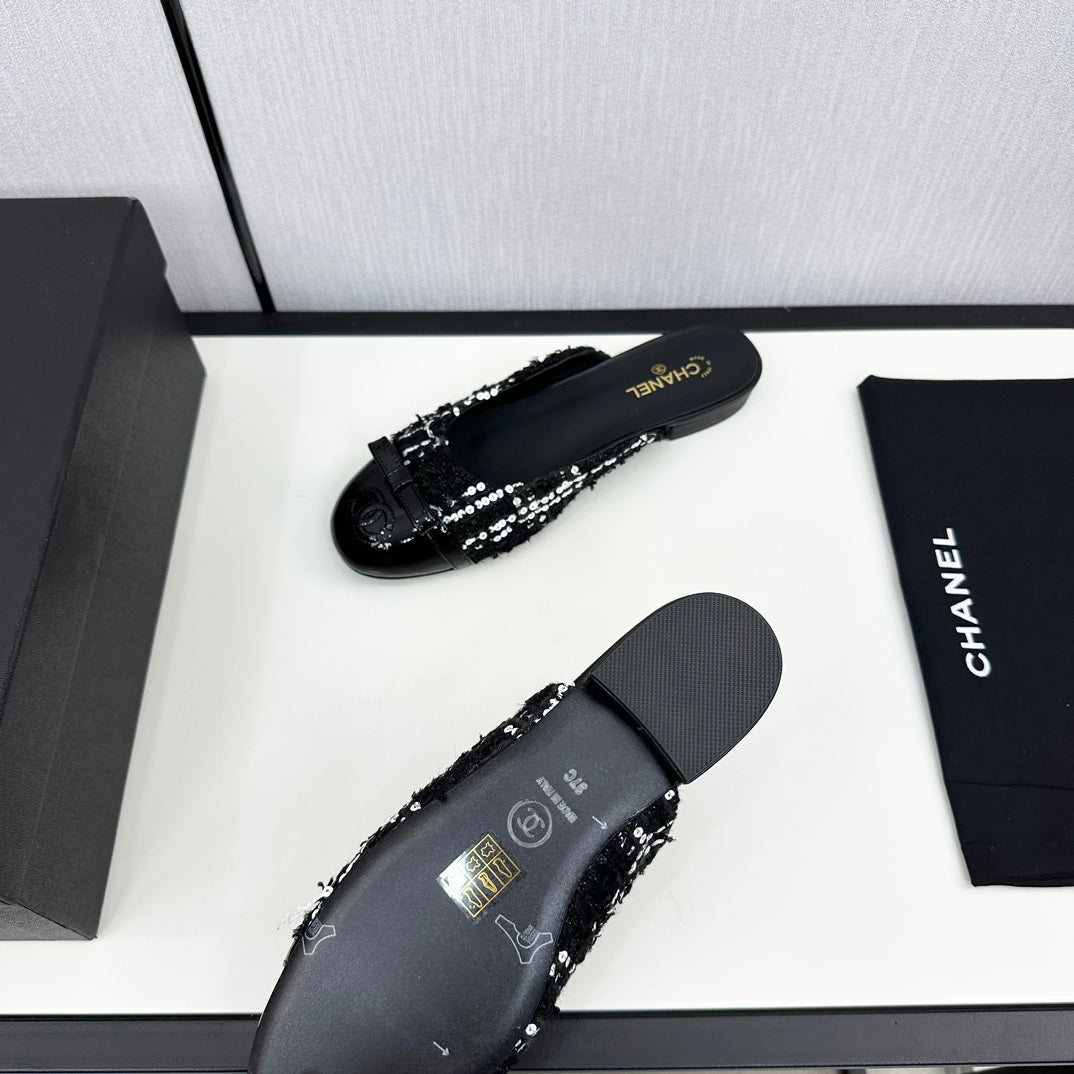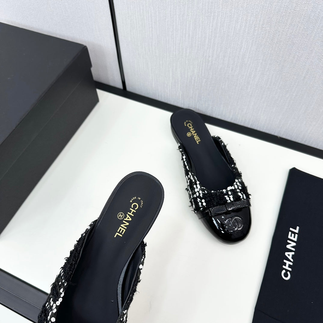 BOW MULE IN BLACK MIX WHITE FUR AND CALFSKIN