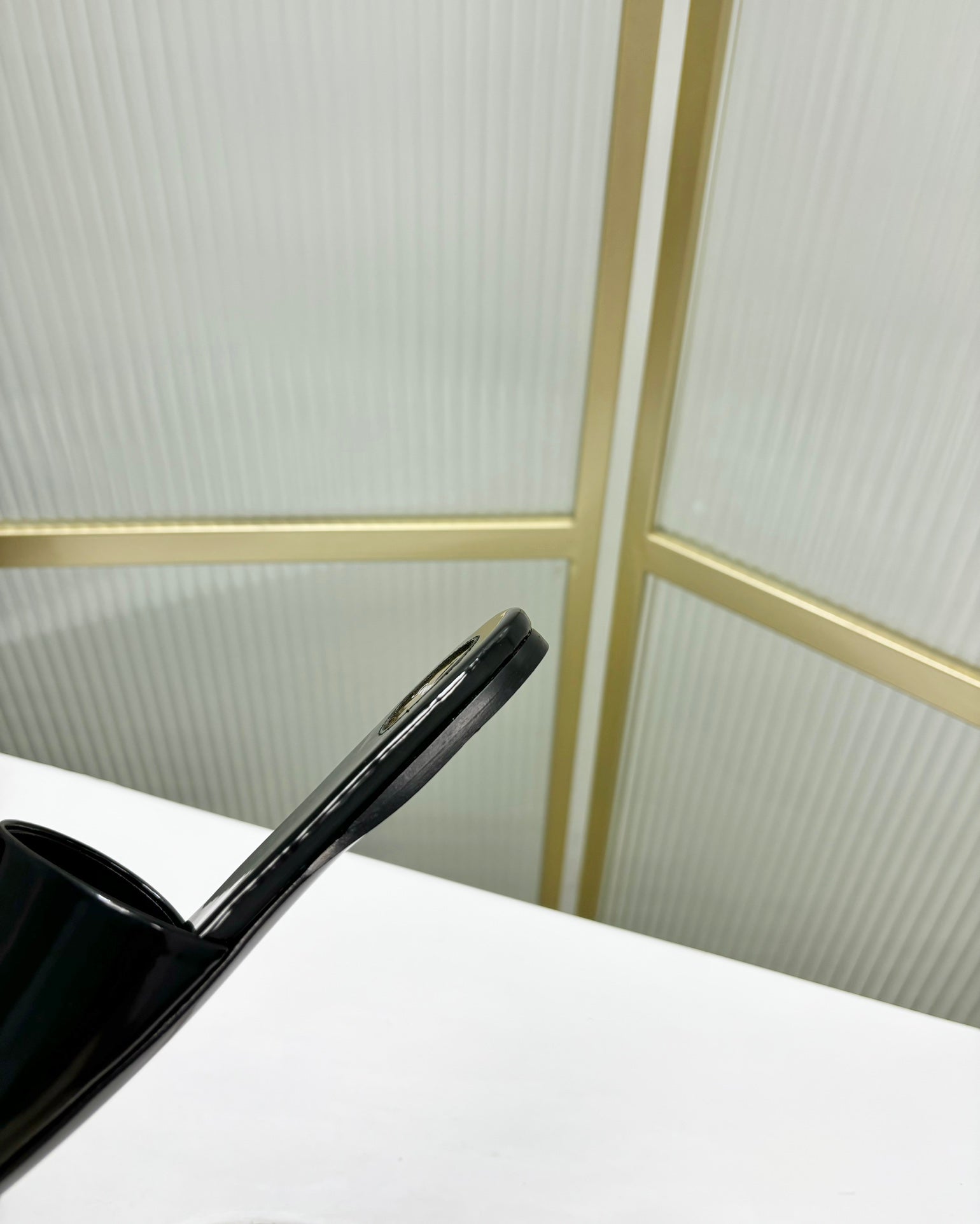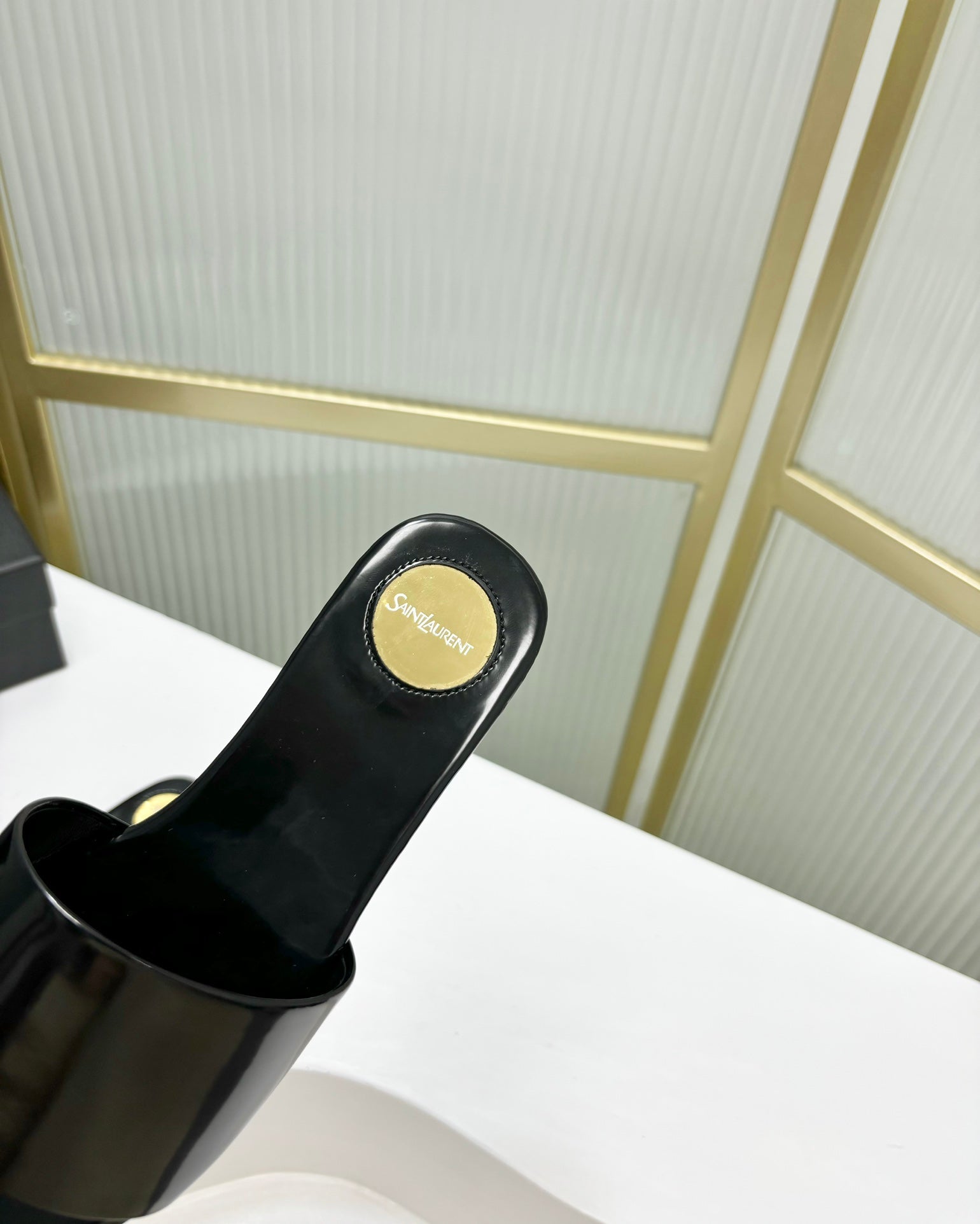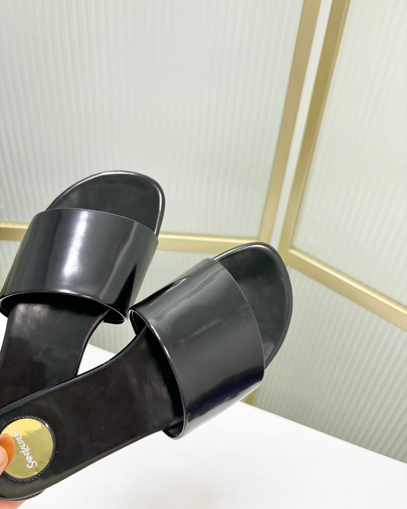 CARLYLE SLIDES IN BLACK GLAZED LEATHER