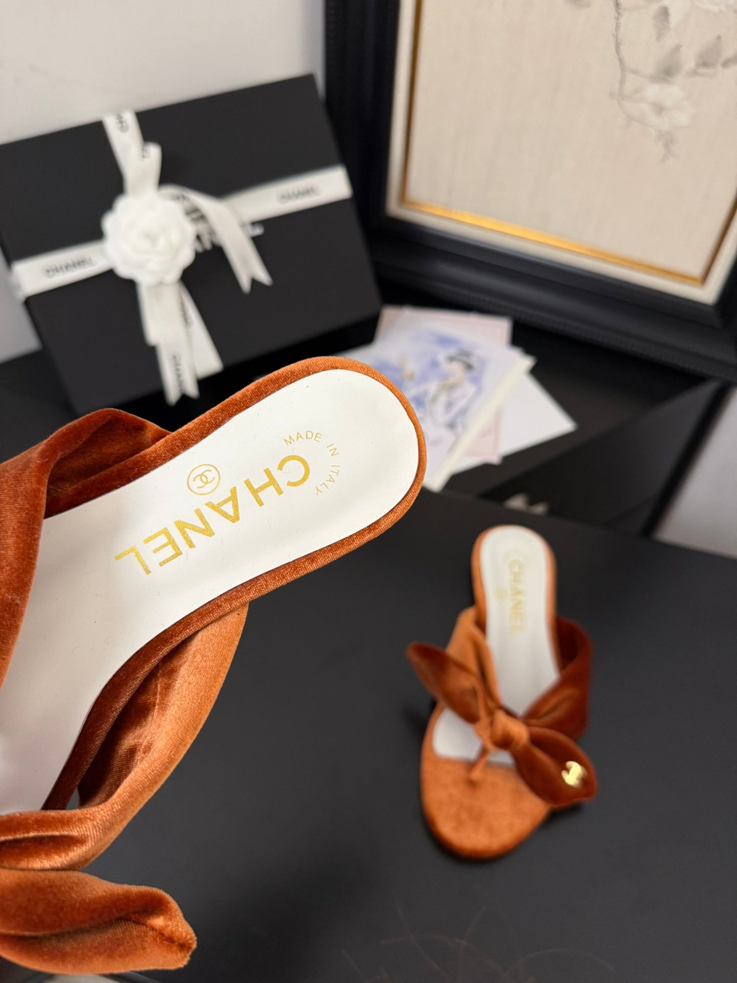 CC 25C Thong Sandal Bow Pumpkin Velvet fabric 233565