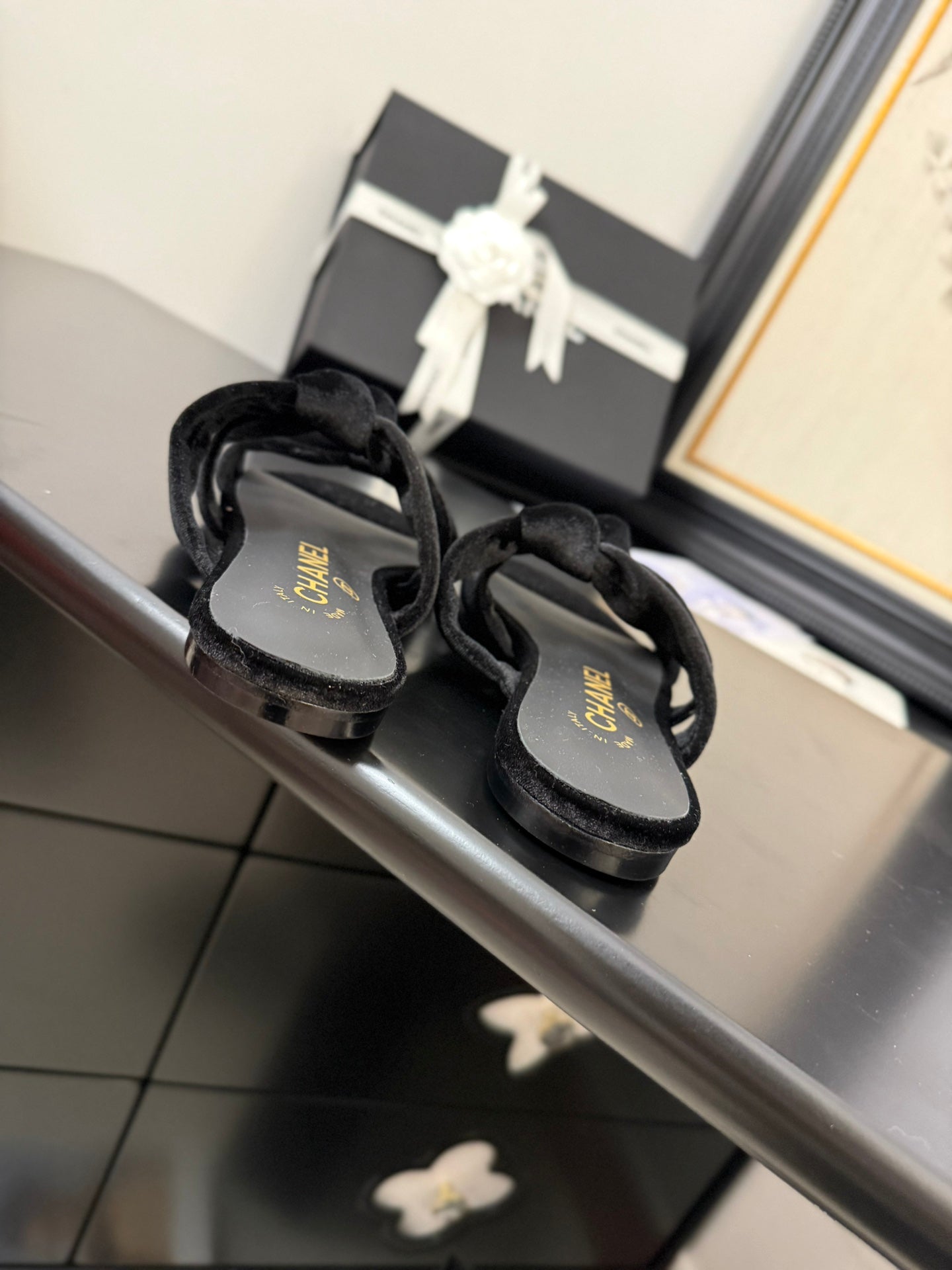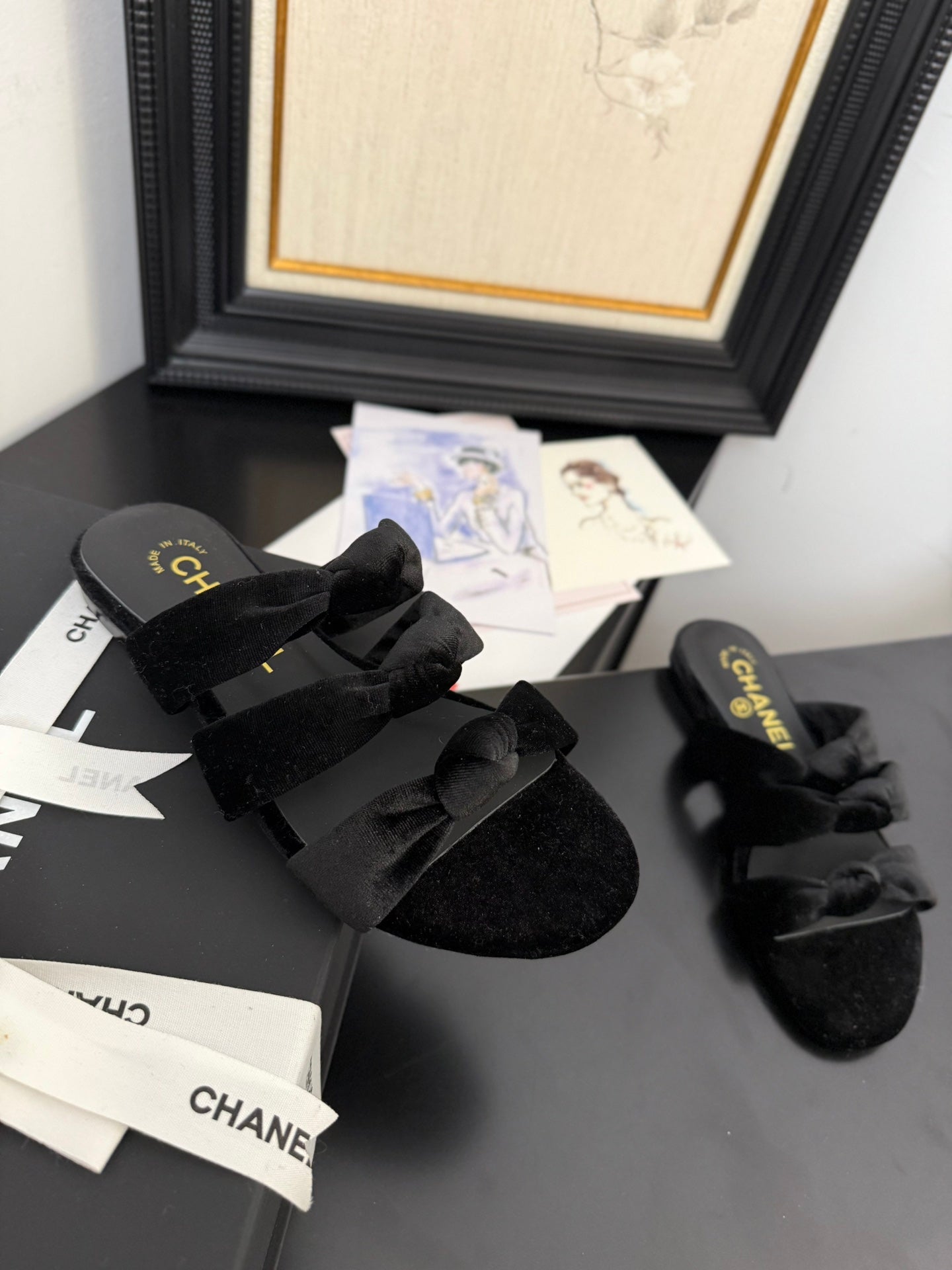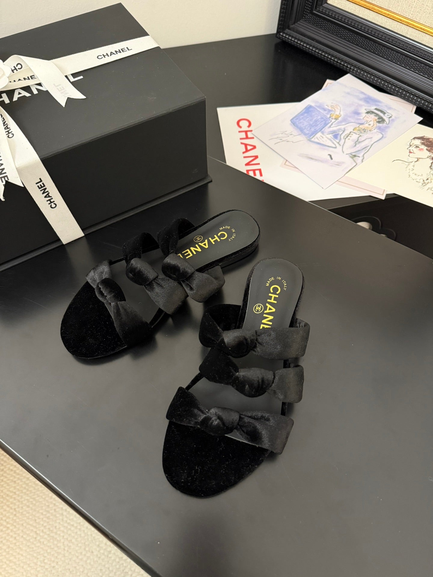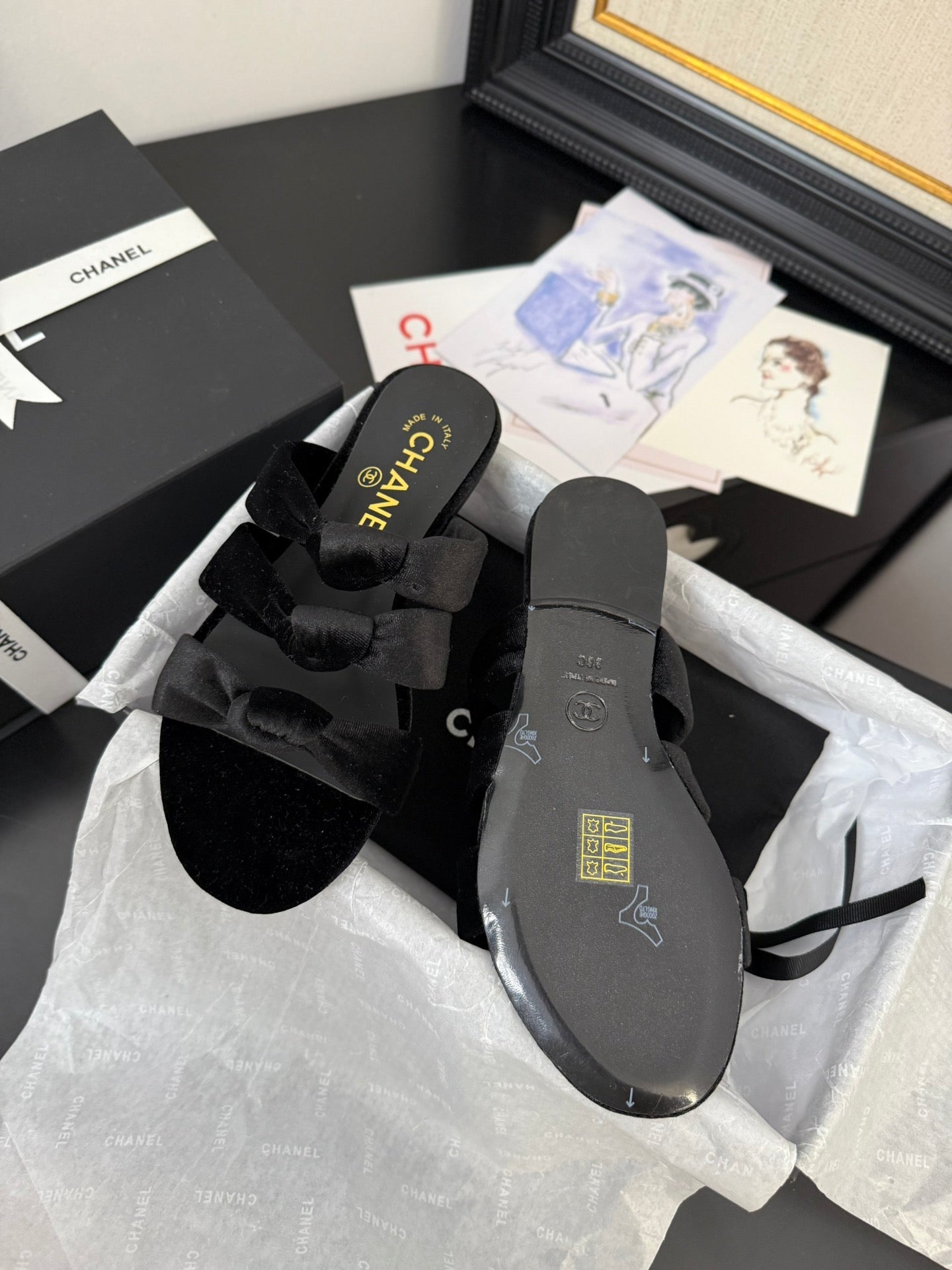 CC 25C Three Strap Mule Black Velvet fabric 233559