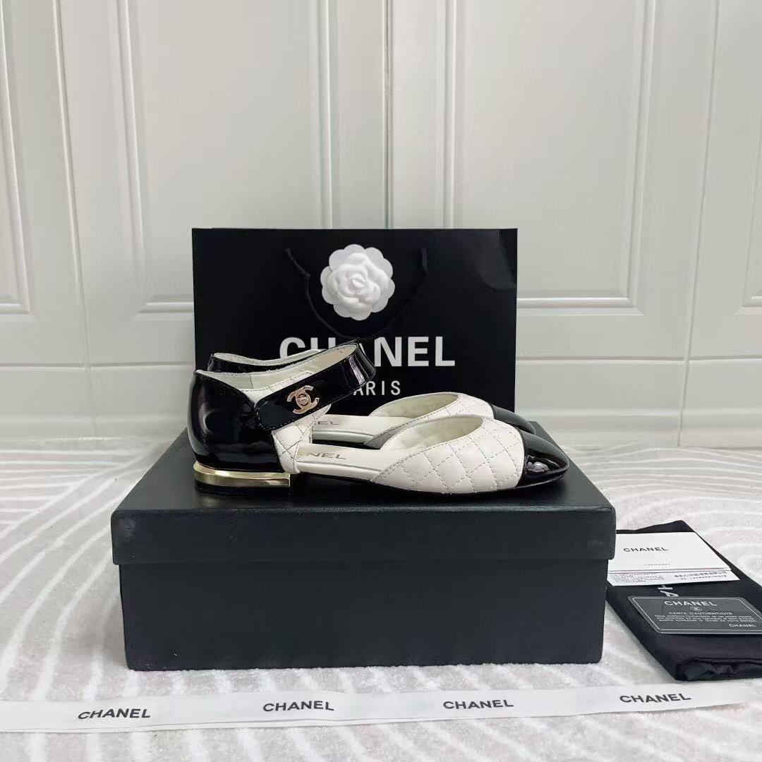CC FLAT SANDAL IN WHITE MIX BLACK CALFSKIN