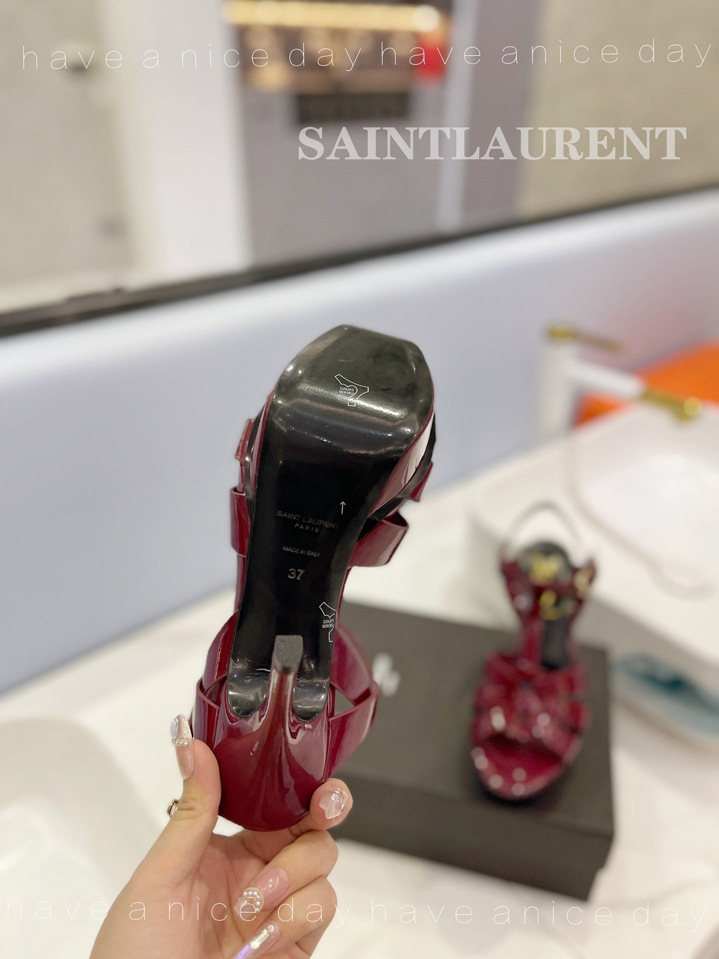SL TRIBUTE POINED TOE SANDALS GLOSSY BERRY CALFSKIN