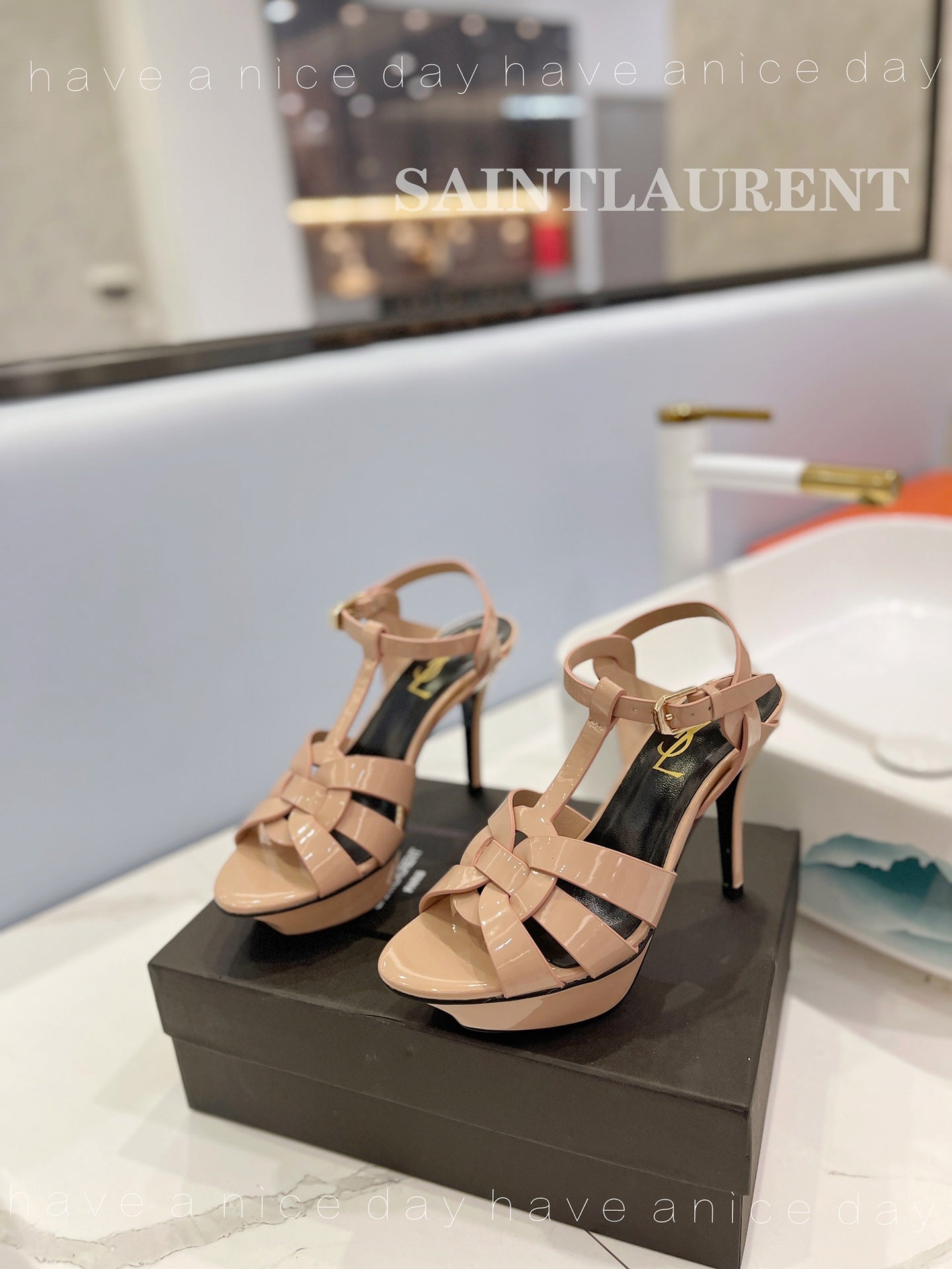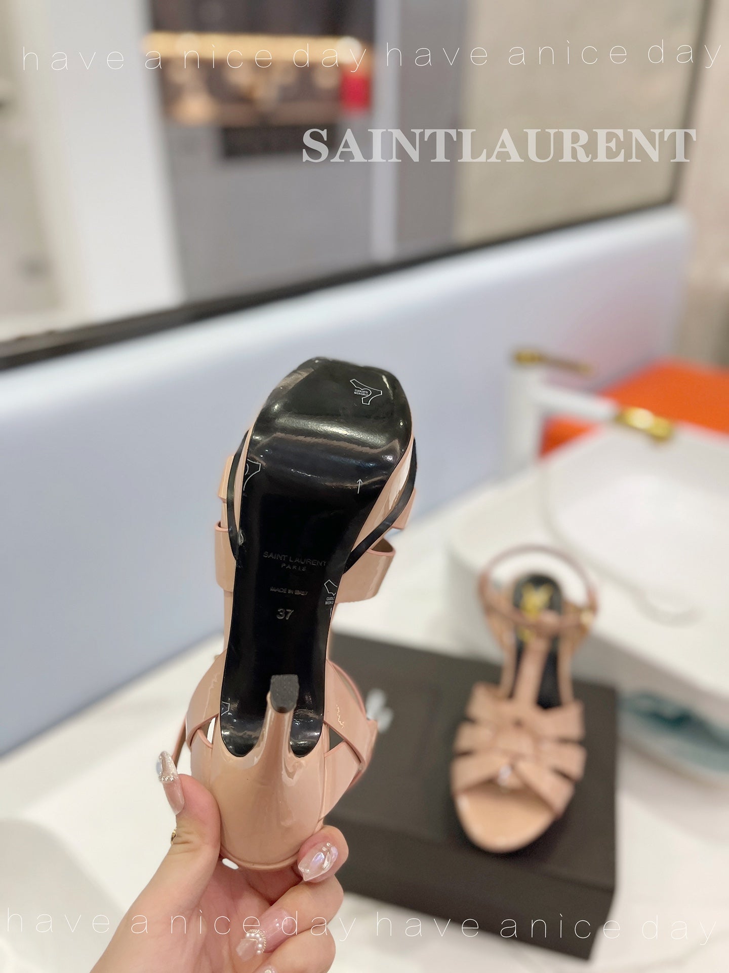 SL TRIBUTE POINED TOE SANDALS GLOSSY DUSTY ROSE CALFSKIN