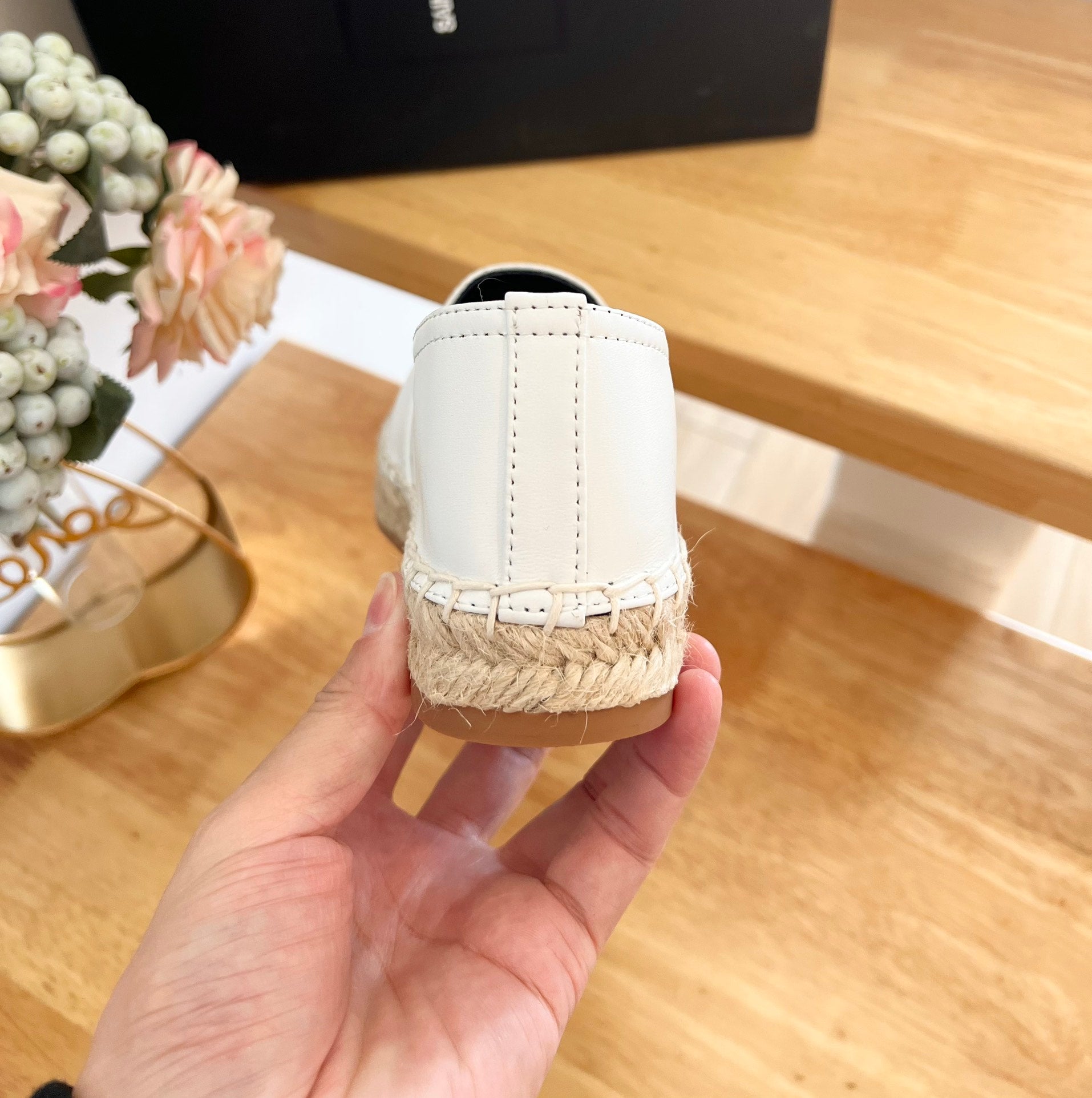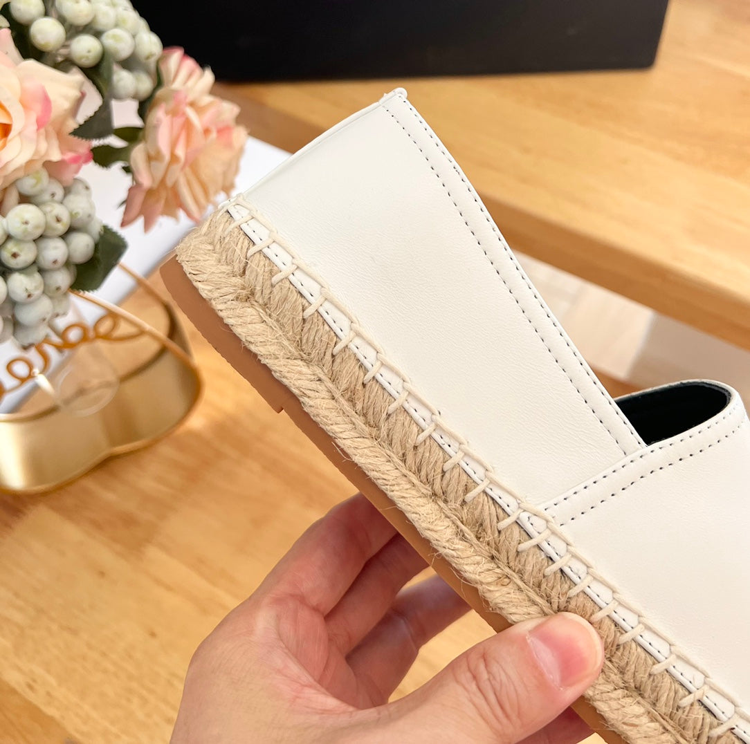 SL YVES EMBOSSED LOGO SLIP ON WHITE AND BLACK CALFSKIN