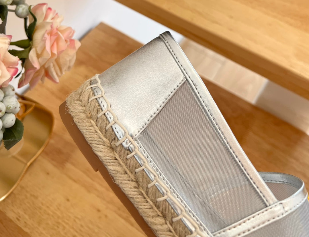 SL YVES LOGO SLIP ON SILVER CALFSKIN AND MESH