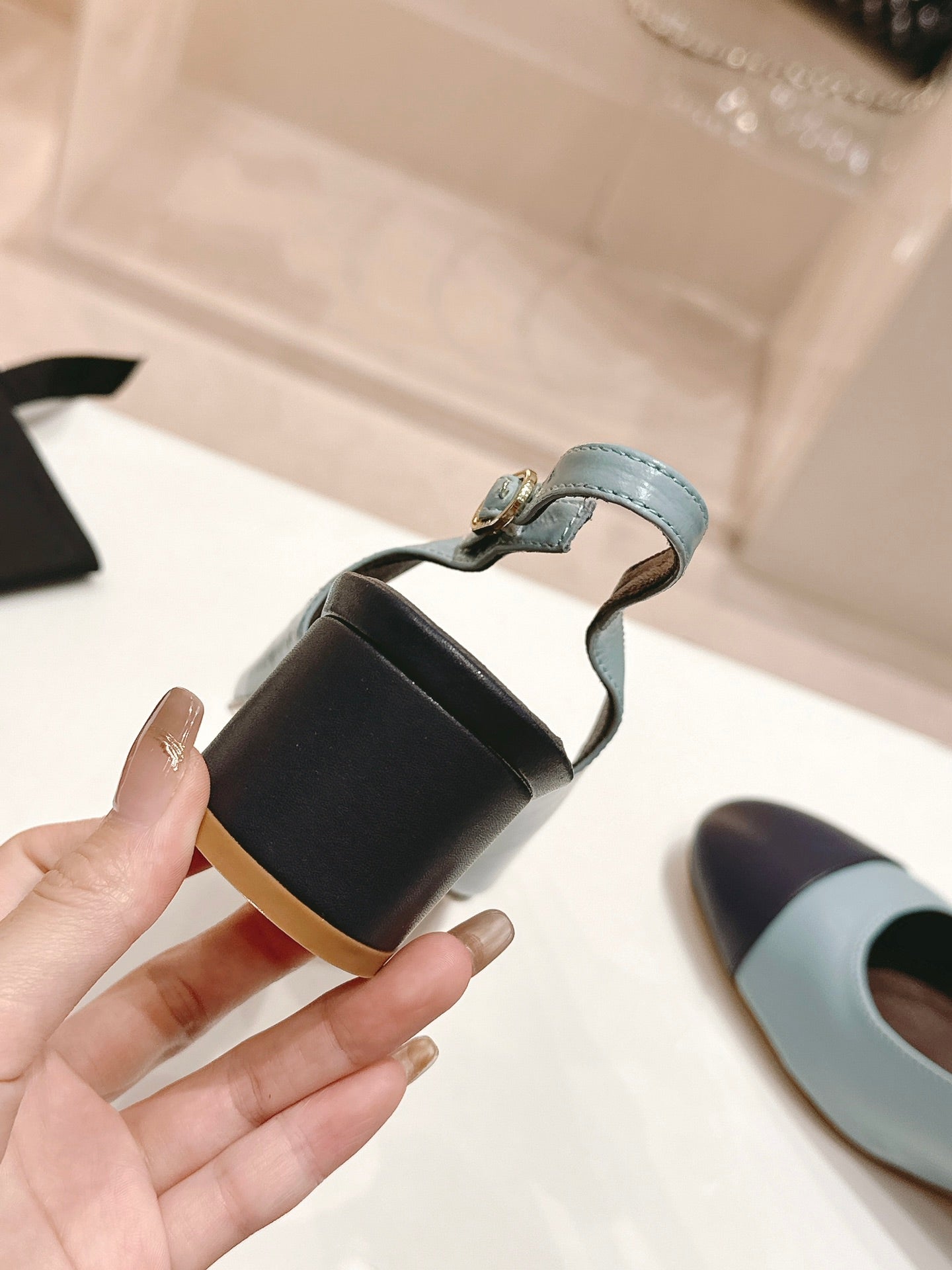 SLINGBACKS LIGHT BLUE MIX BLACK SHEEPSKIN