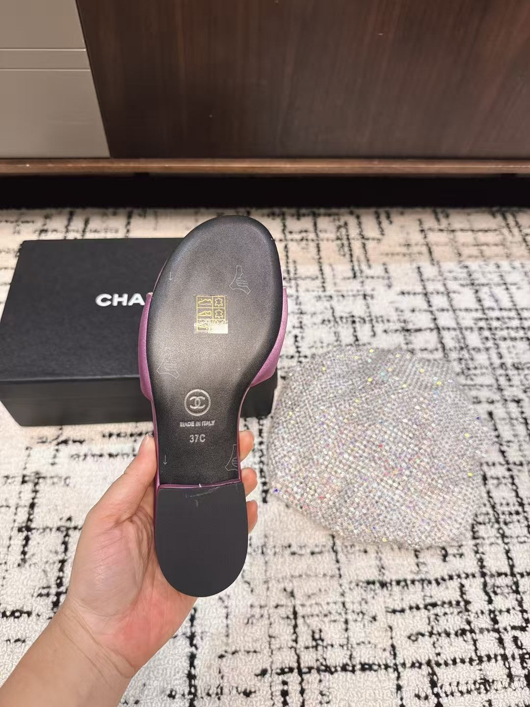 SLIPPERS IN LILAC PURPLE SATIN MIX CALFSKIN