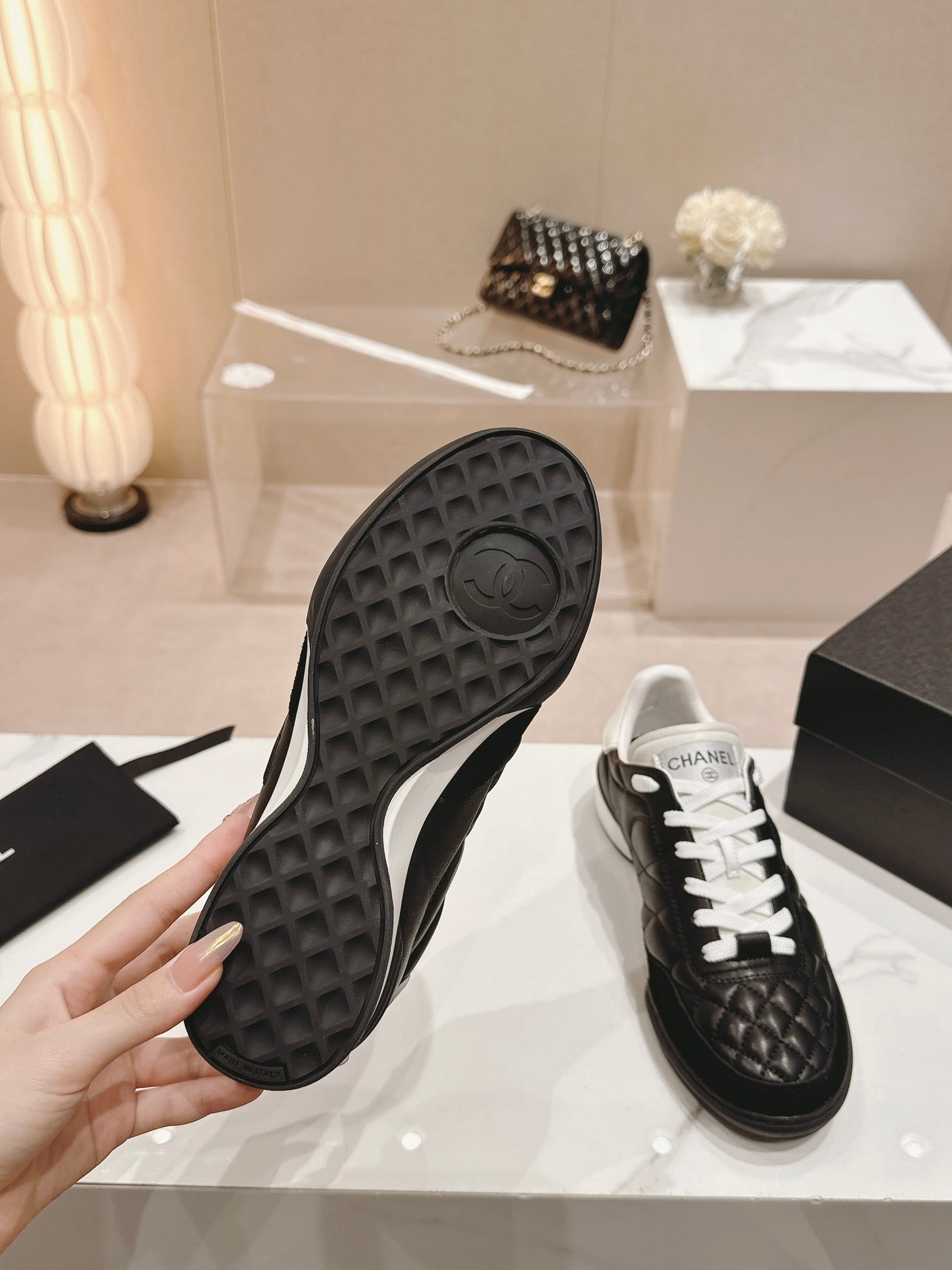 SNEAKERS IN GLOSSY BLACK LAMBSKIN