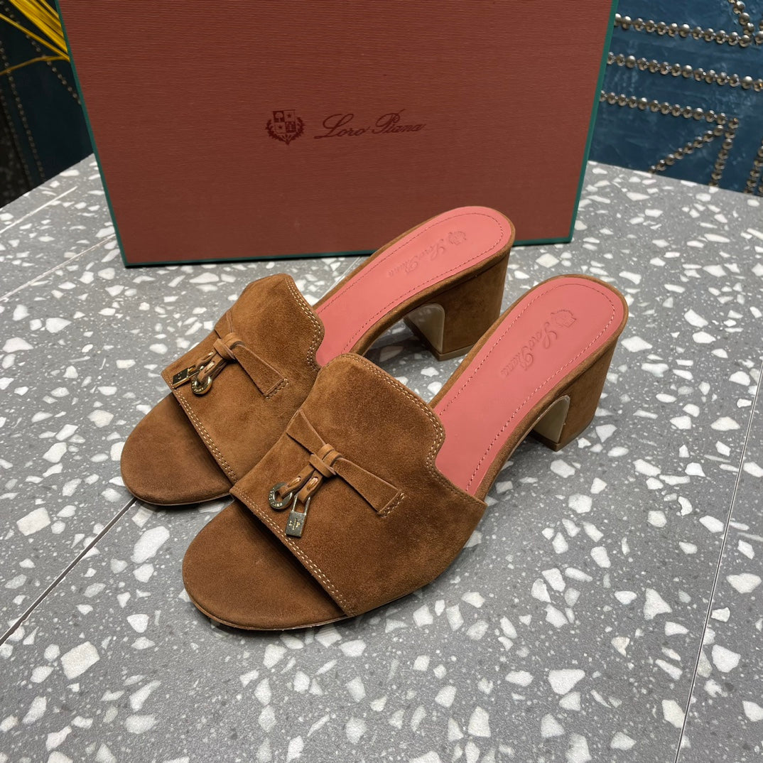 Summer Charms Mules 80 Brown Suede Salmon Lambskin