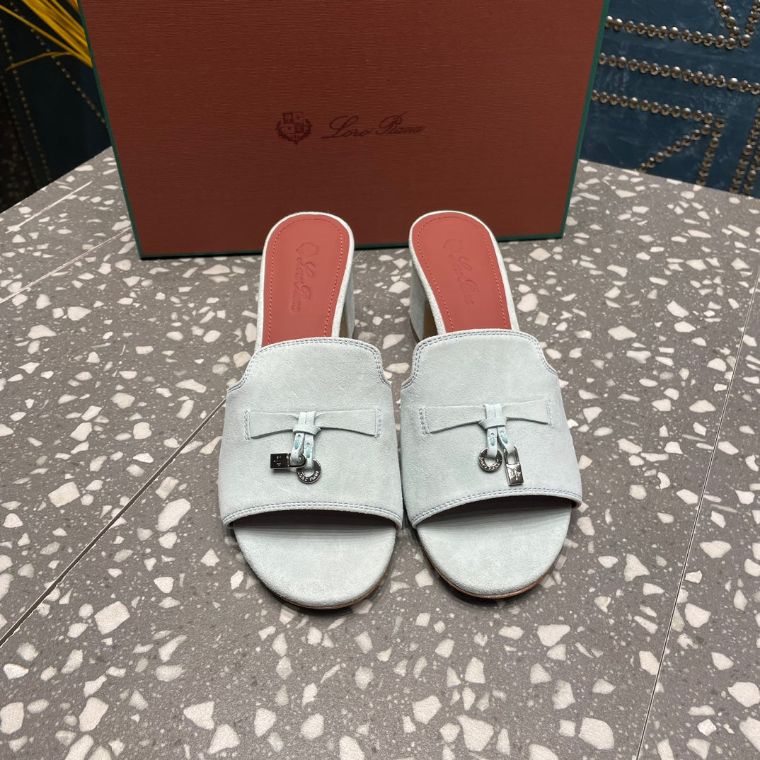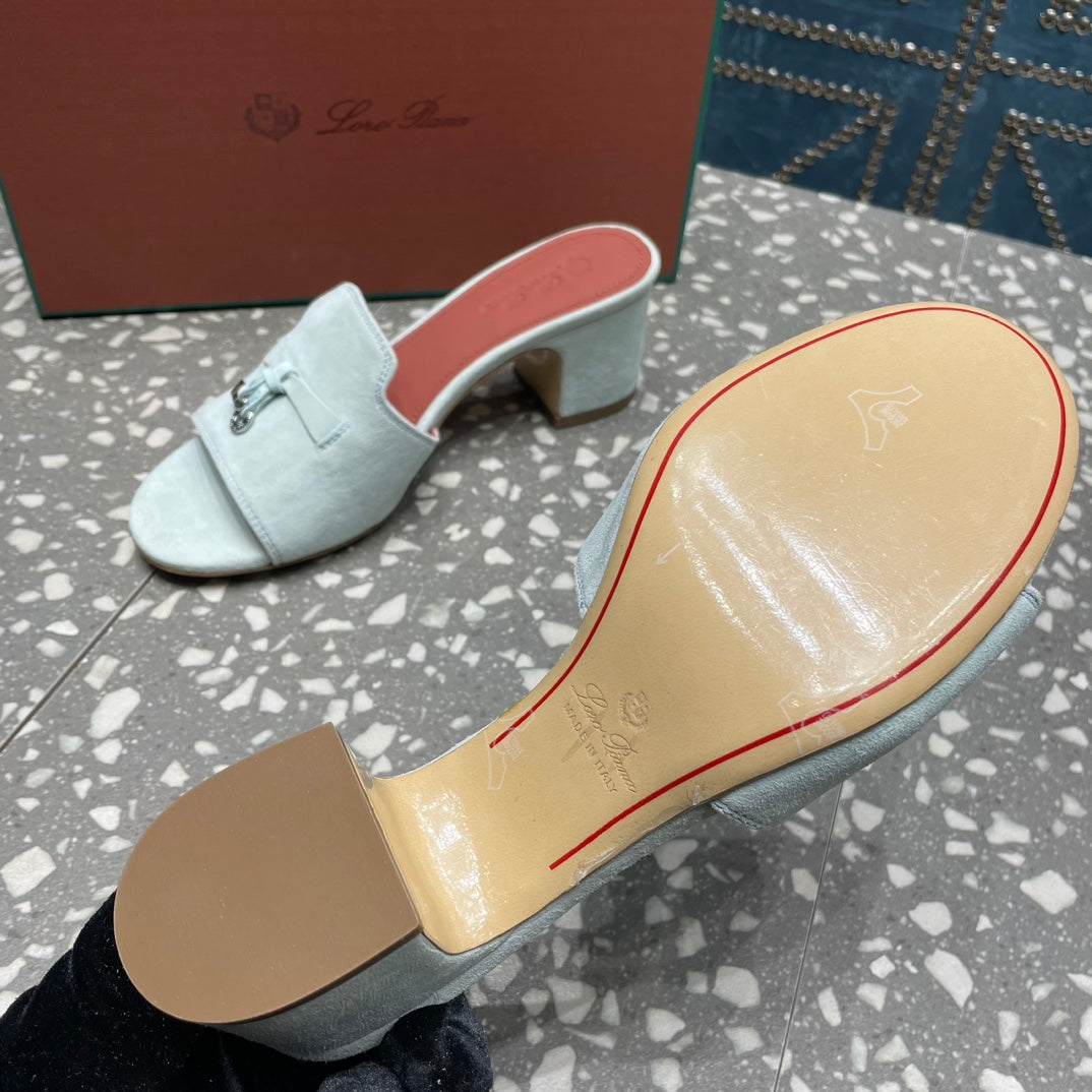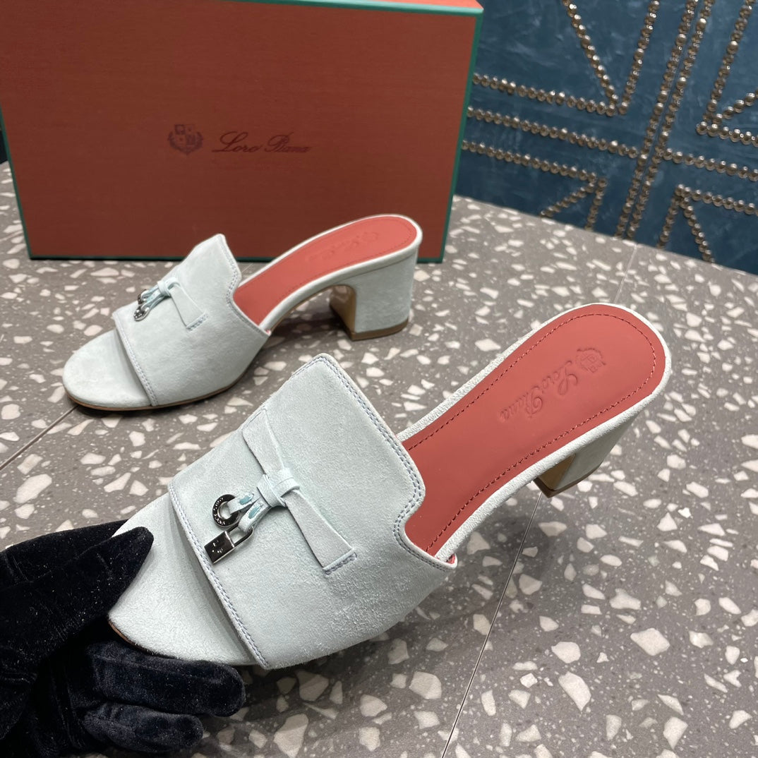 Summer Charms Mules 80 Pale Gray Suede Salmon Lambskin