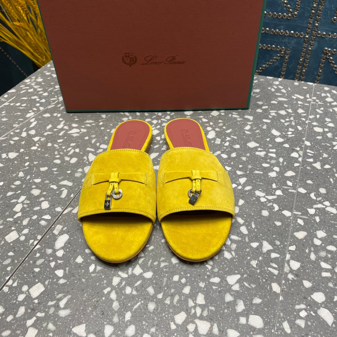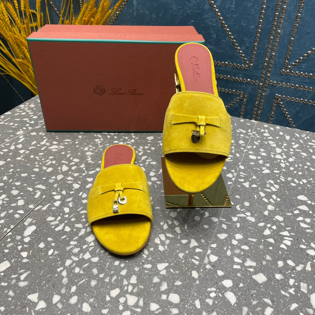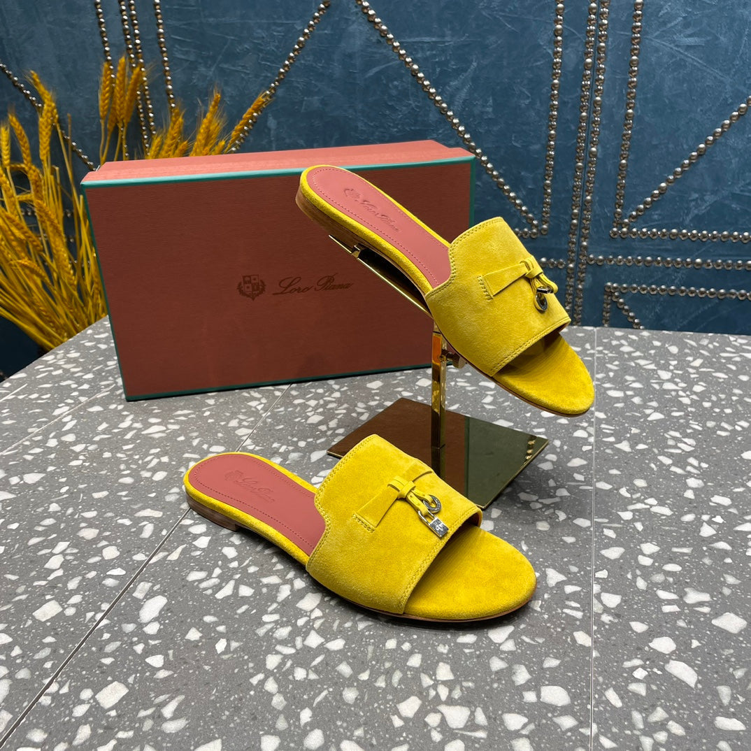 Summer Charms Sandals in Yellow Suede Maroon Lambskin