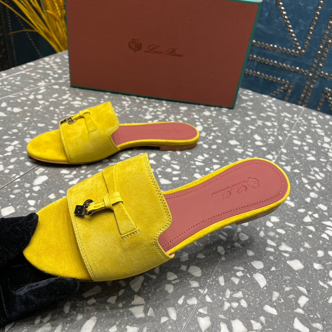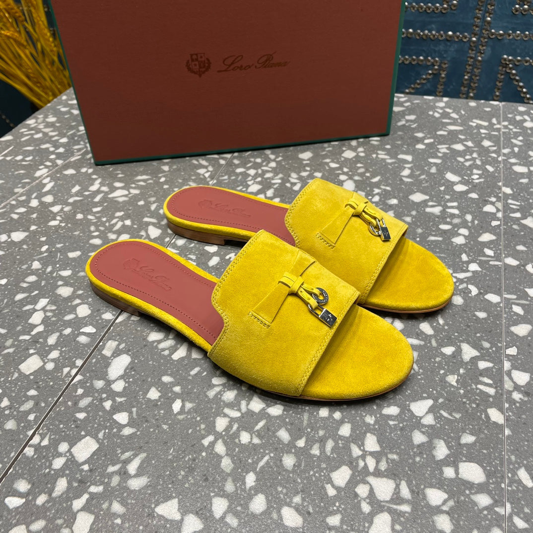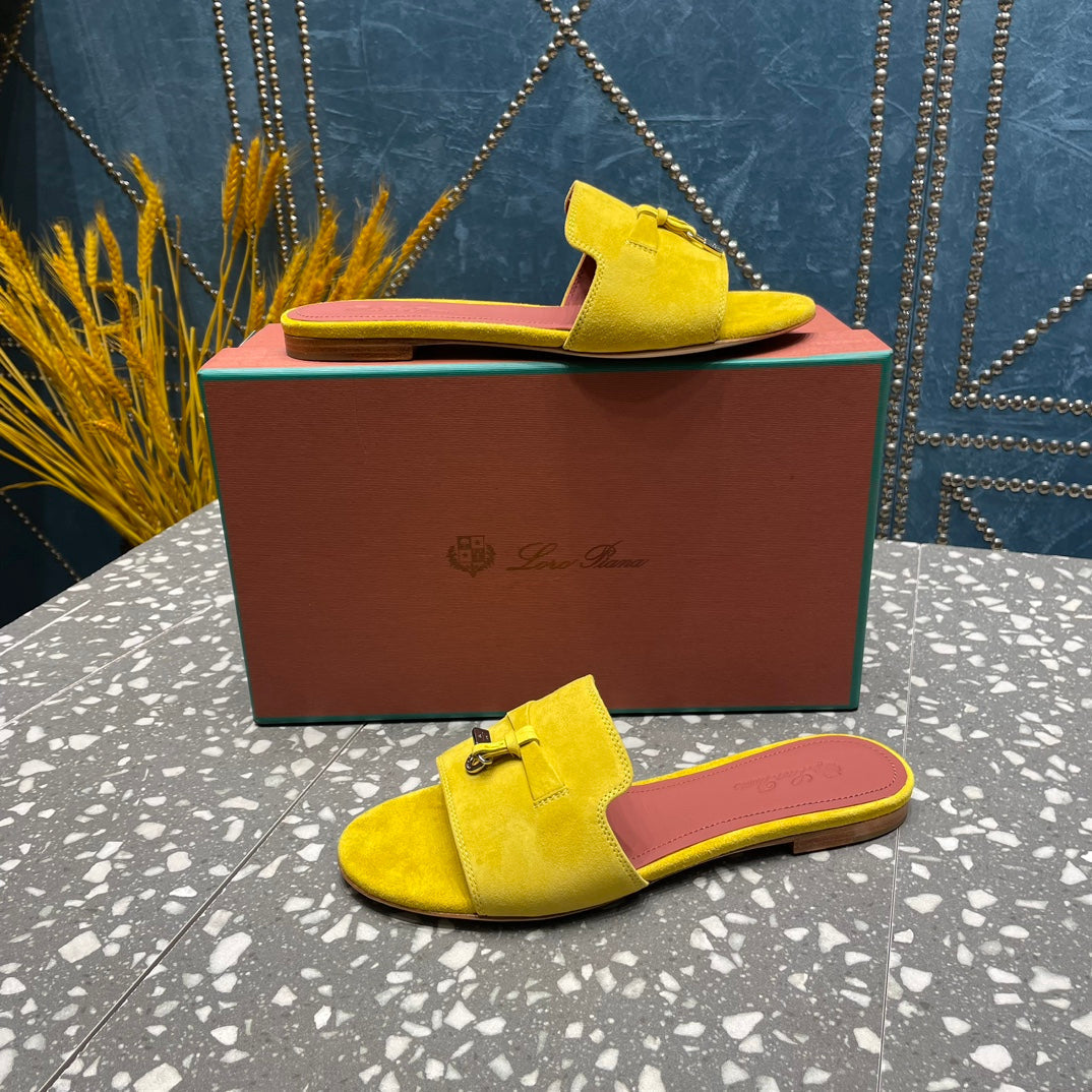 Summer Charms Sandals in Yellow Suede Maroon Lambskin