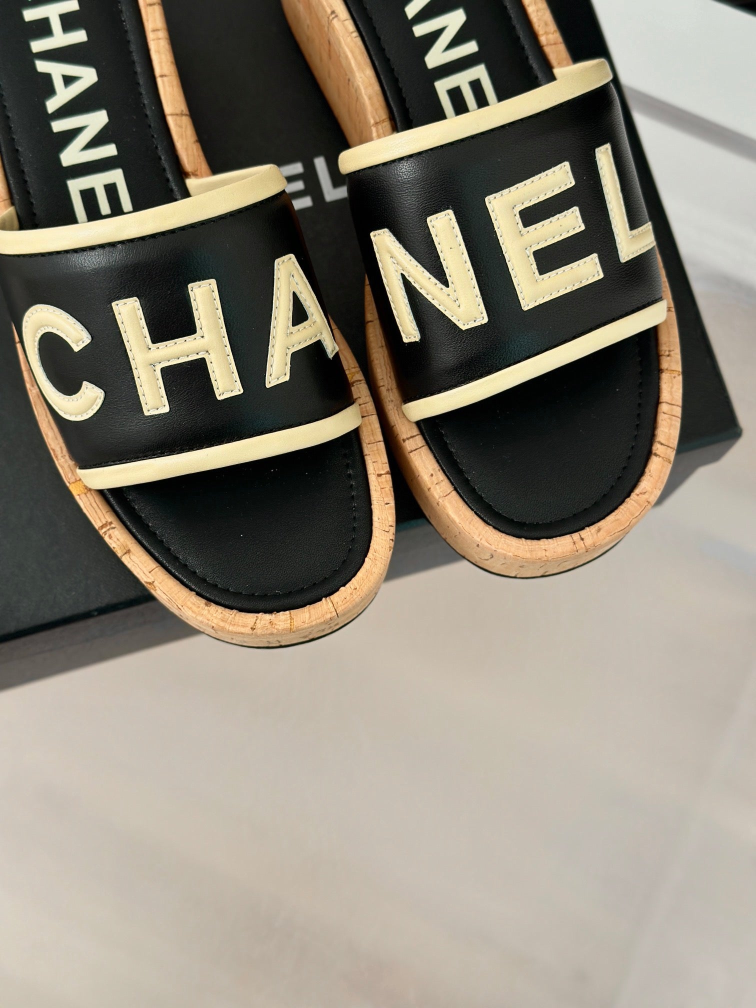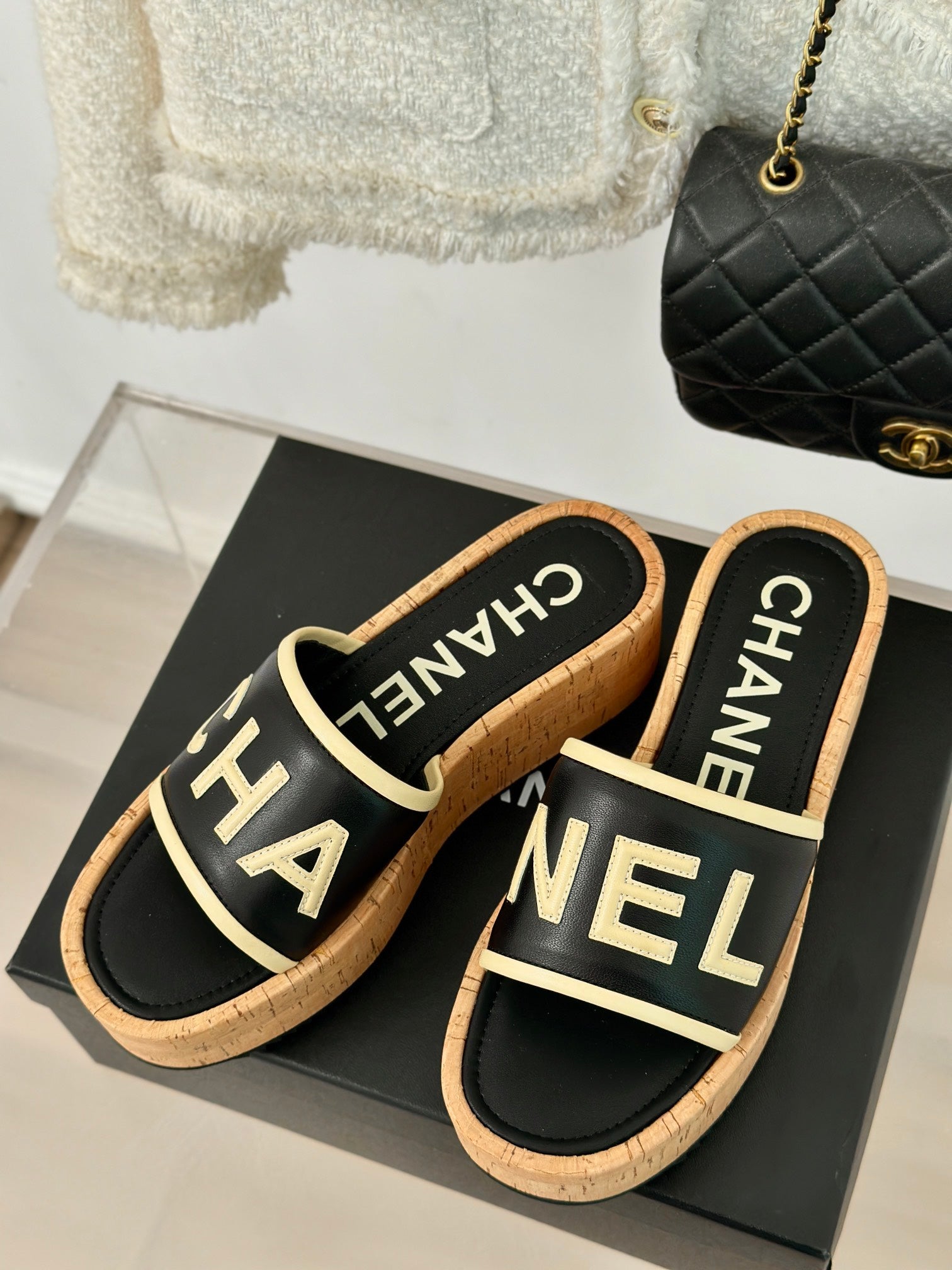 THICK SOLE LETTER SLIPPERS IN BLACK SHEEPSKIN
