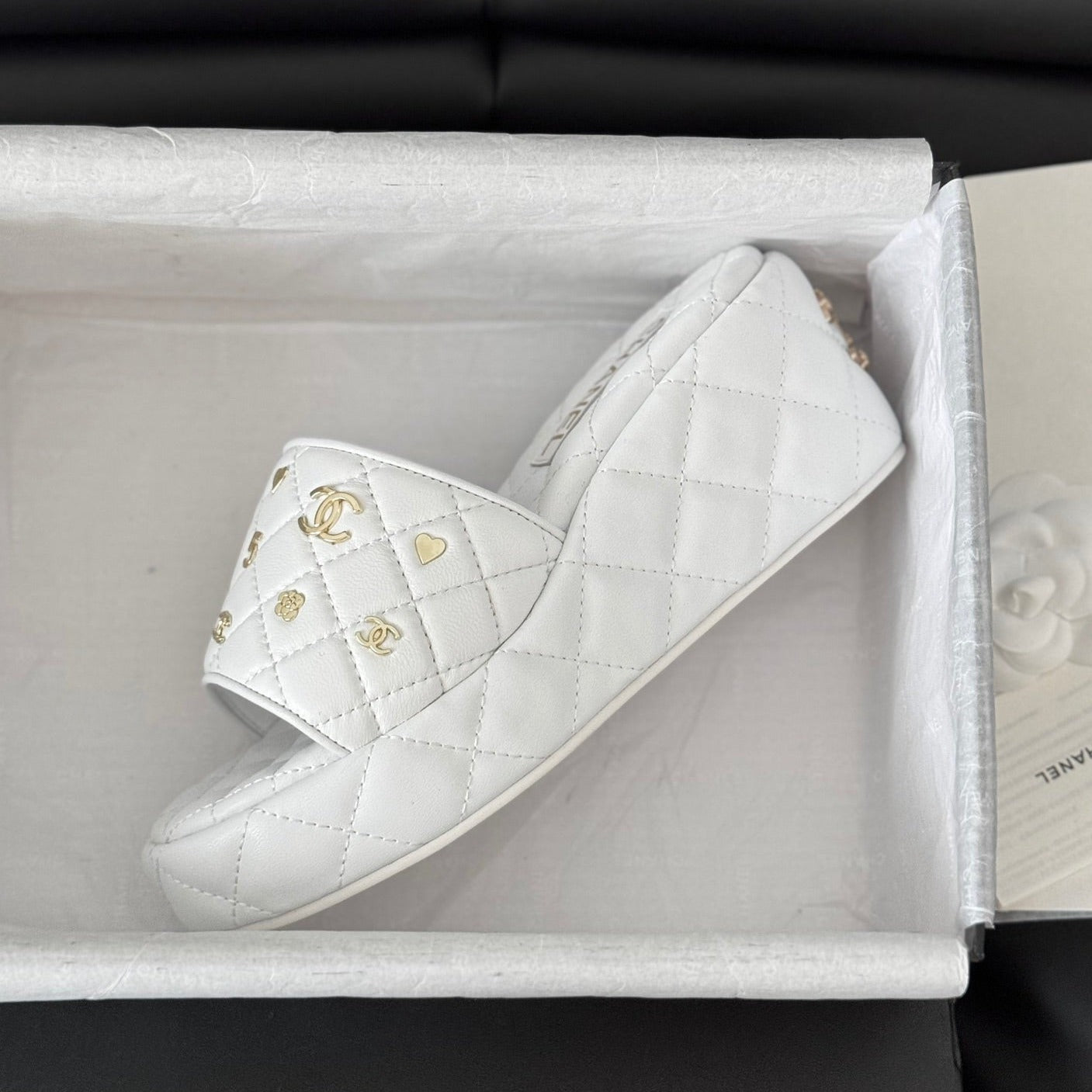 Thick Sole Slope Heel Weddge Lambskin White