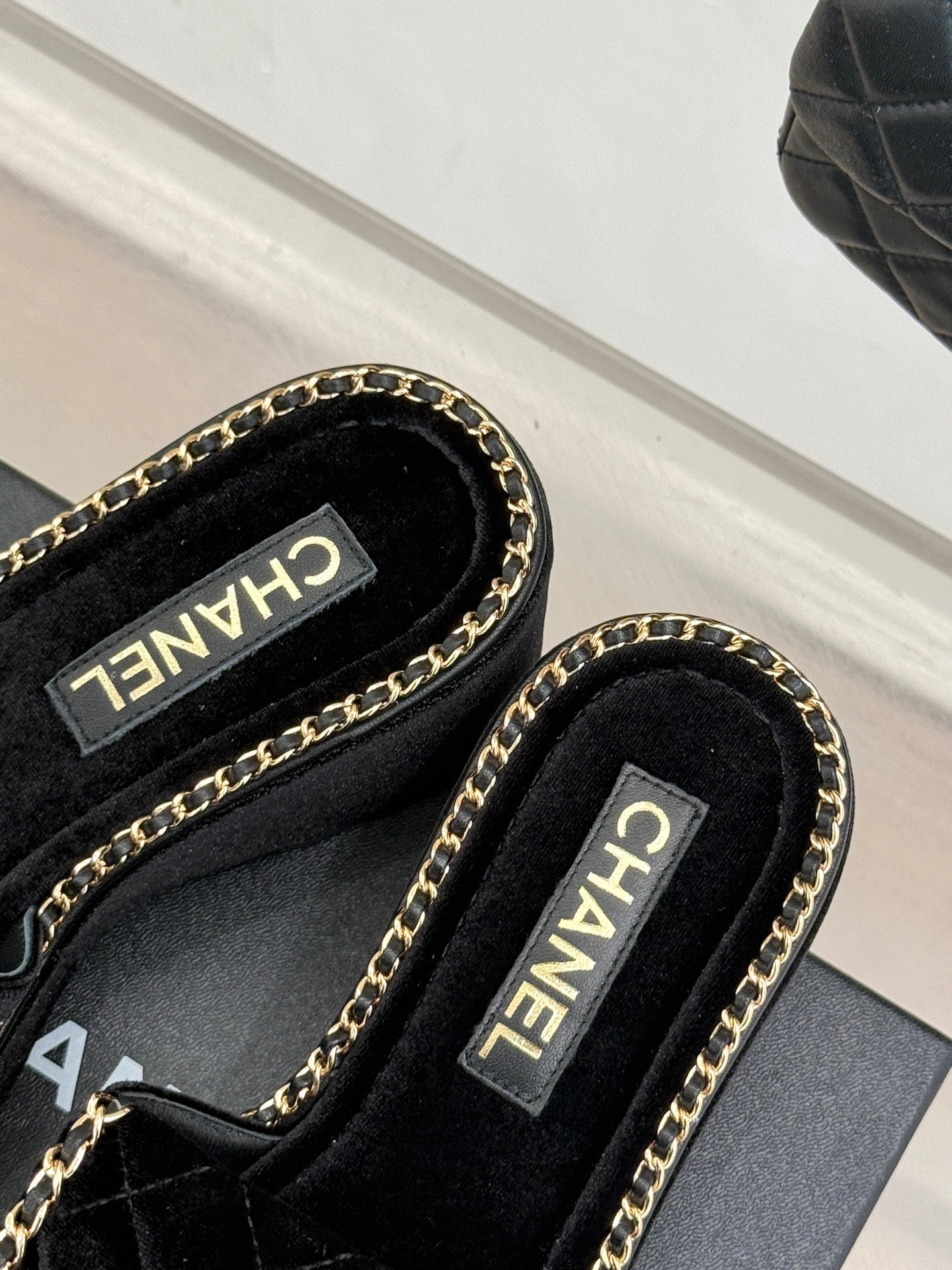 THICK-SOLED CHAIN HEART SLIPPER IN BLACK VELVET