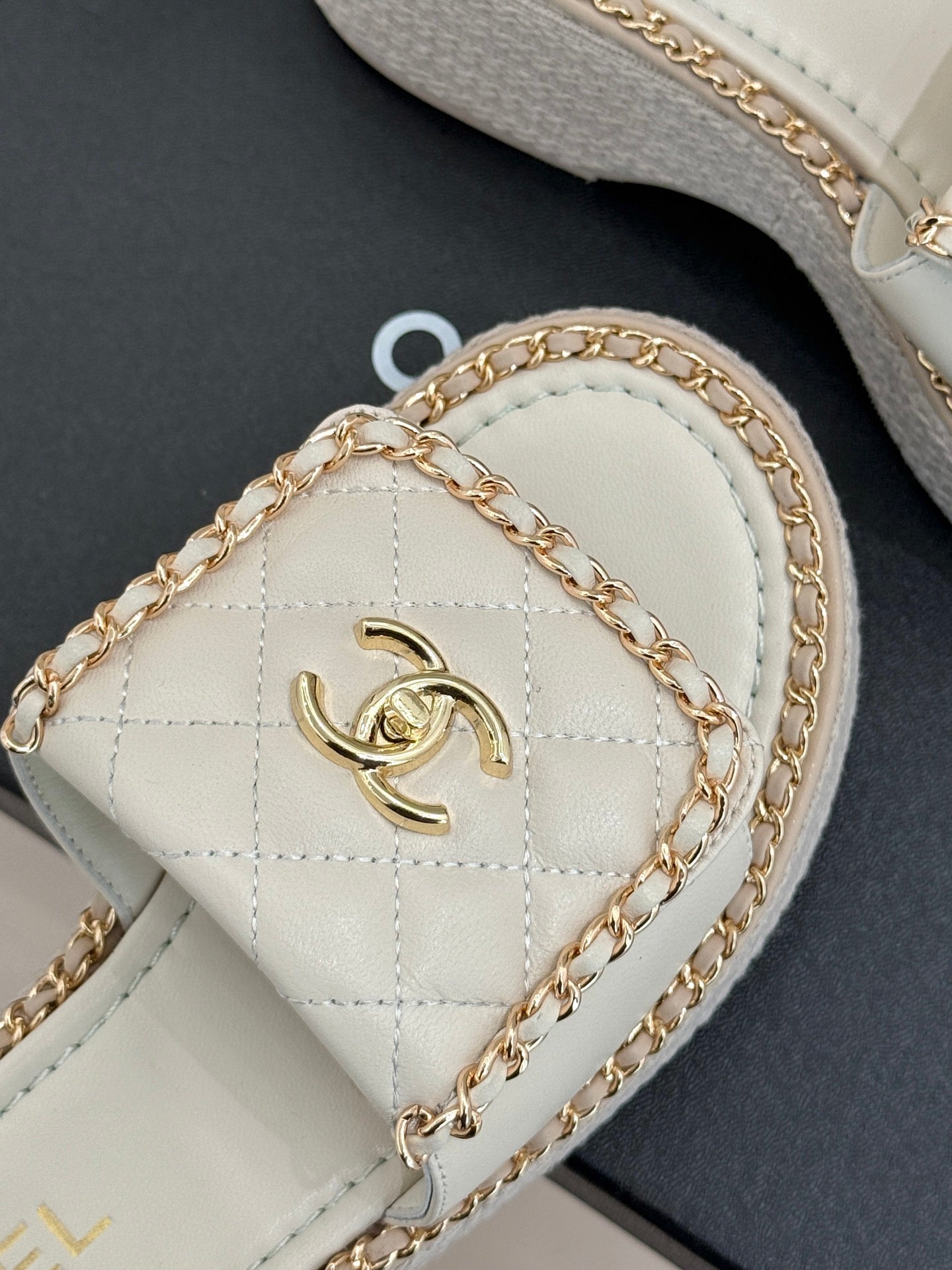 THICK-SOLED CHAIN HEART SLIPPER IN WHITE LAMBSKIN