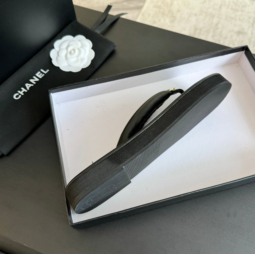 Thick-soled Flip-Flops Lambskin Black