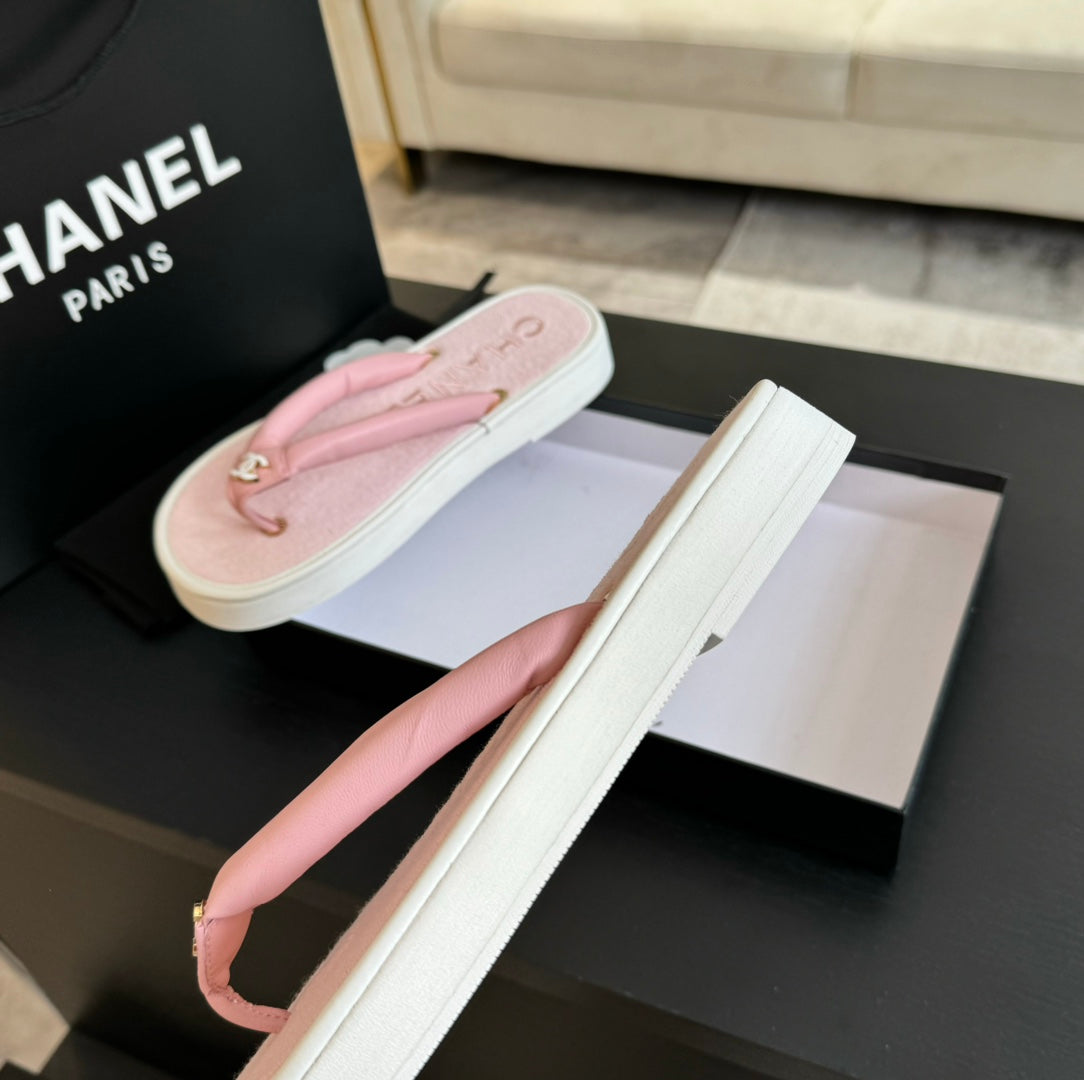 Thick-soled Flip-Flops Lambskin Light Pink