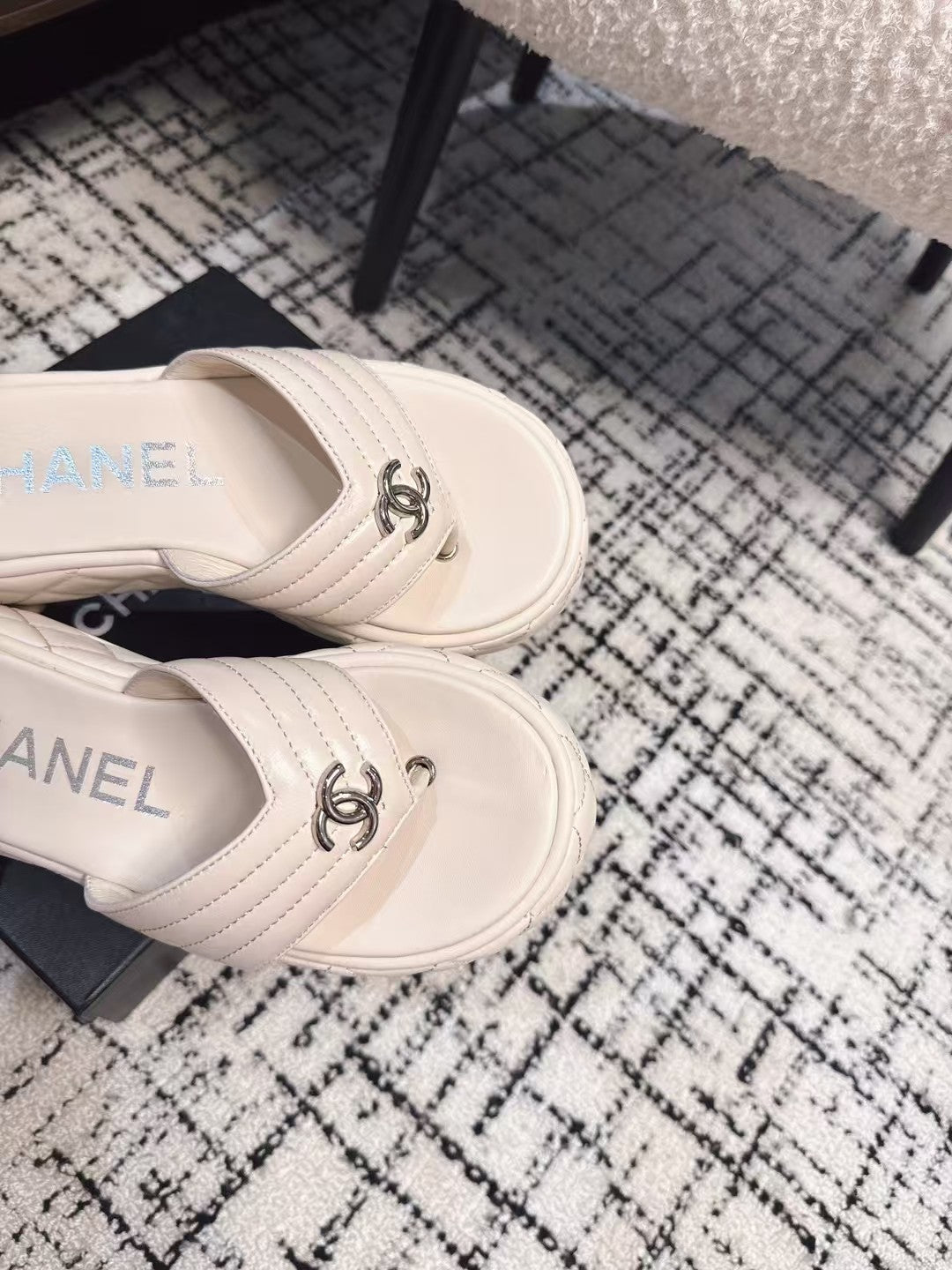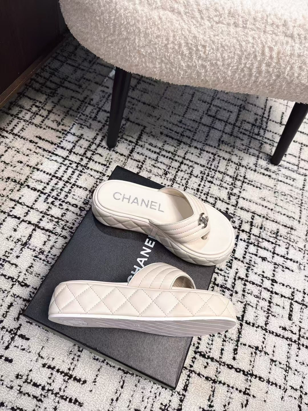 THICK-SOLED THONG SLIPPERS IN WHITE CALFSKIN