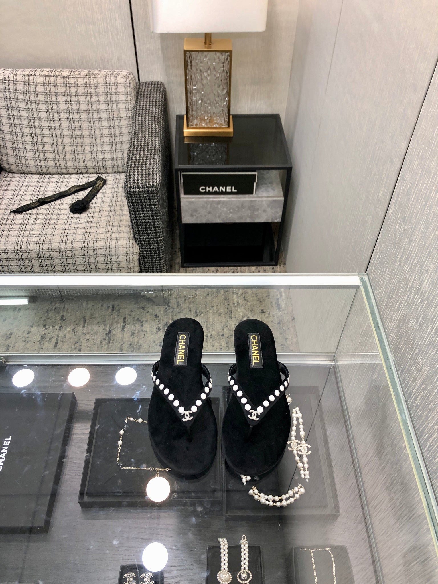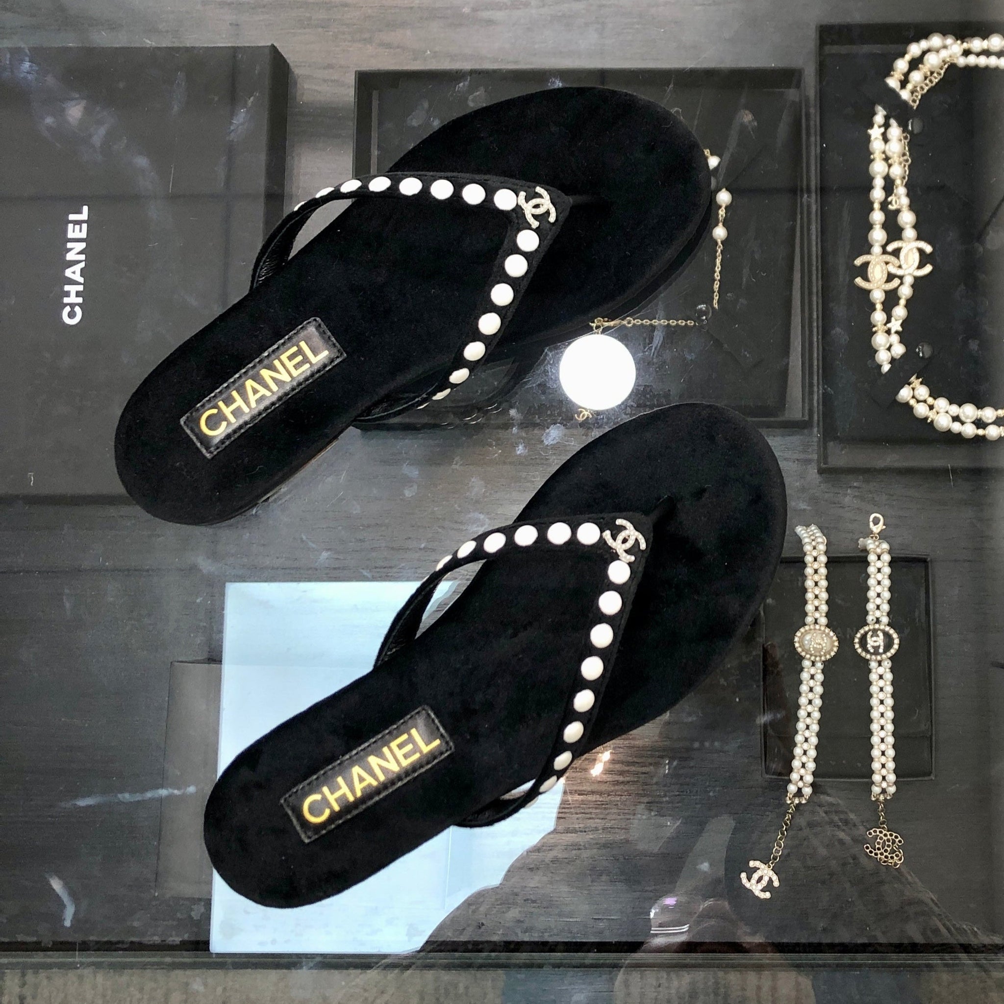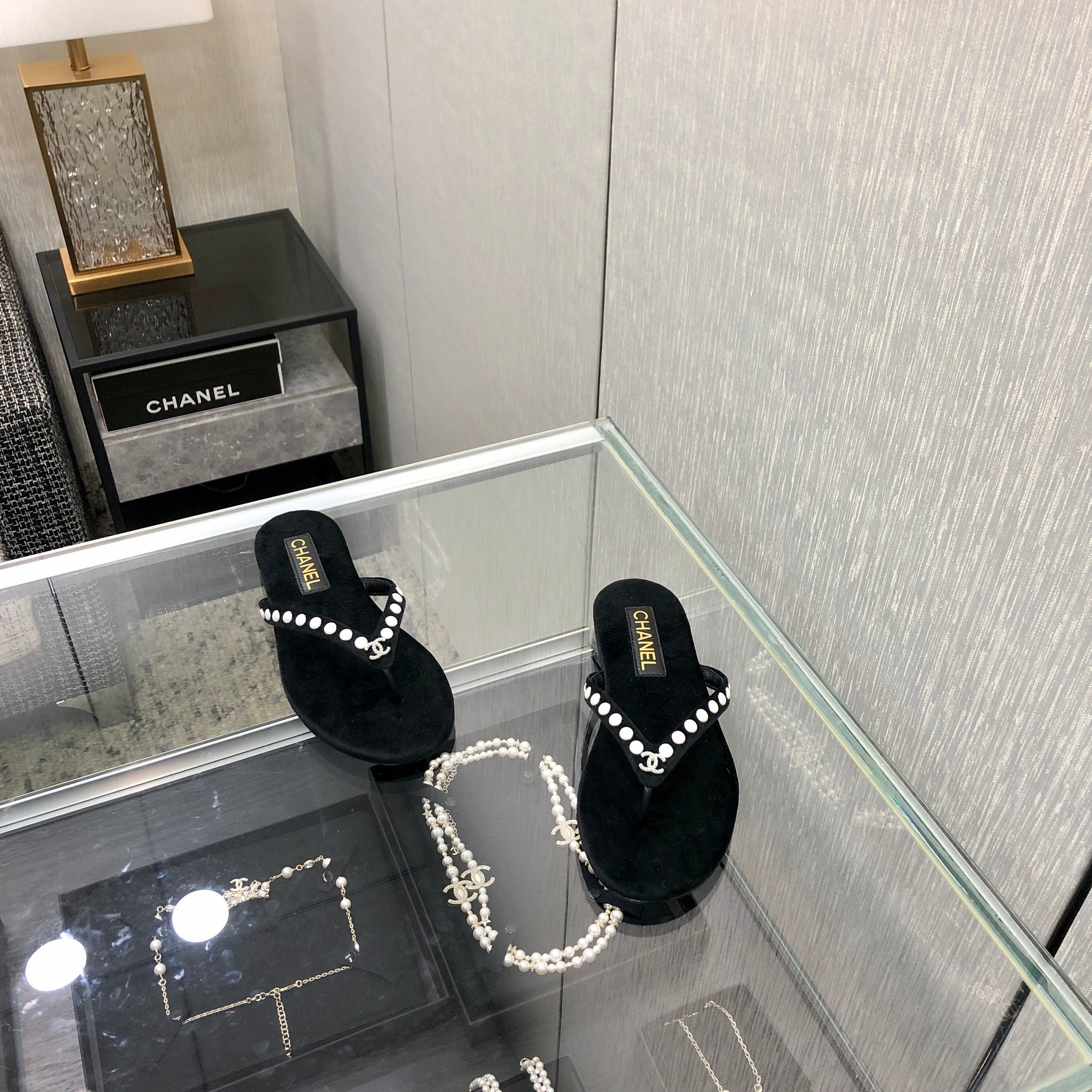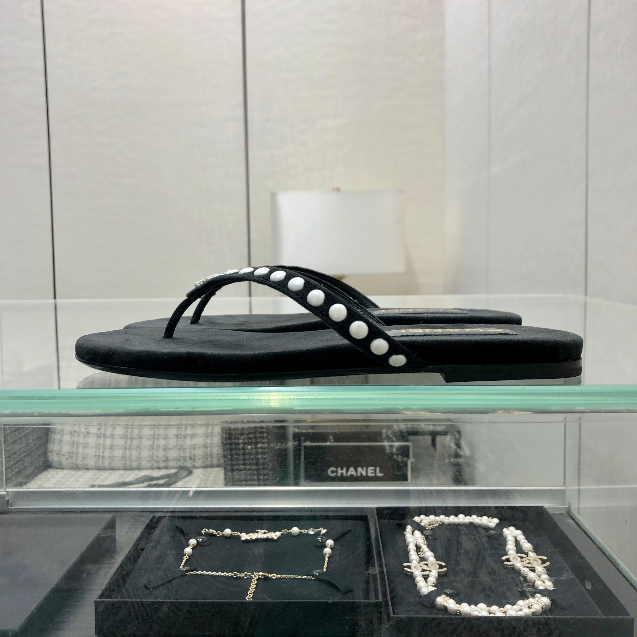 THONG SLIDE IN BLACK SUEDE WITH WHITE DOT