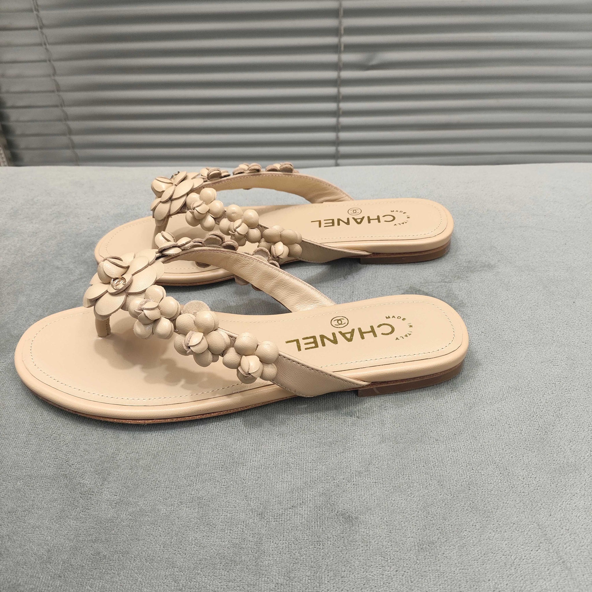 THONG SLIPPERS CAMELLIA IN BEIGE CALFSKIN