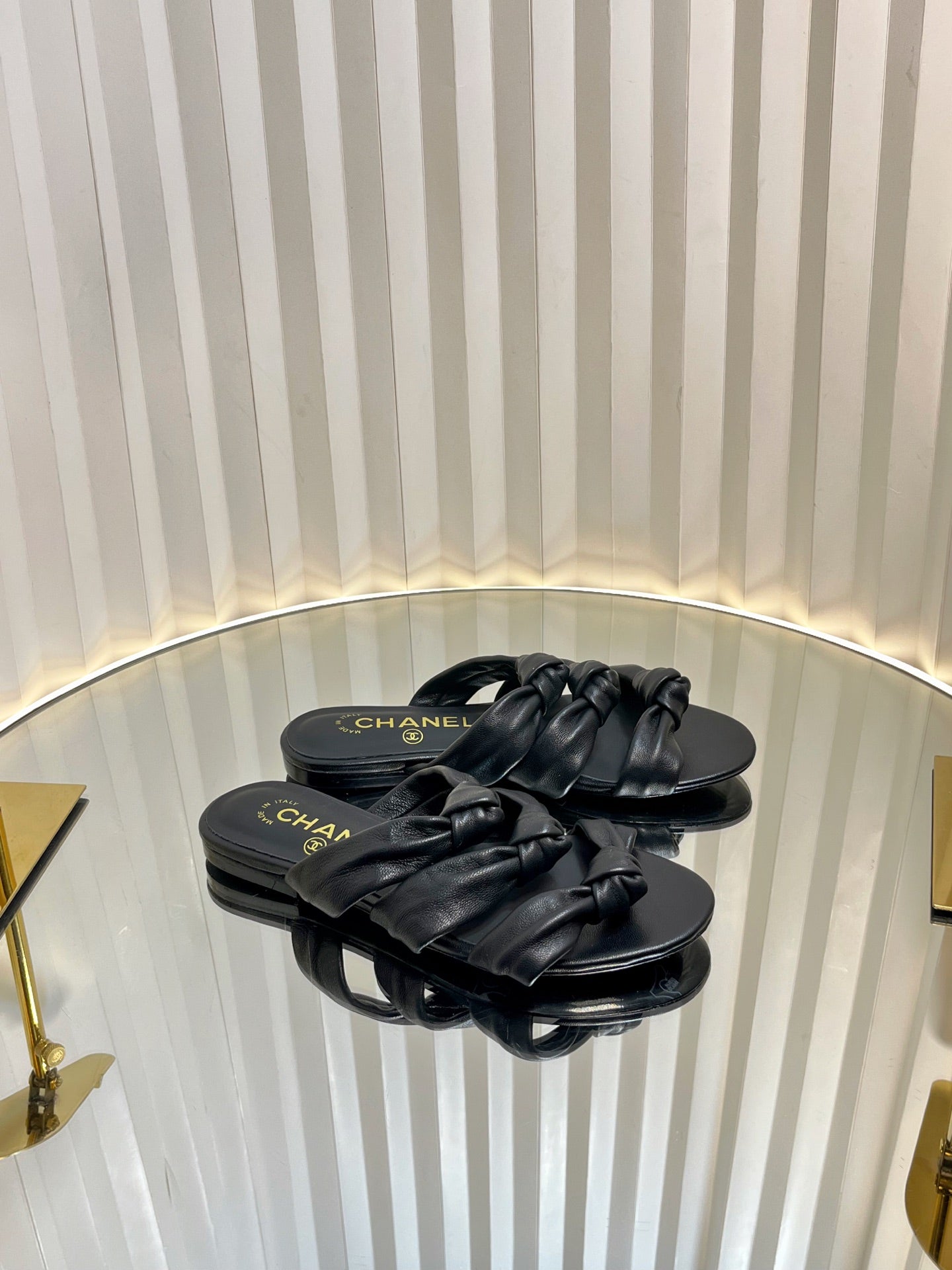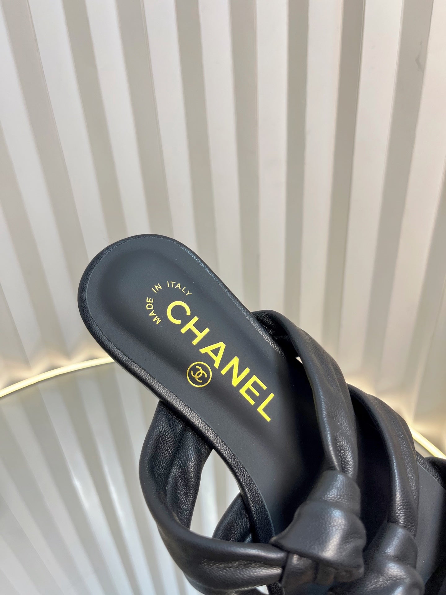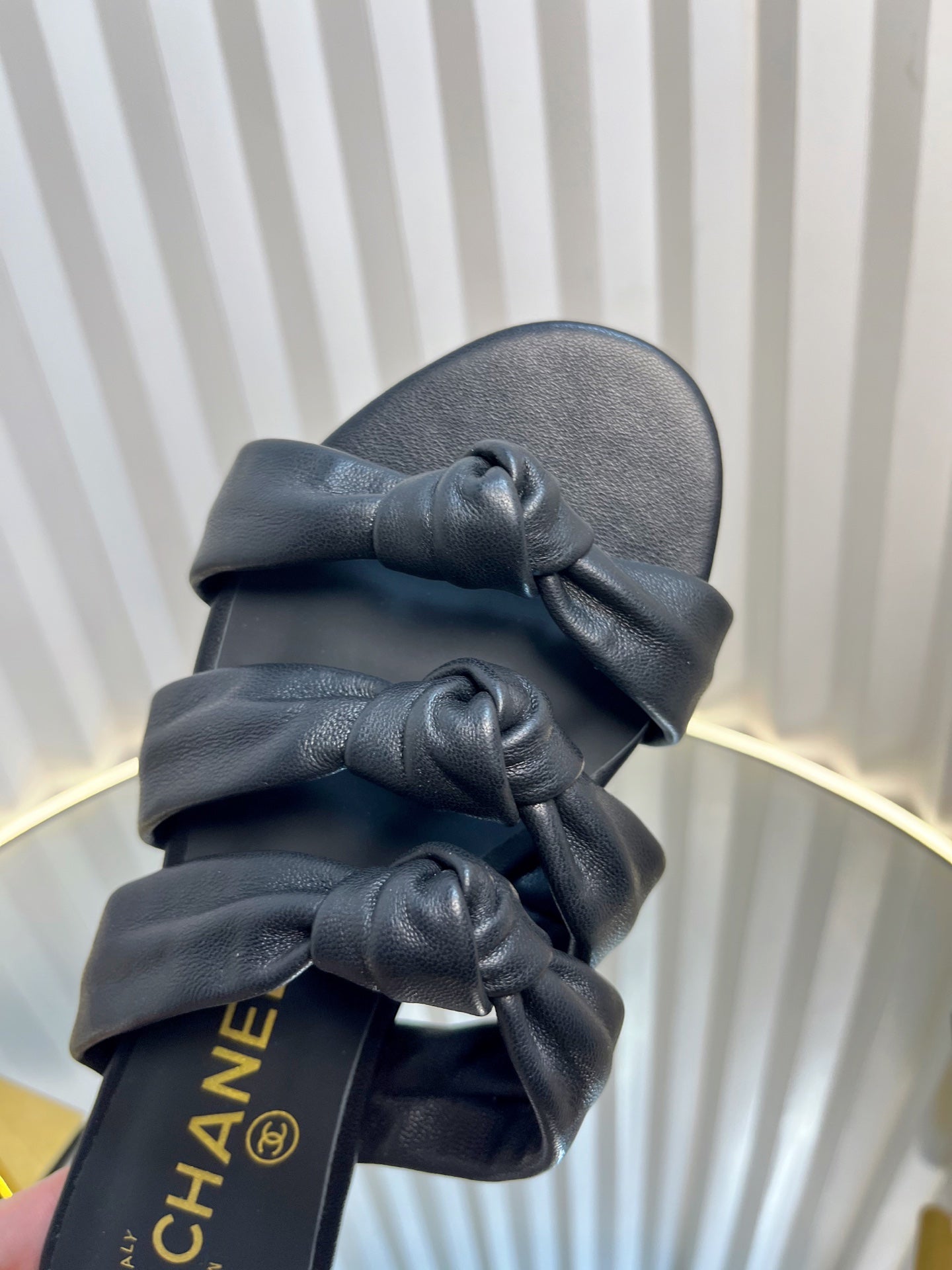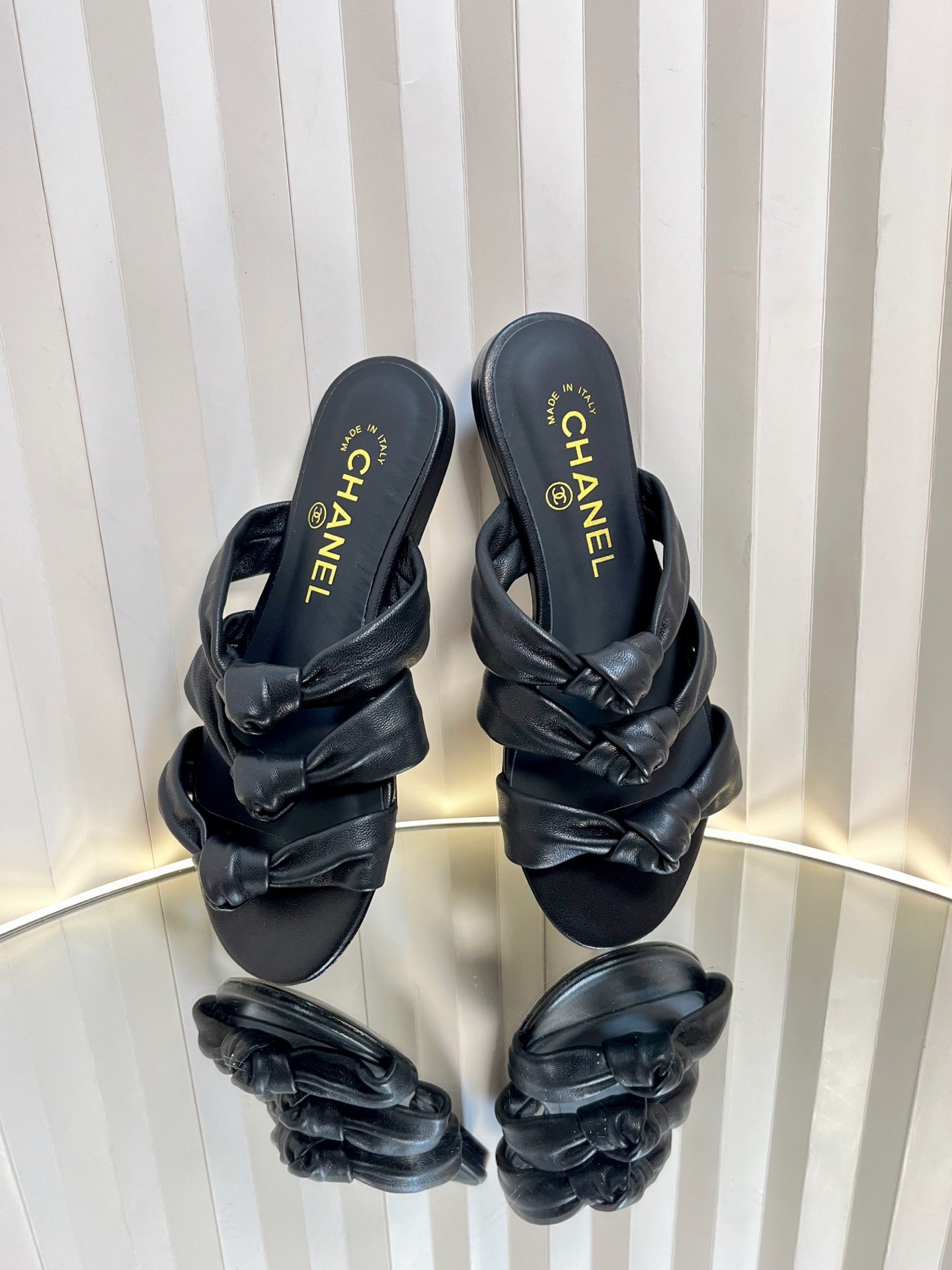 THREE STRAPS MULE IN BLACK CALFSKIN