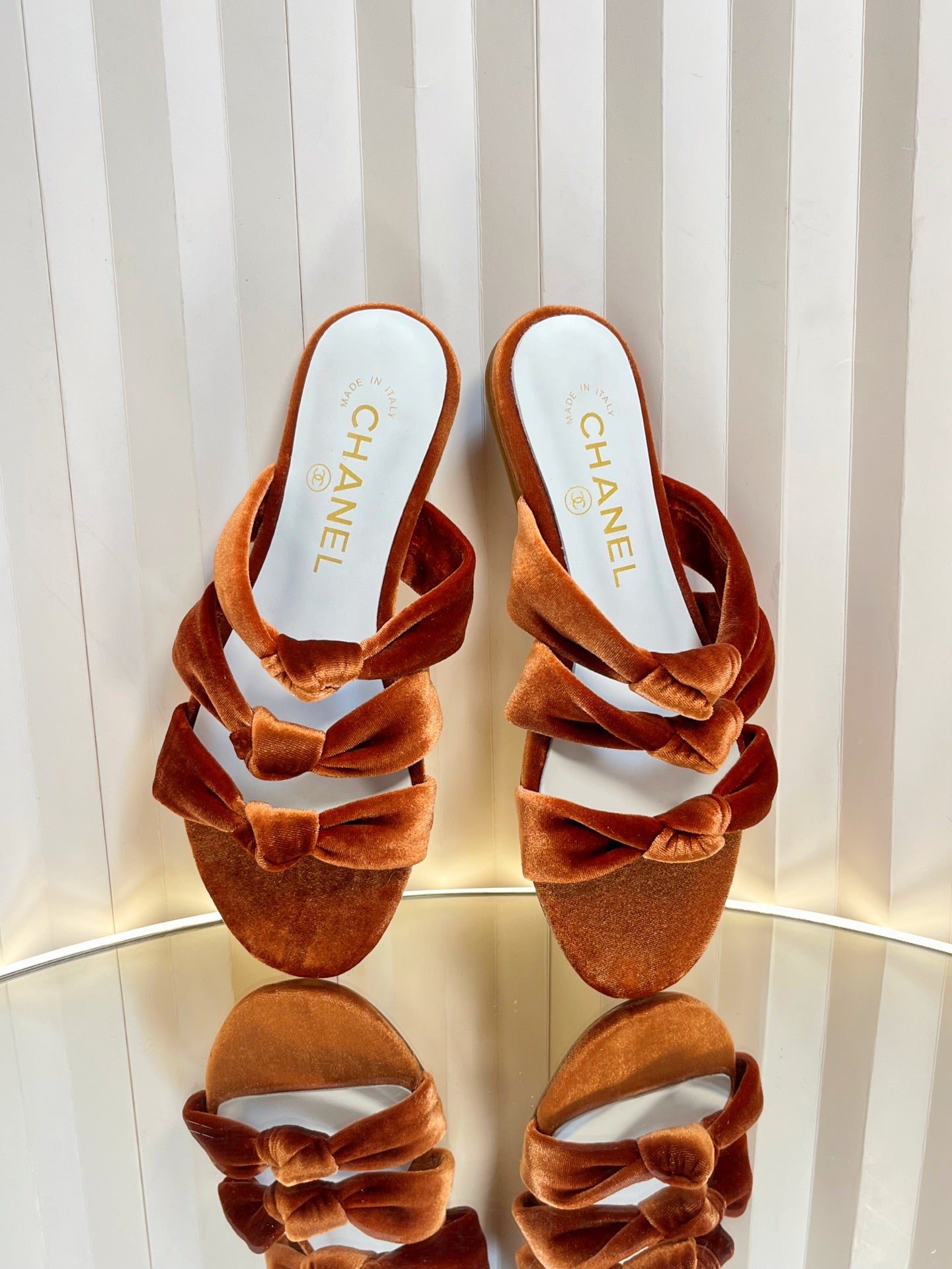 THREE STRAPS MULE IN RUSSET BROWN VELVET