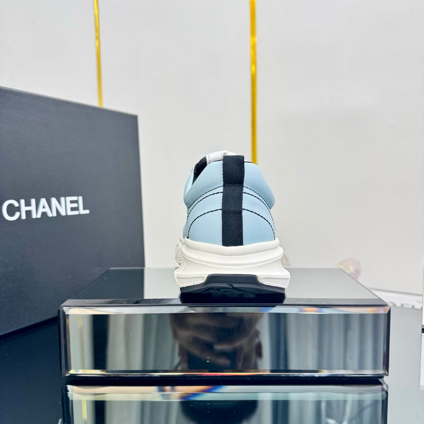 TRAINERS SNEAKER IN LIGHT BLUE CALFSKIN WITH BLACK EMBROIDERED