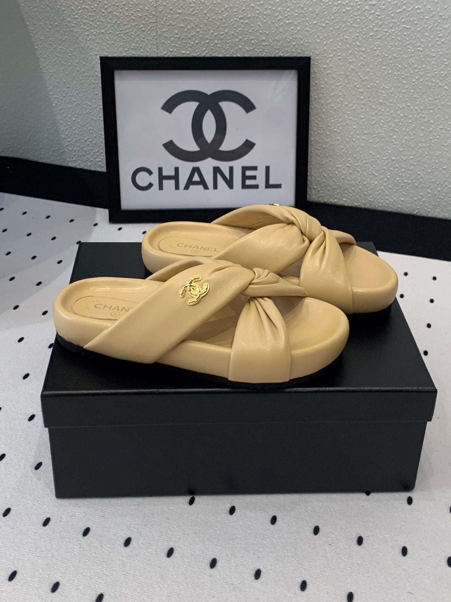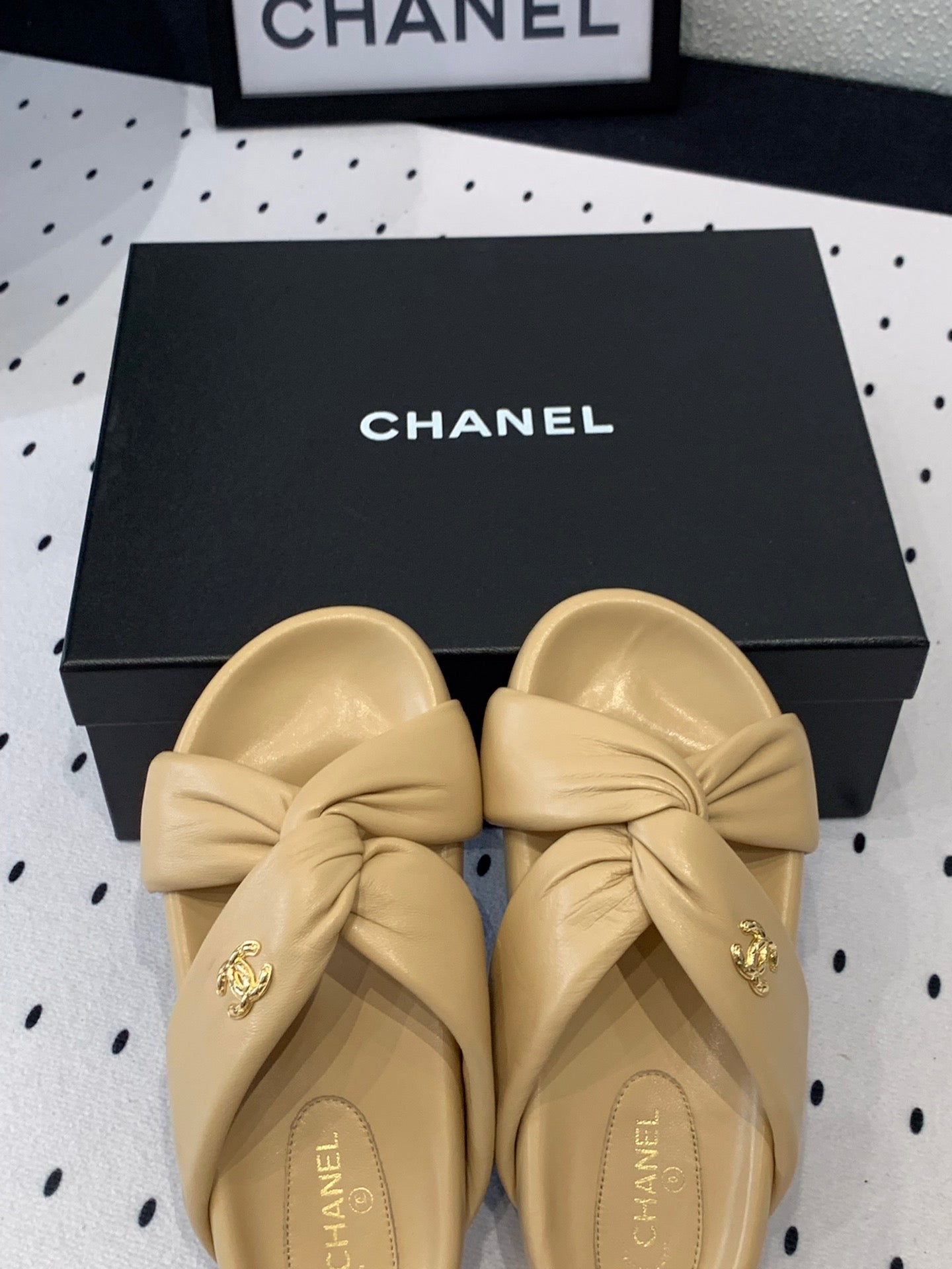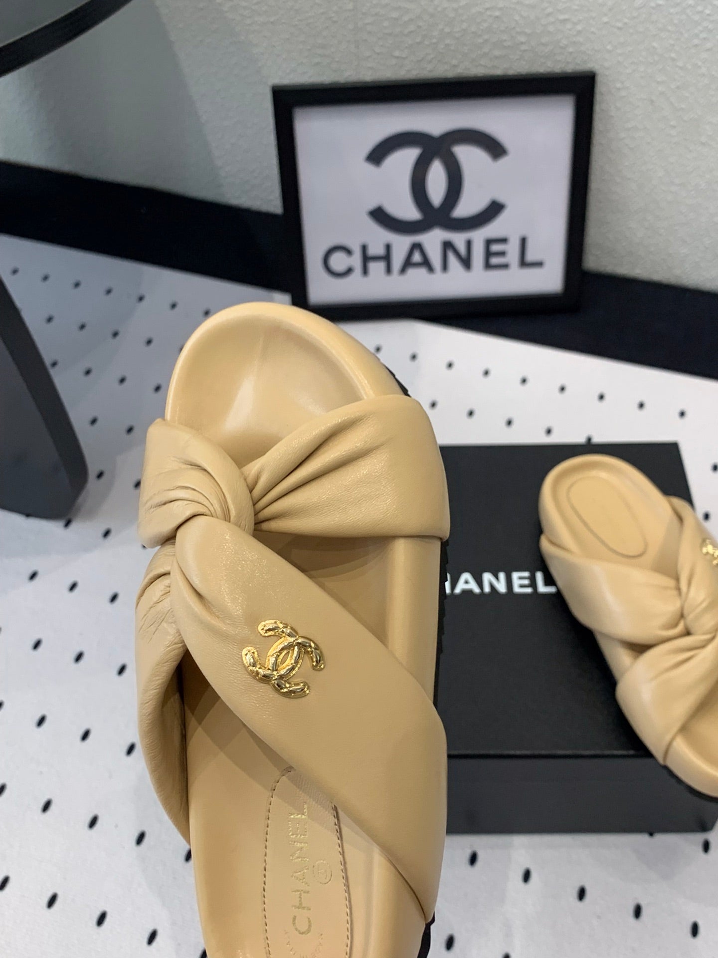 TWISTED SLIPPERS IN DARK CREAM LAMBSKIN