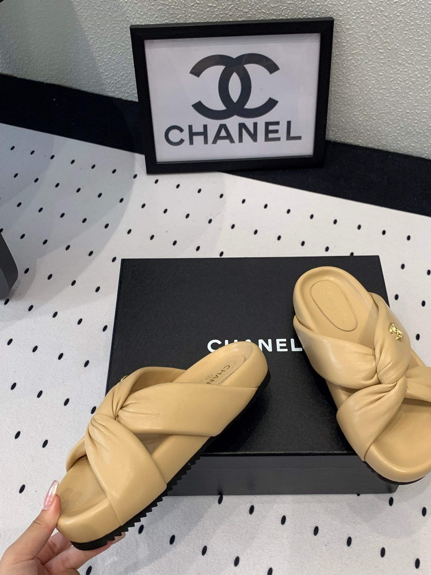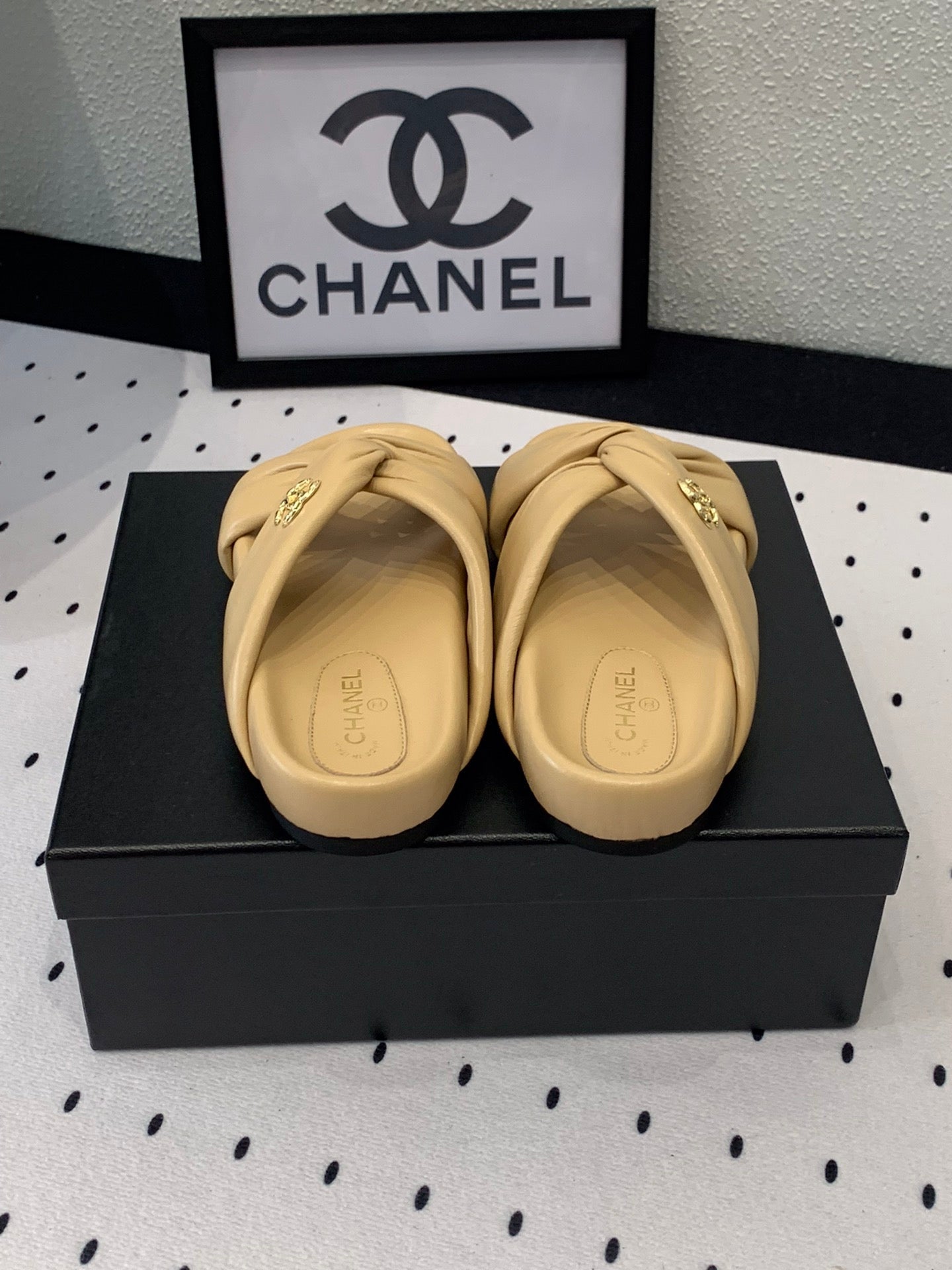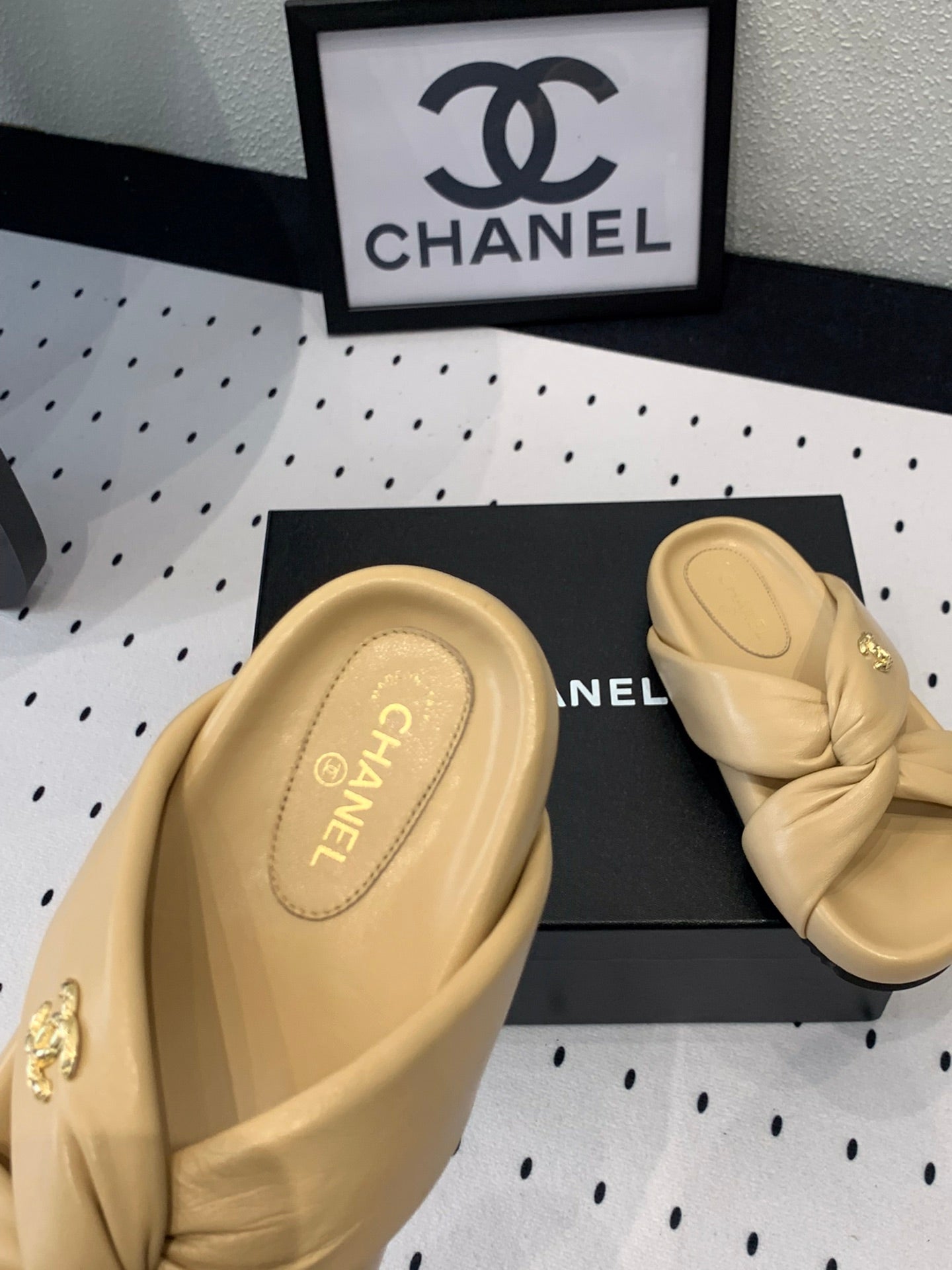 TWISTED SLIPPERS IN DARK CREAM LAMBSKIN