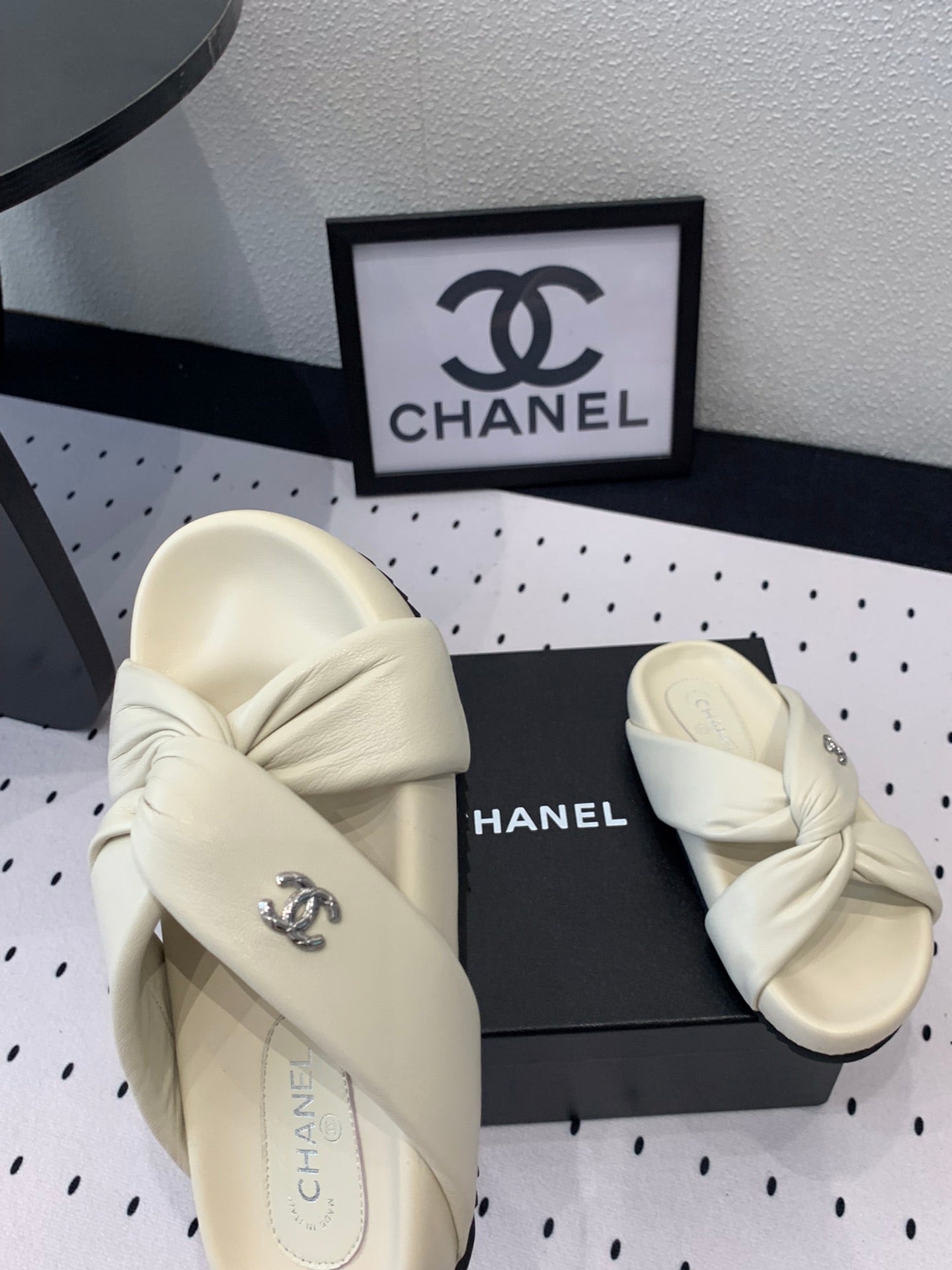 TWISTED SLIPPERS IN WHITE LAMBSKIN