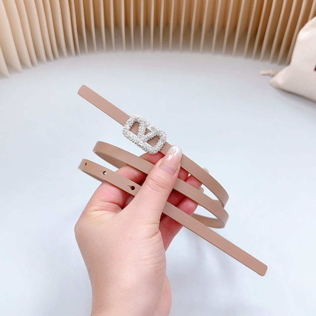 VL Belt 8mm Buckle Silver Diamond Leather Beige