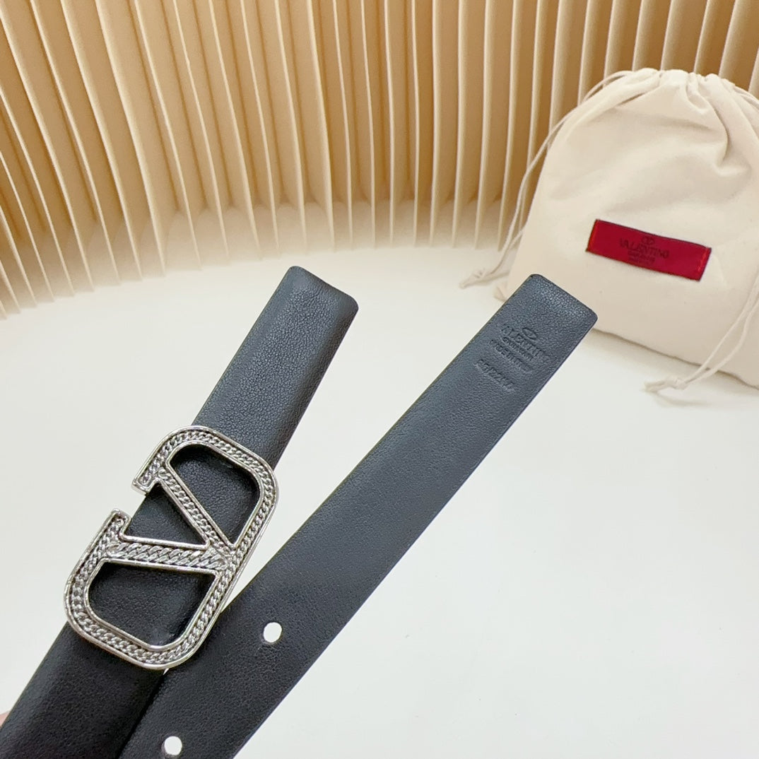 Vlogo Buckle Water Wave Silver Copper Glossy Black Leather 20mm Belt