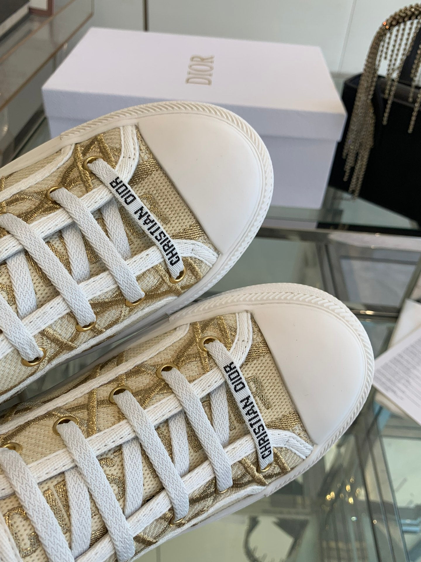 WALK'N PLATFORM SNEAKER IN BEIGE-GOLD TONE EMBROIDERED FABRIC