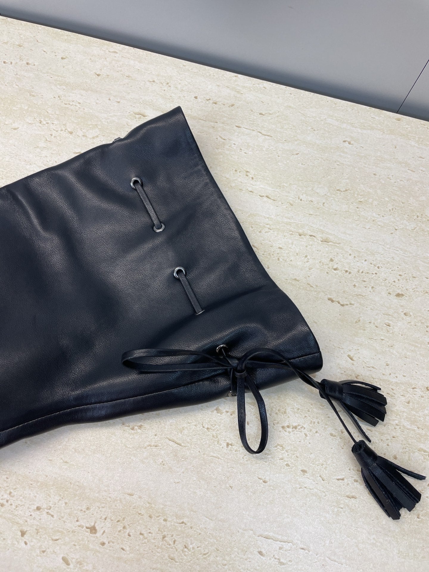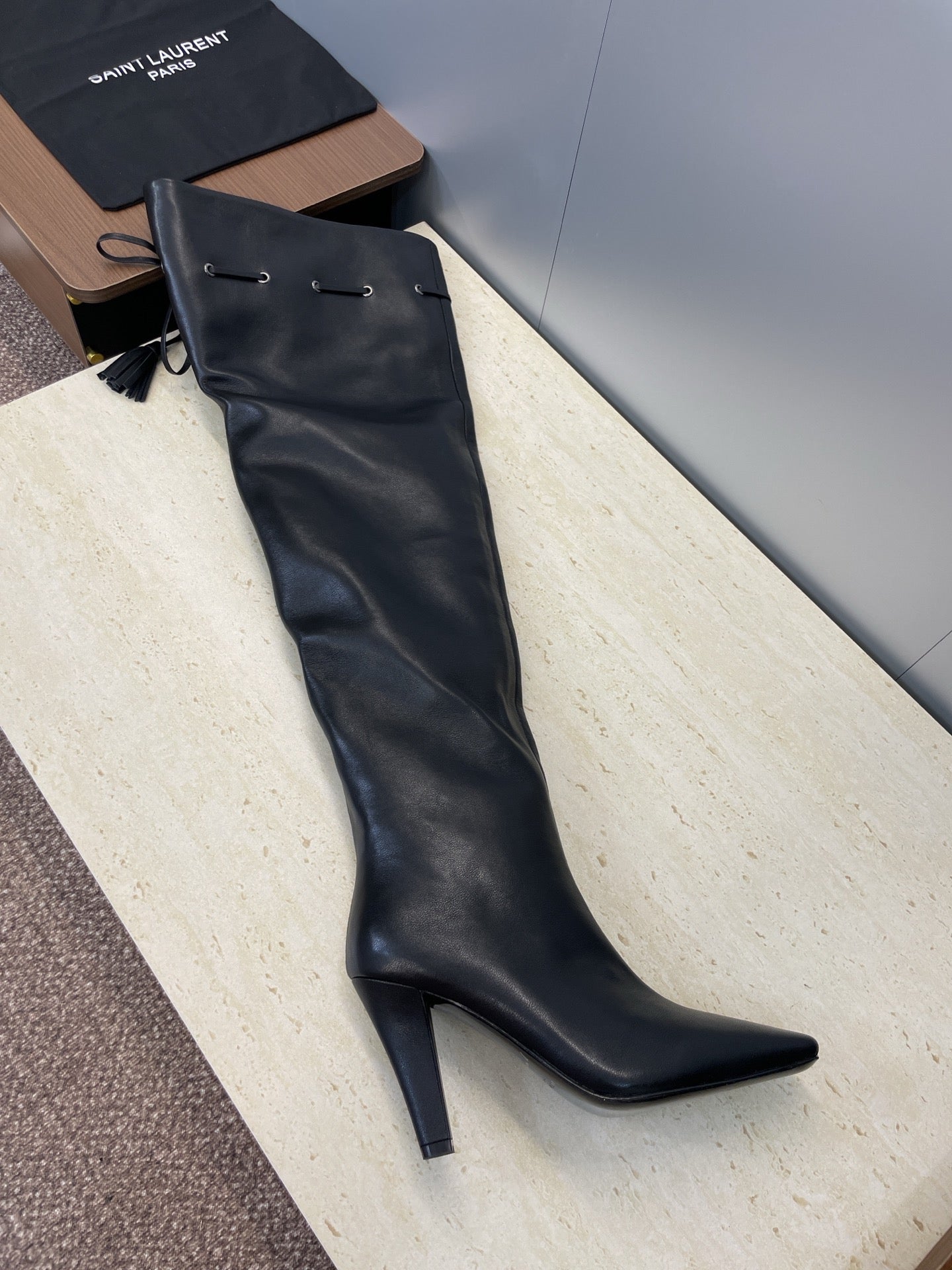 YSL 25S HIGH‑HEEL FRINGED MARTIN BOOTS 90 MM IN BLACK LAMBSKIN