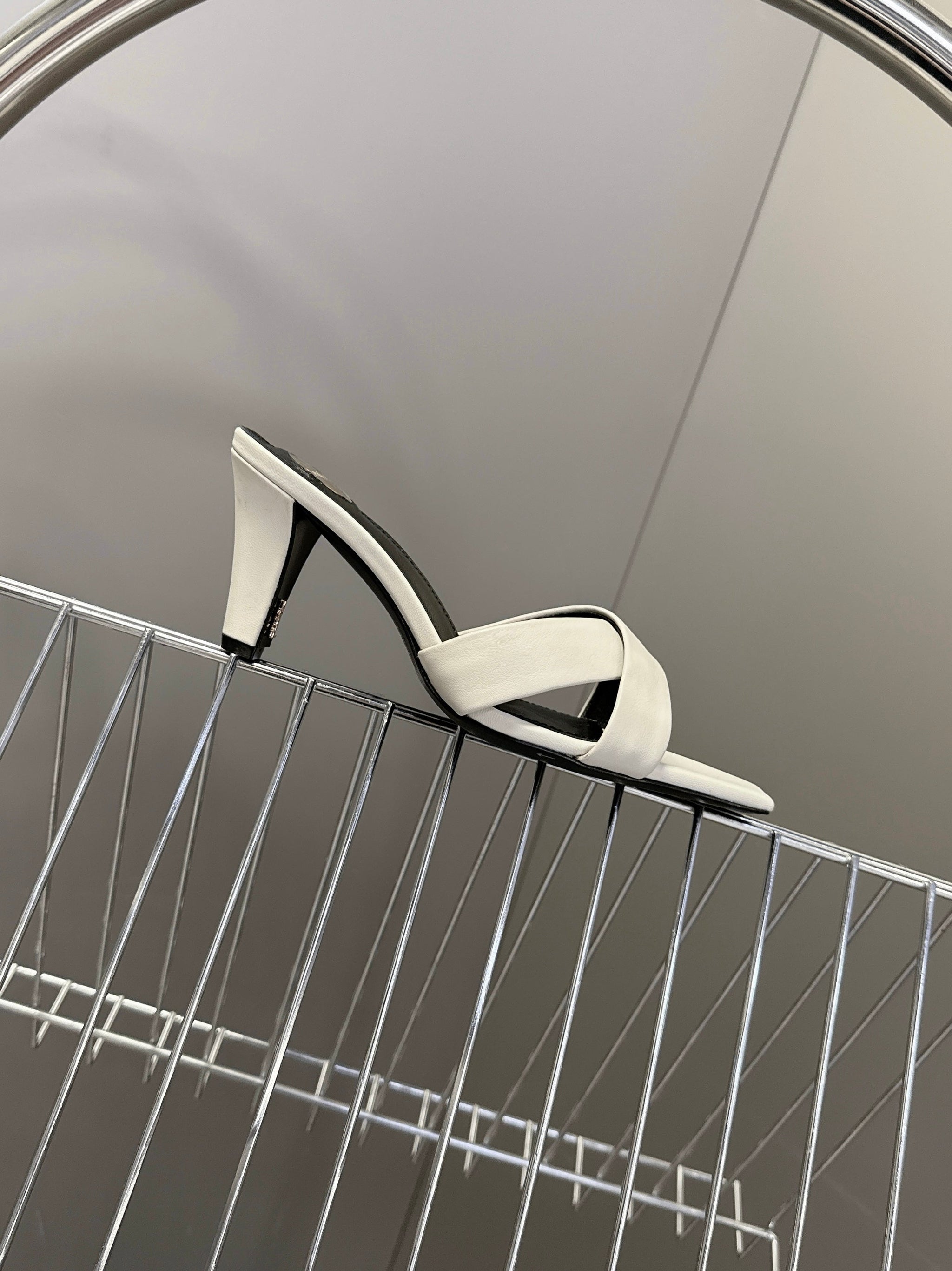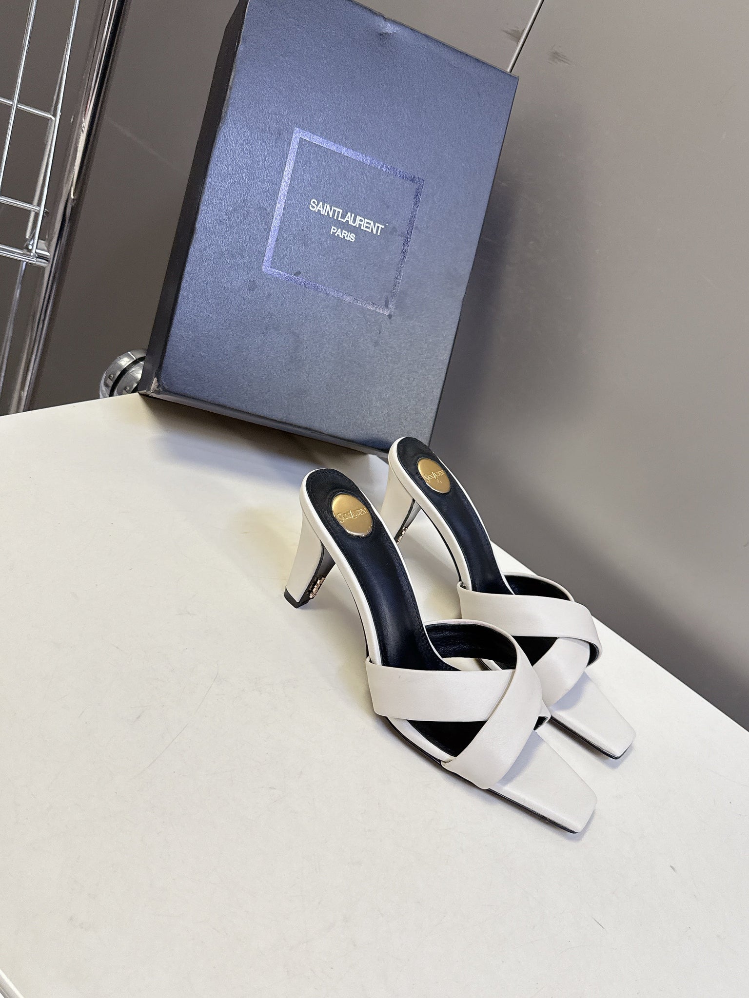 YSL 25S JILL MULES 75MM IN WHITE SMOOTH CALFSKIN
