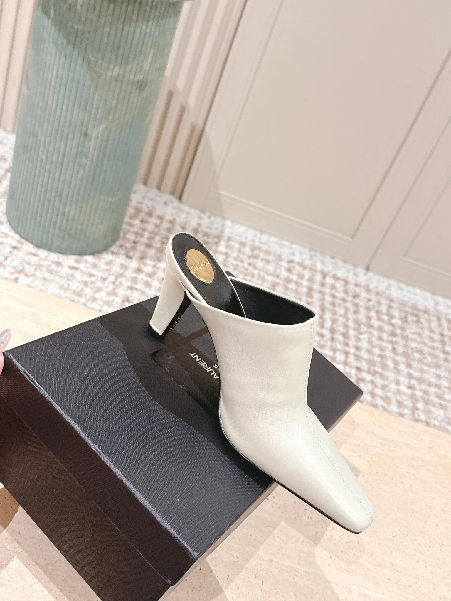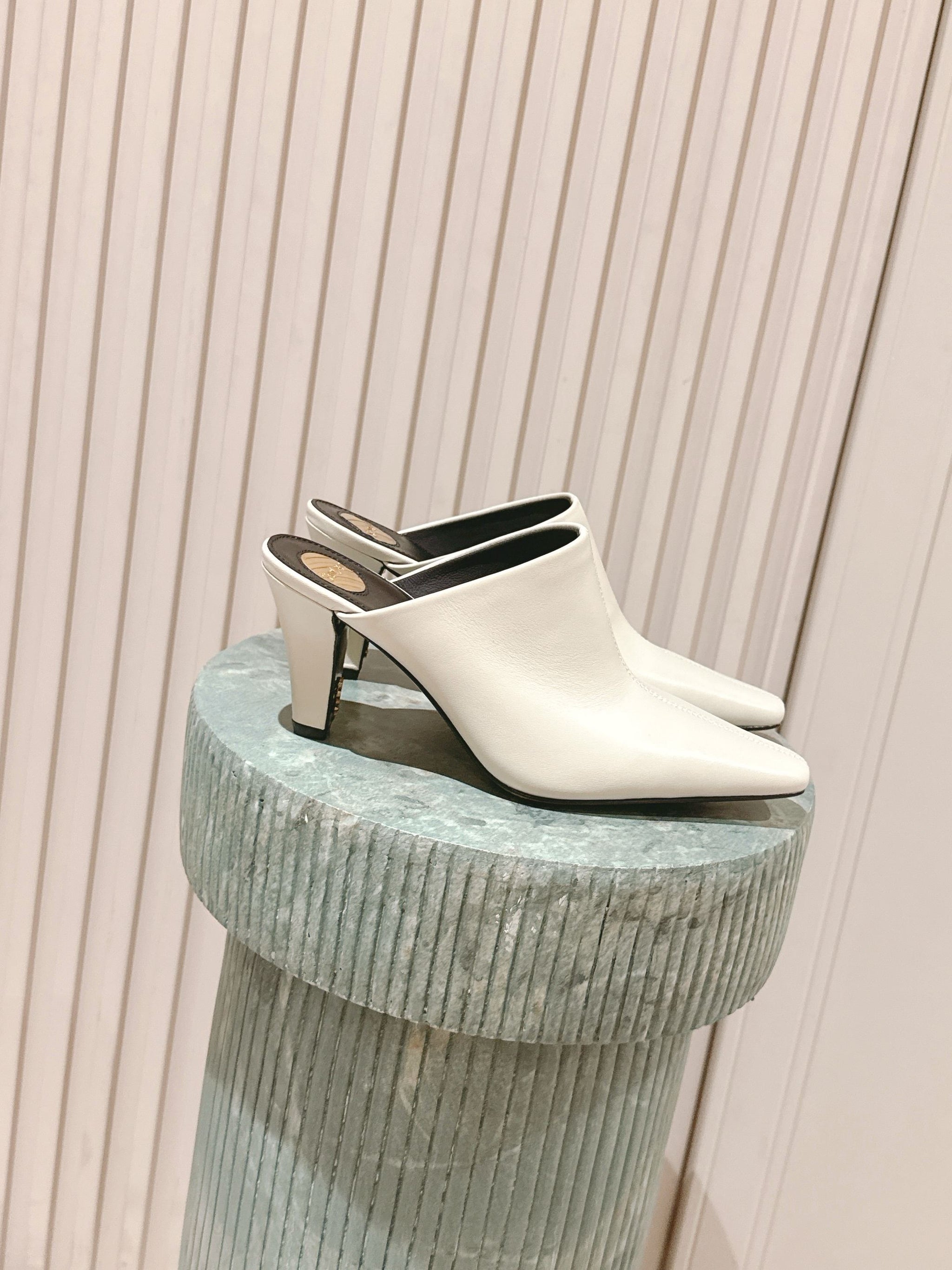 YSL 25S JILL MULES IN IVORY SMOOTH CALFSKIN