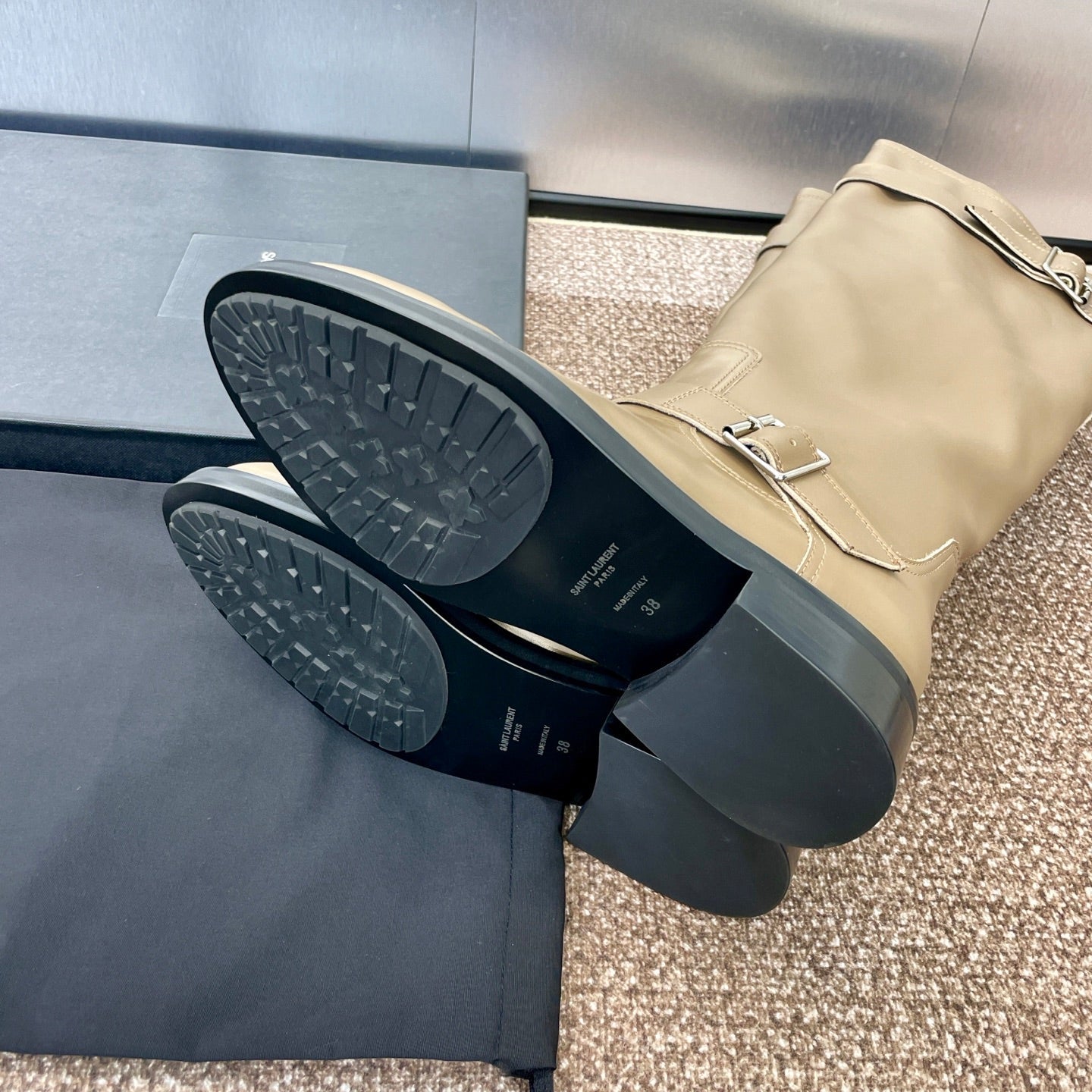 YSL 25S KNEE-HIGH BOOTS 30 MM IN BEIGE LAMBSKIN WITH SILVER HARDWARE