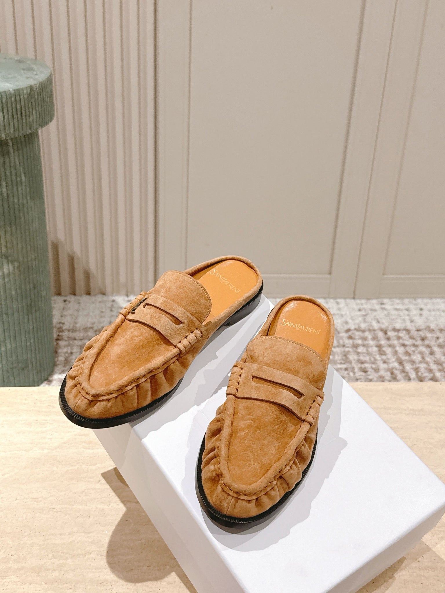 YSL 25S LOAFER MULE IN CARAMEL SUEDE