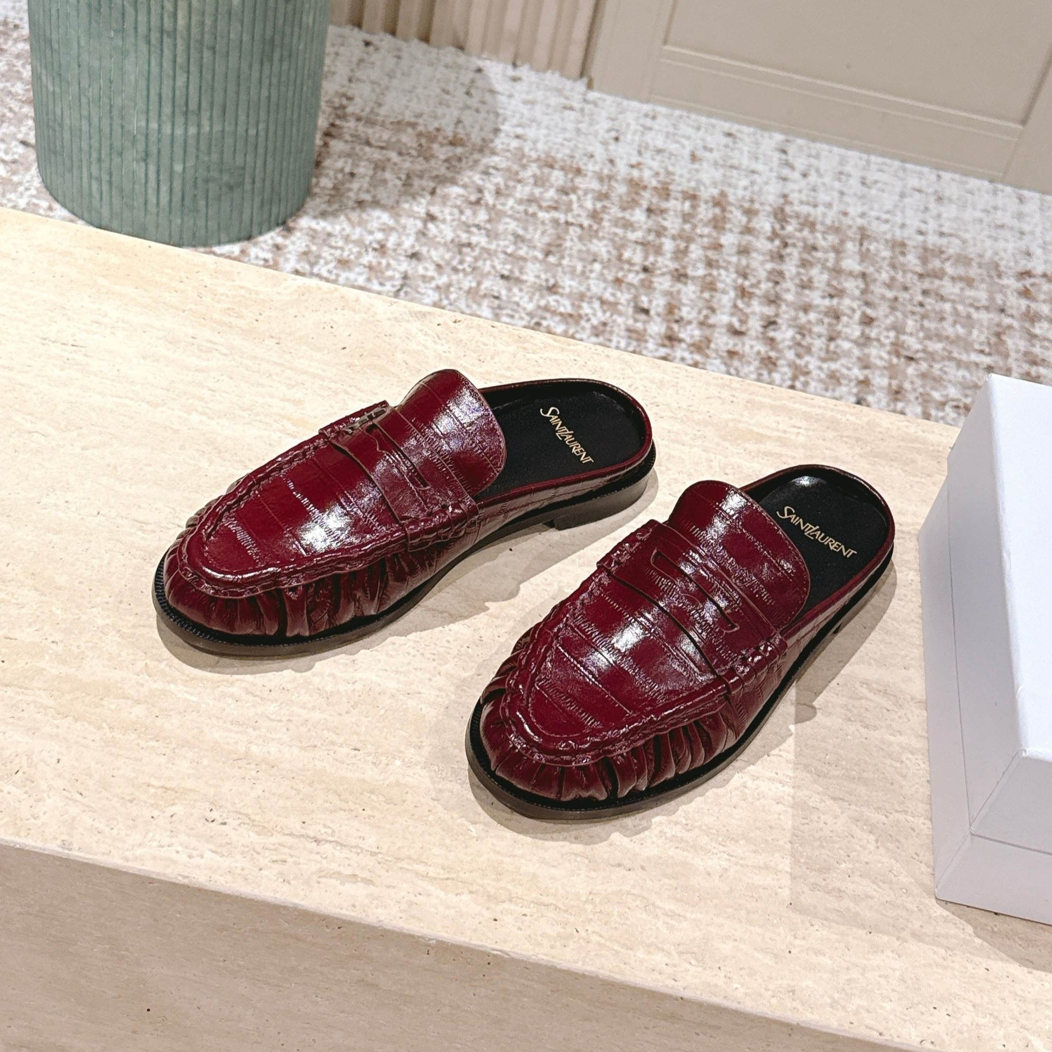 YSL 25S LOAFER MULE IN DARK RED GLOSSY CALFSKIN