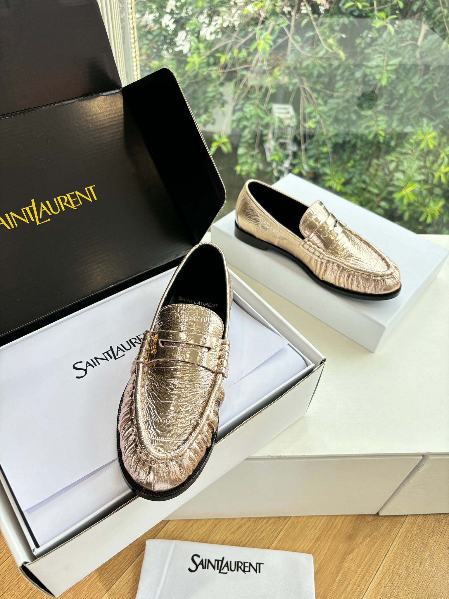 YSL 25S LOAFERS IN GOLD LAMBSKIN