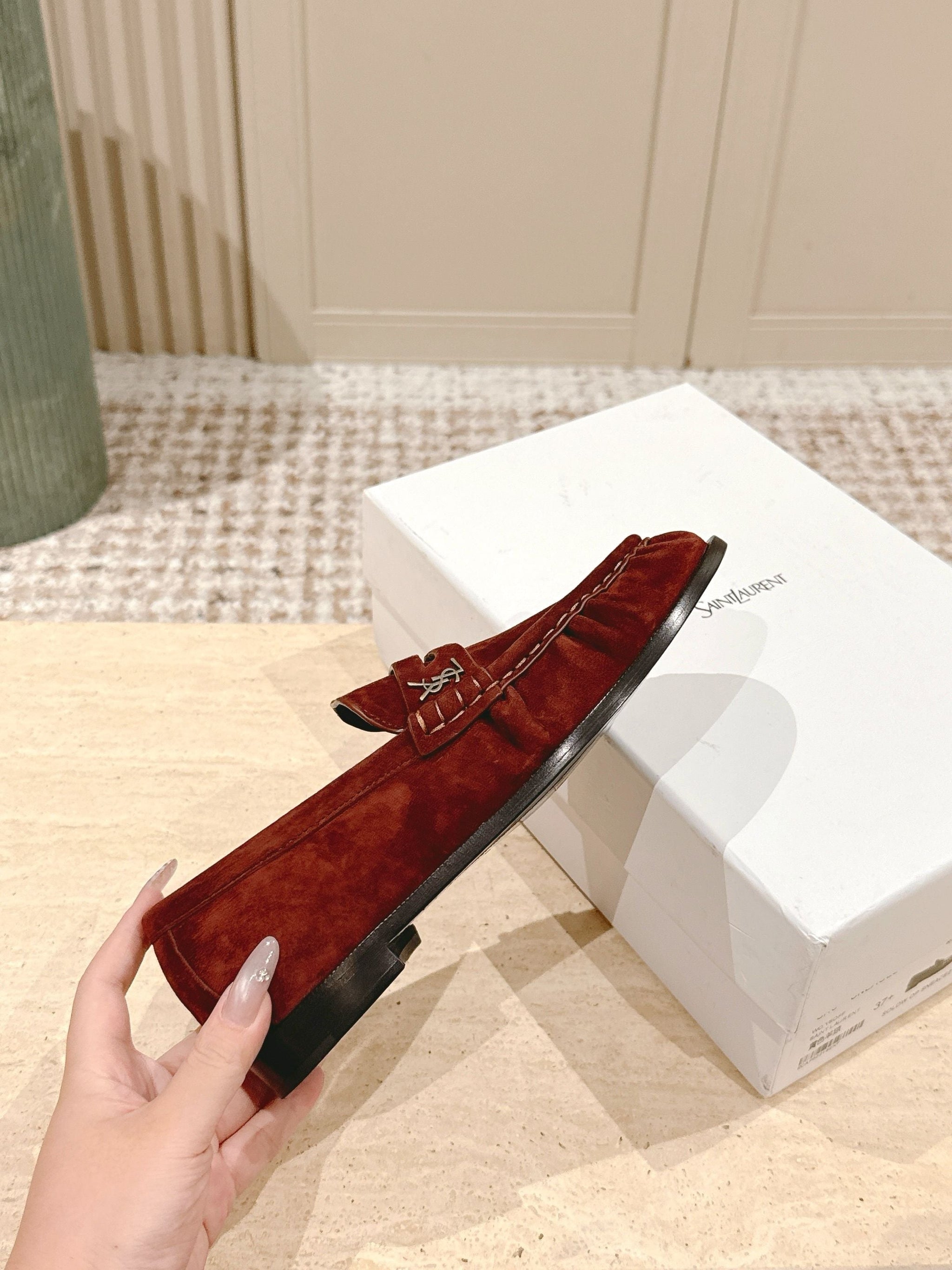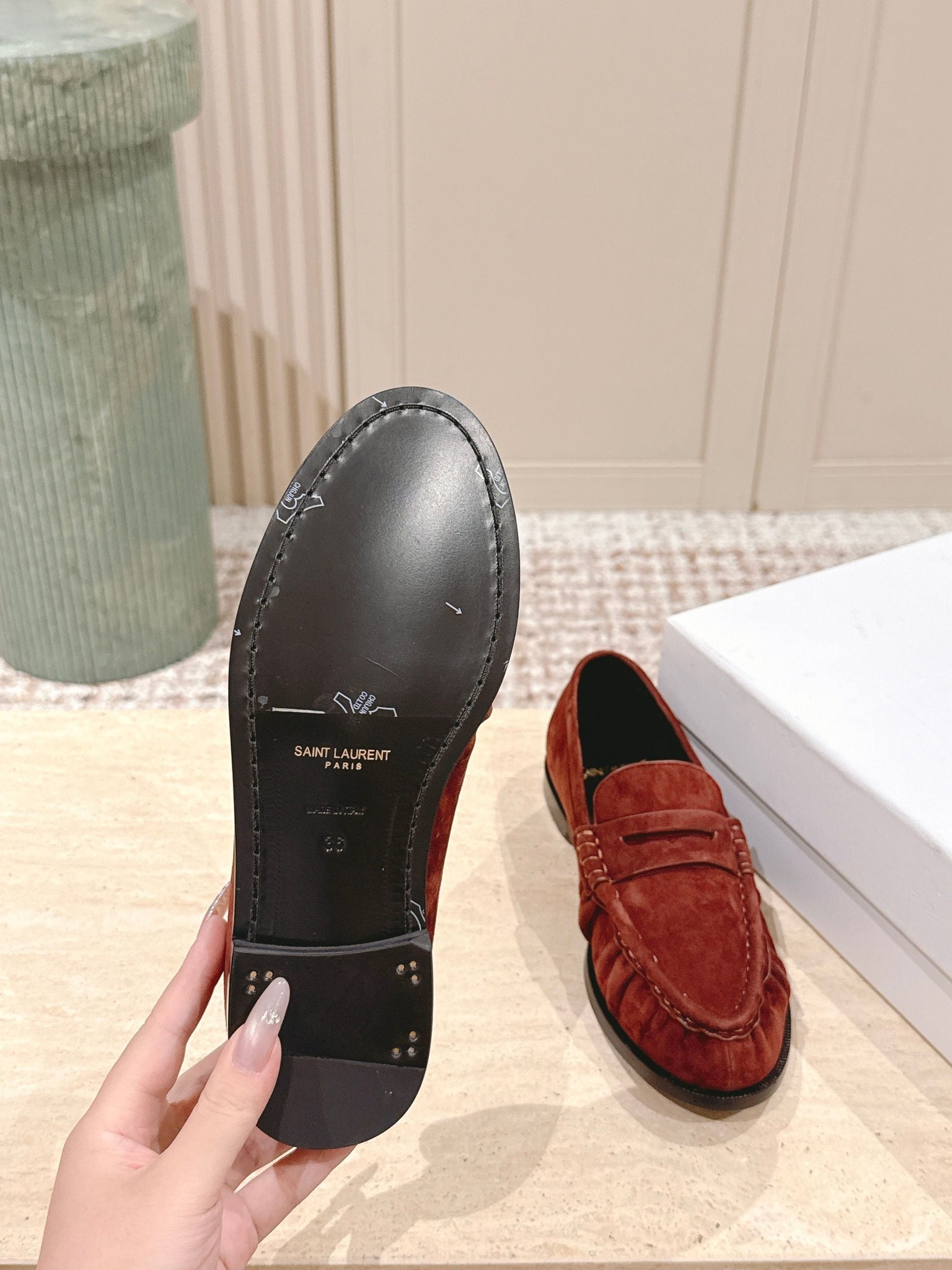 YSL 25S SAINT LAURENT LOAFERS IN DARK BRICK RED SUEDE WITH SMALL LOGO