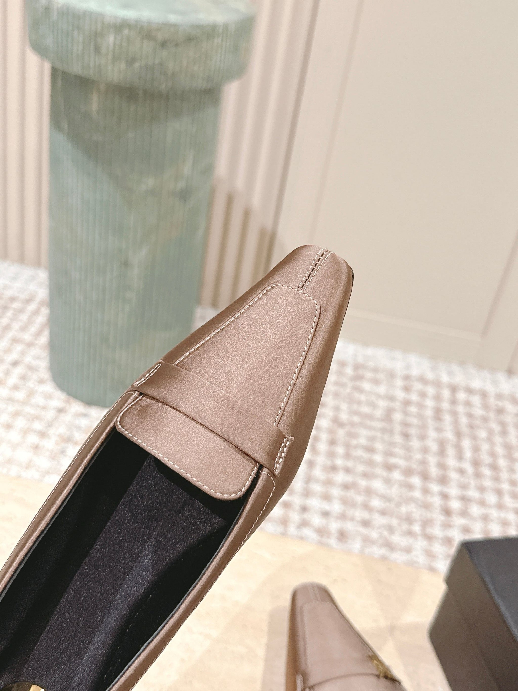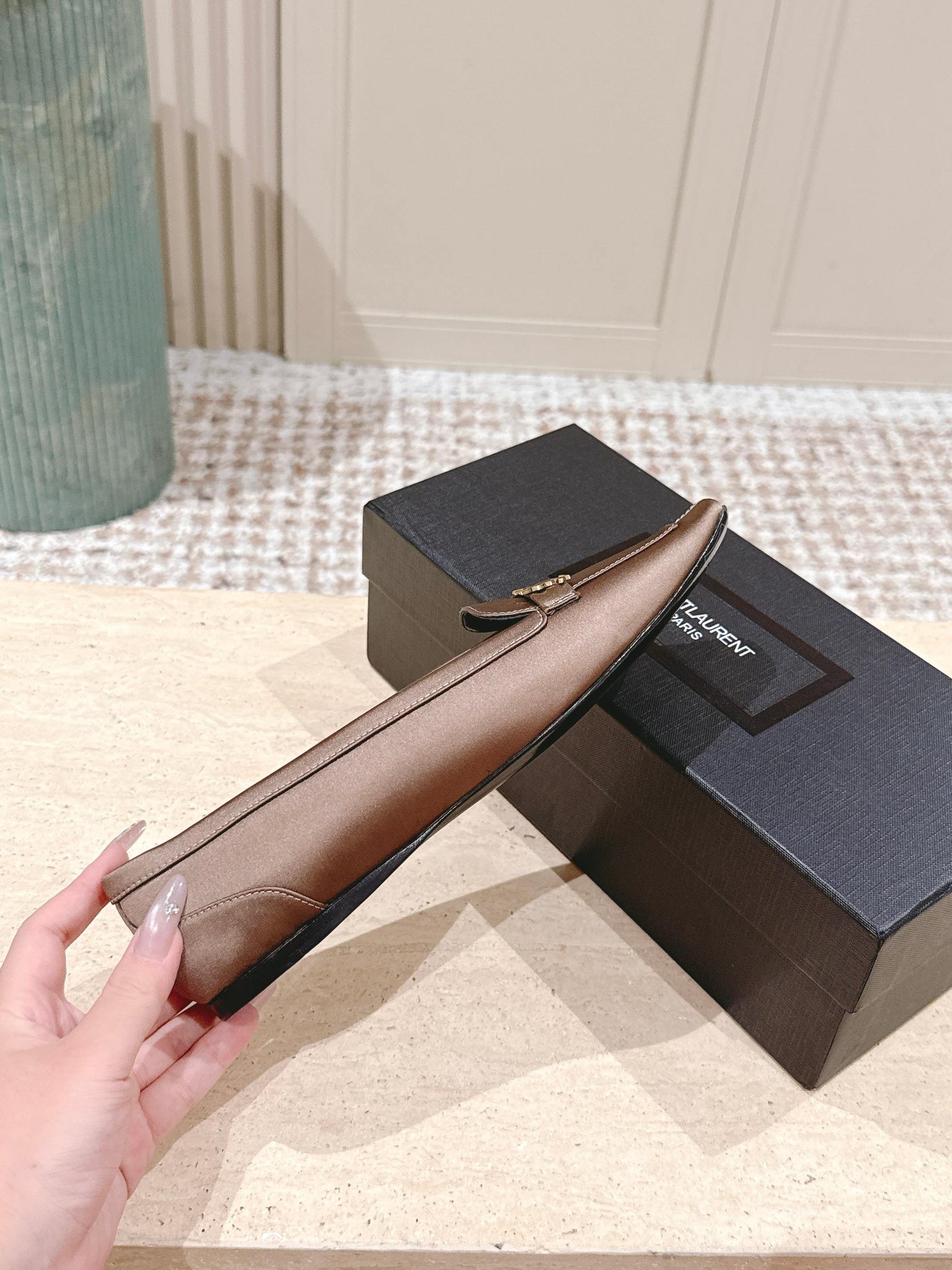 YSL 25S SAINT LAURENT POPPY BALLET FLATS IN TAUPE BROWN SILK