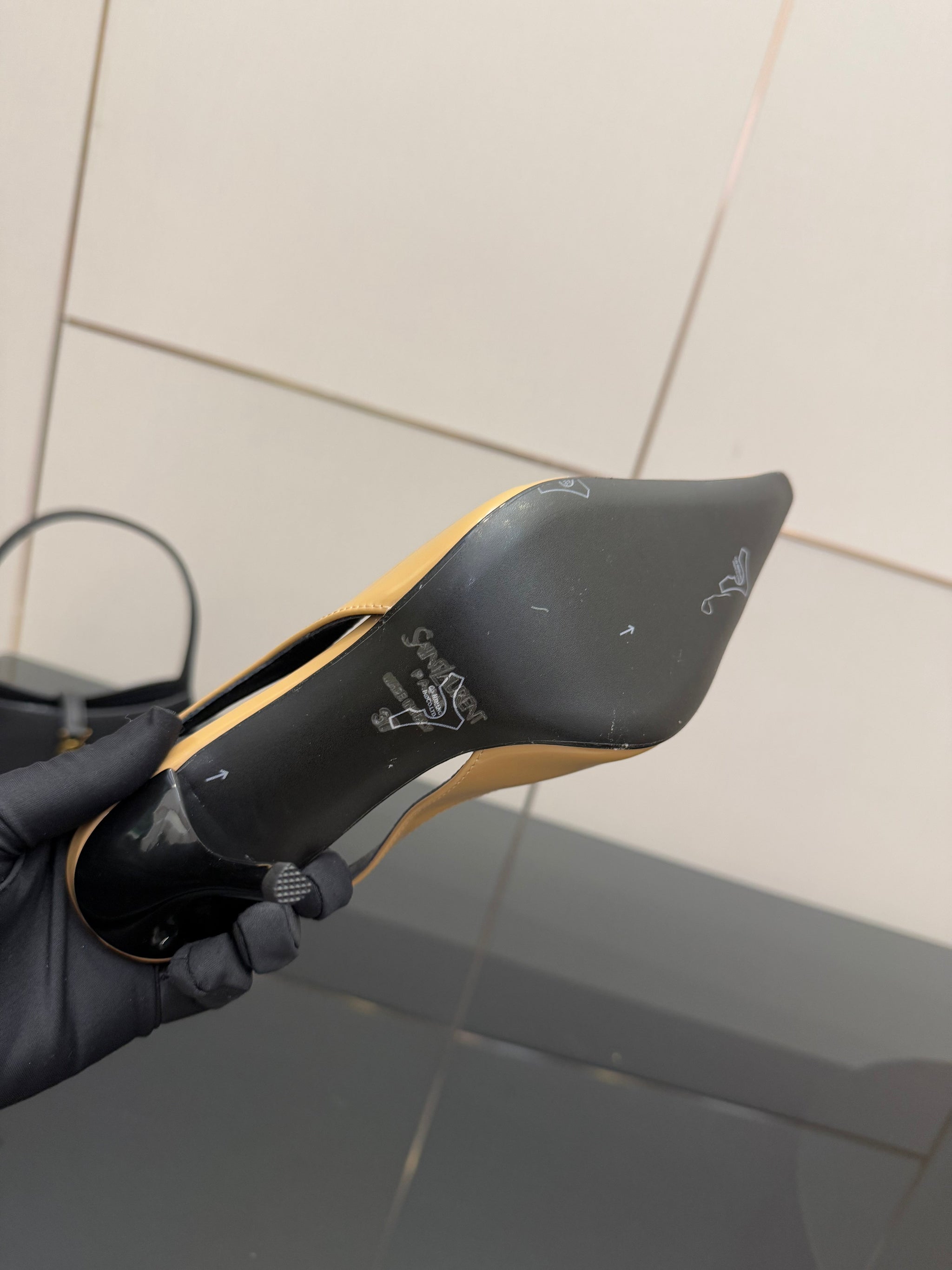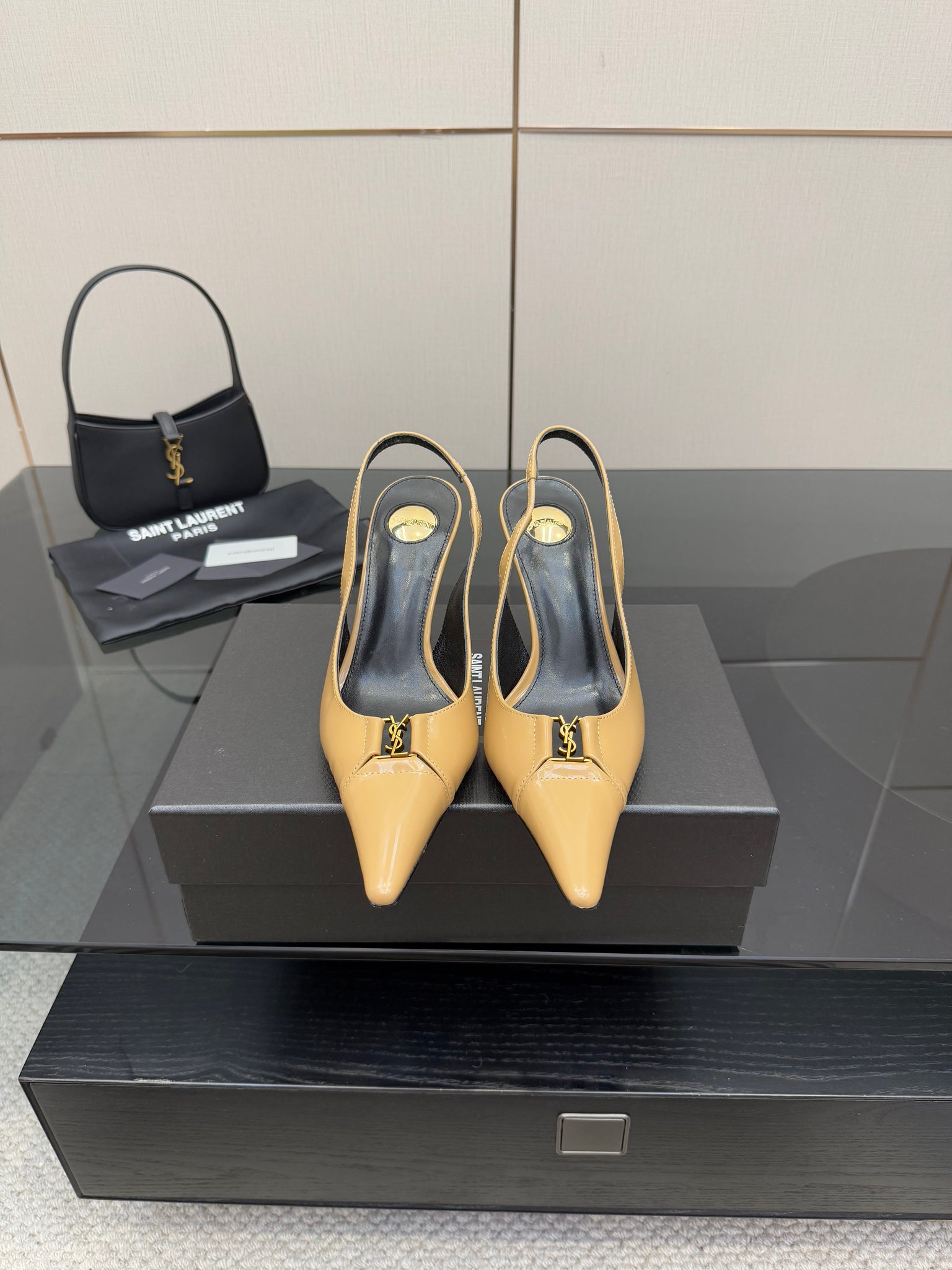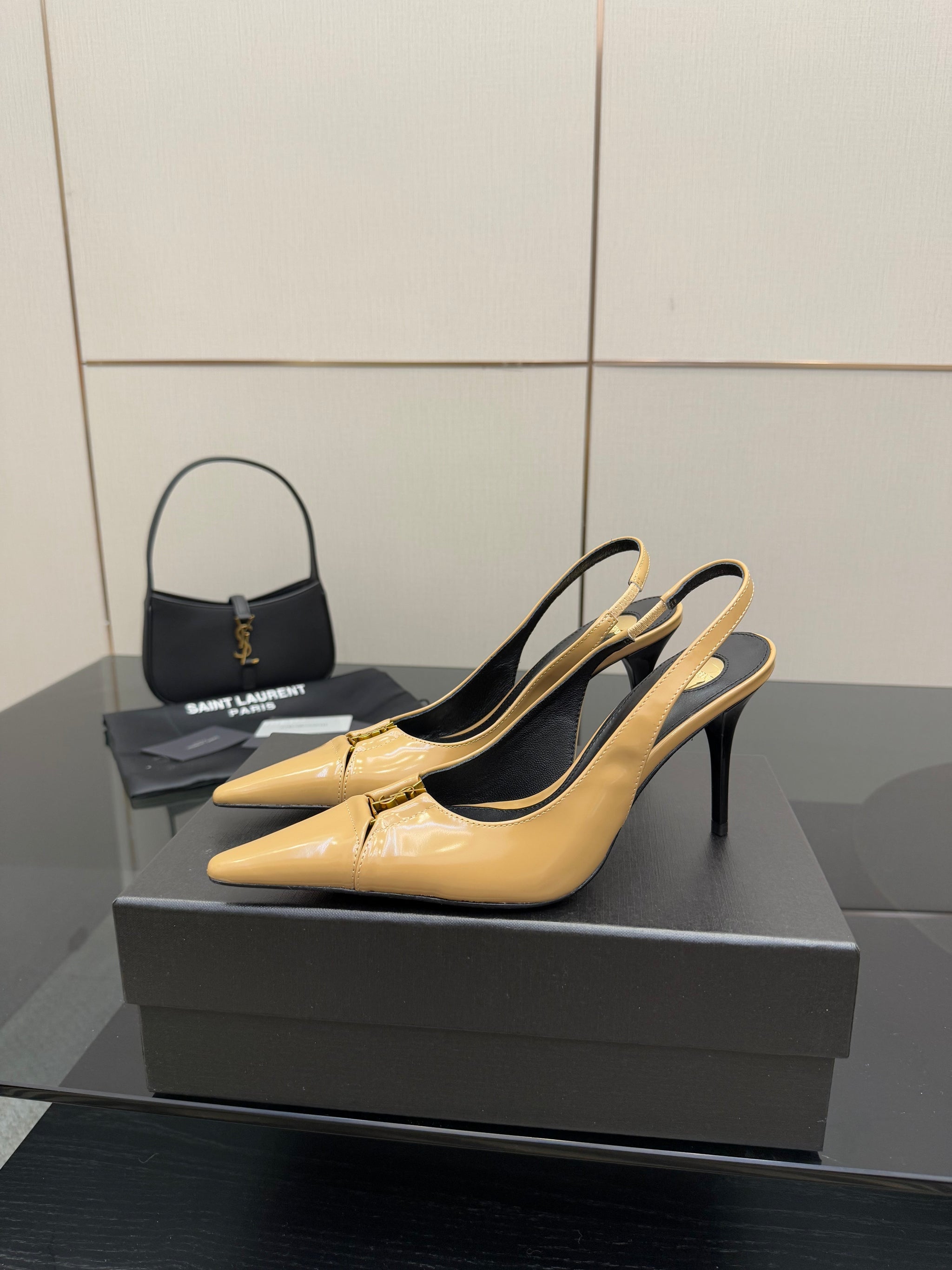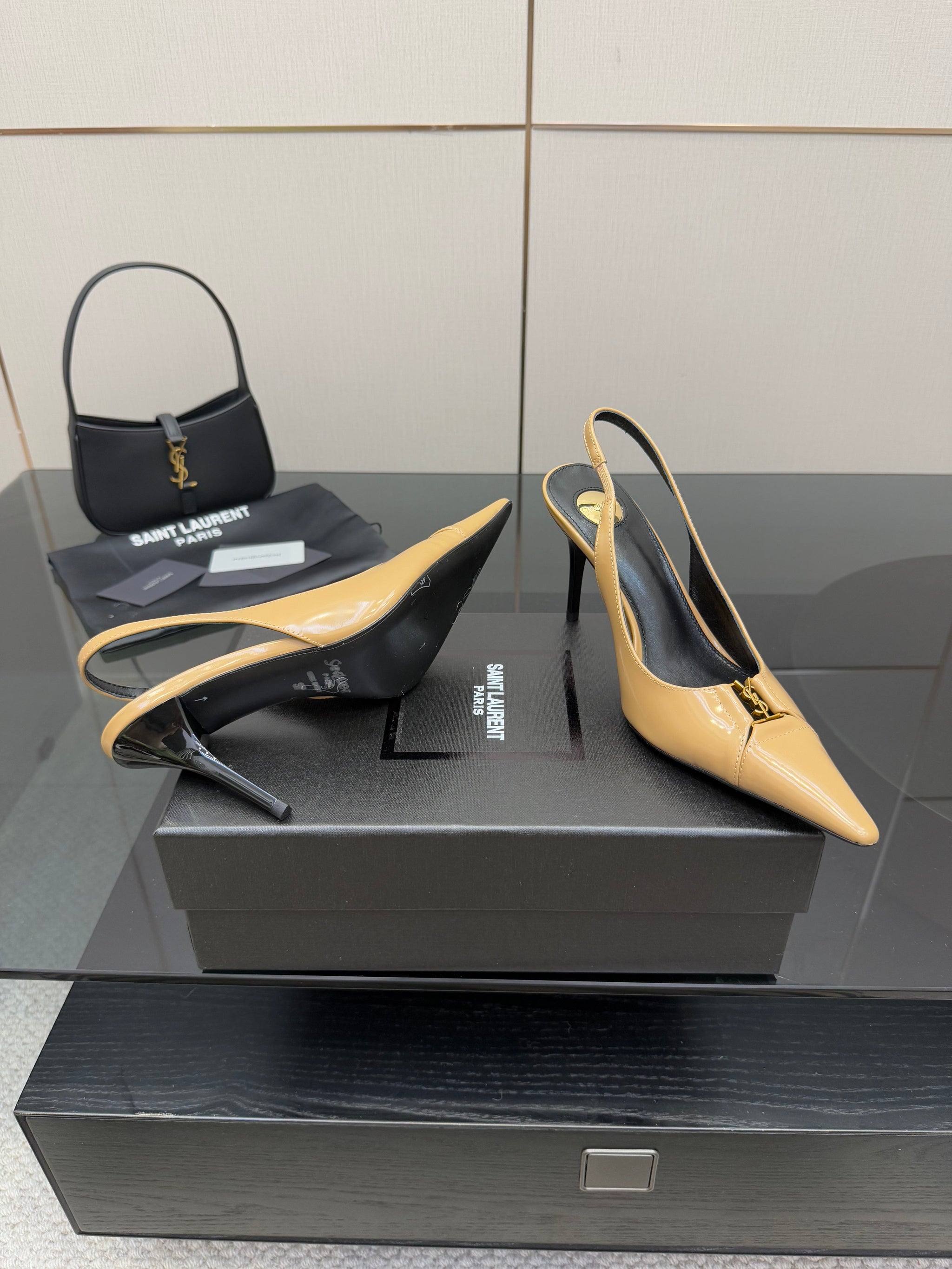 YSL 25S SLINGBACK HIGH HEELS 90 MM IN DARK BEIGE LAMBSKIN WITH GOLD HARDWARE STYLE 5