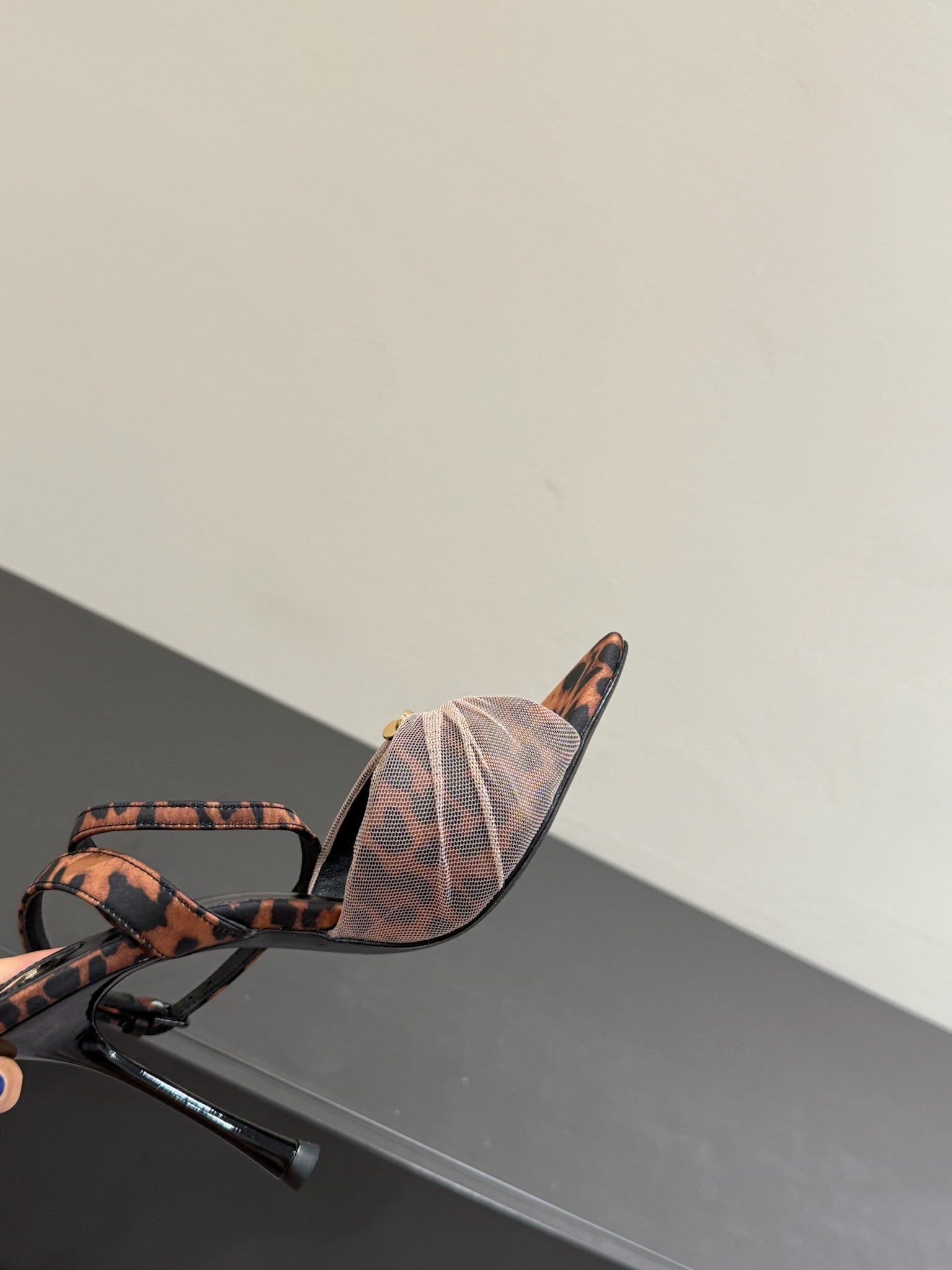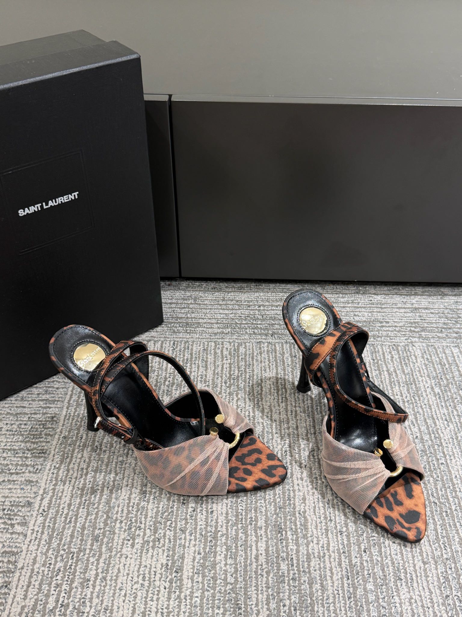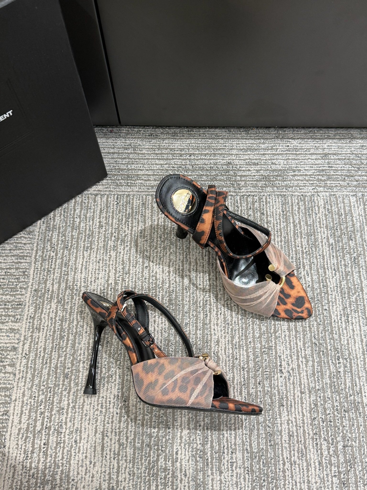 YSL HEELED SANDALS 25S 100 MM IN LEOPARD PRINT LAMBSKIN