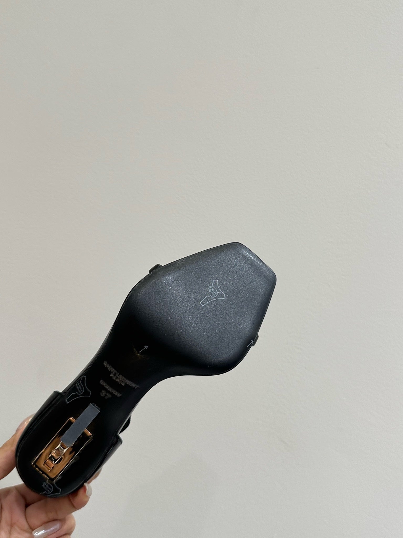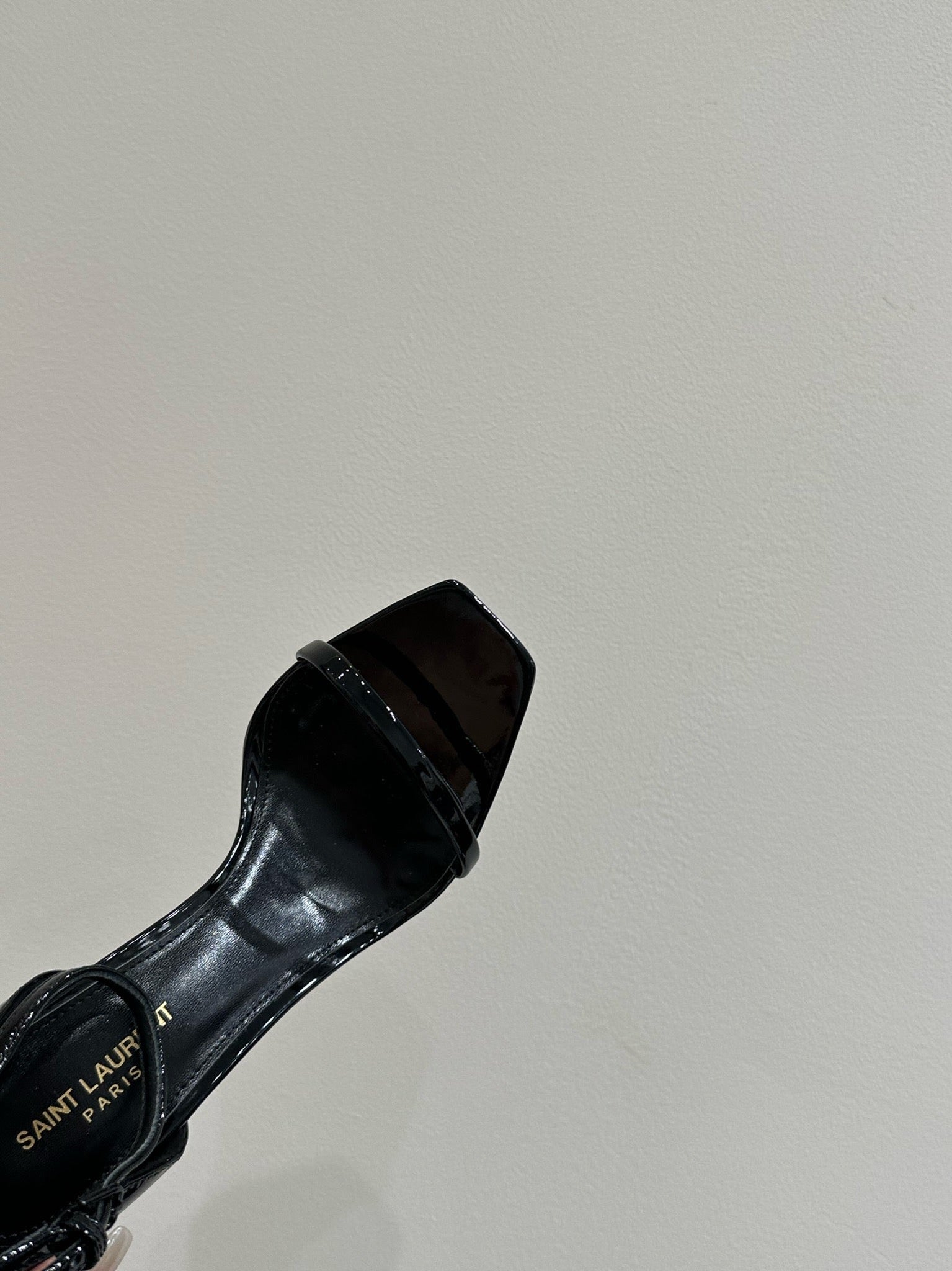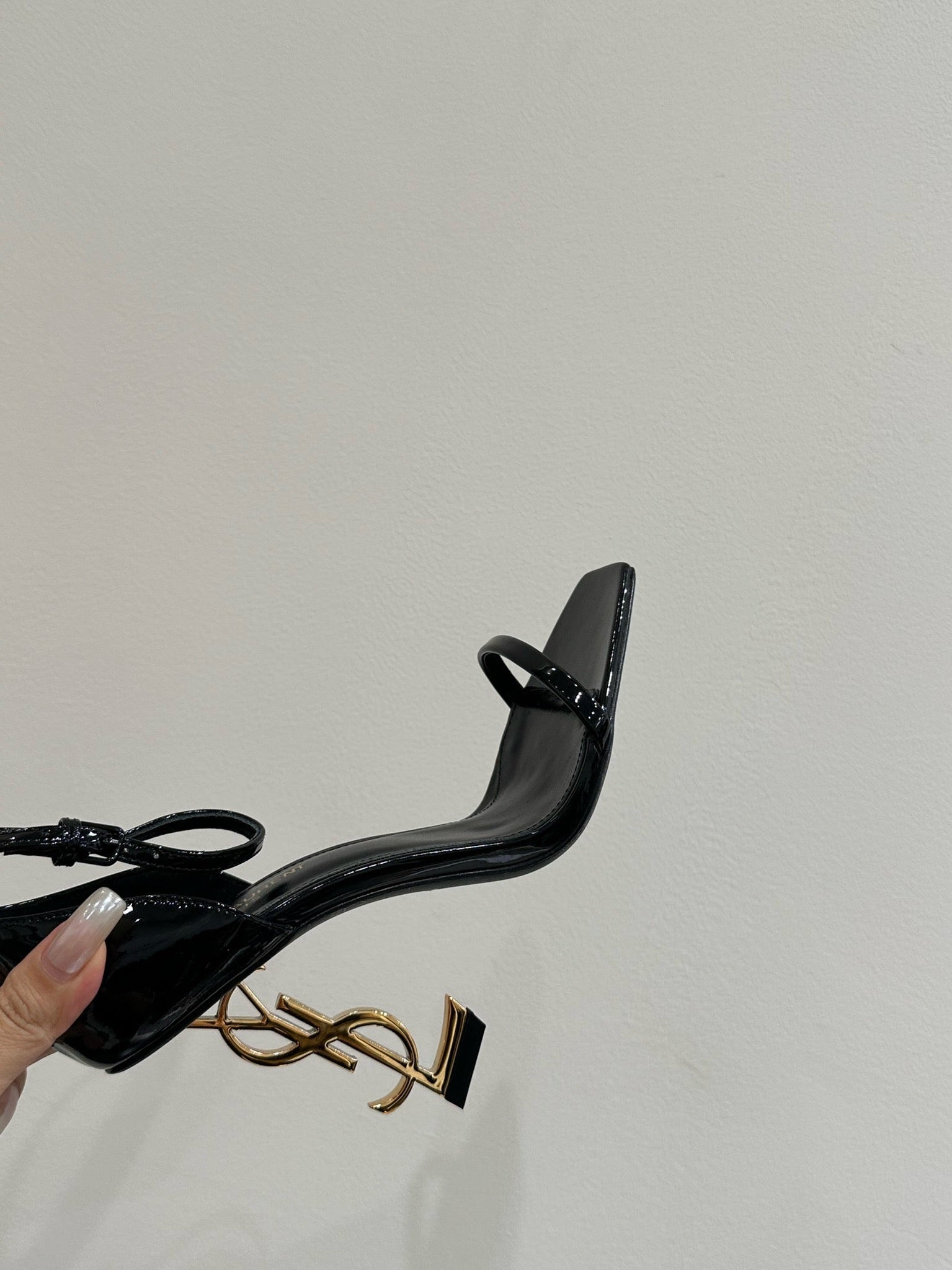 YSL HEELED SANDALS 25S 105 MM IN BLACK GLOSSY LAMBSKIN WITH GOLD HARDWARE
