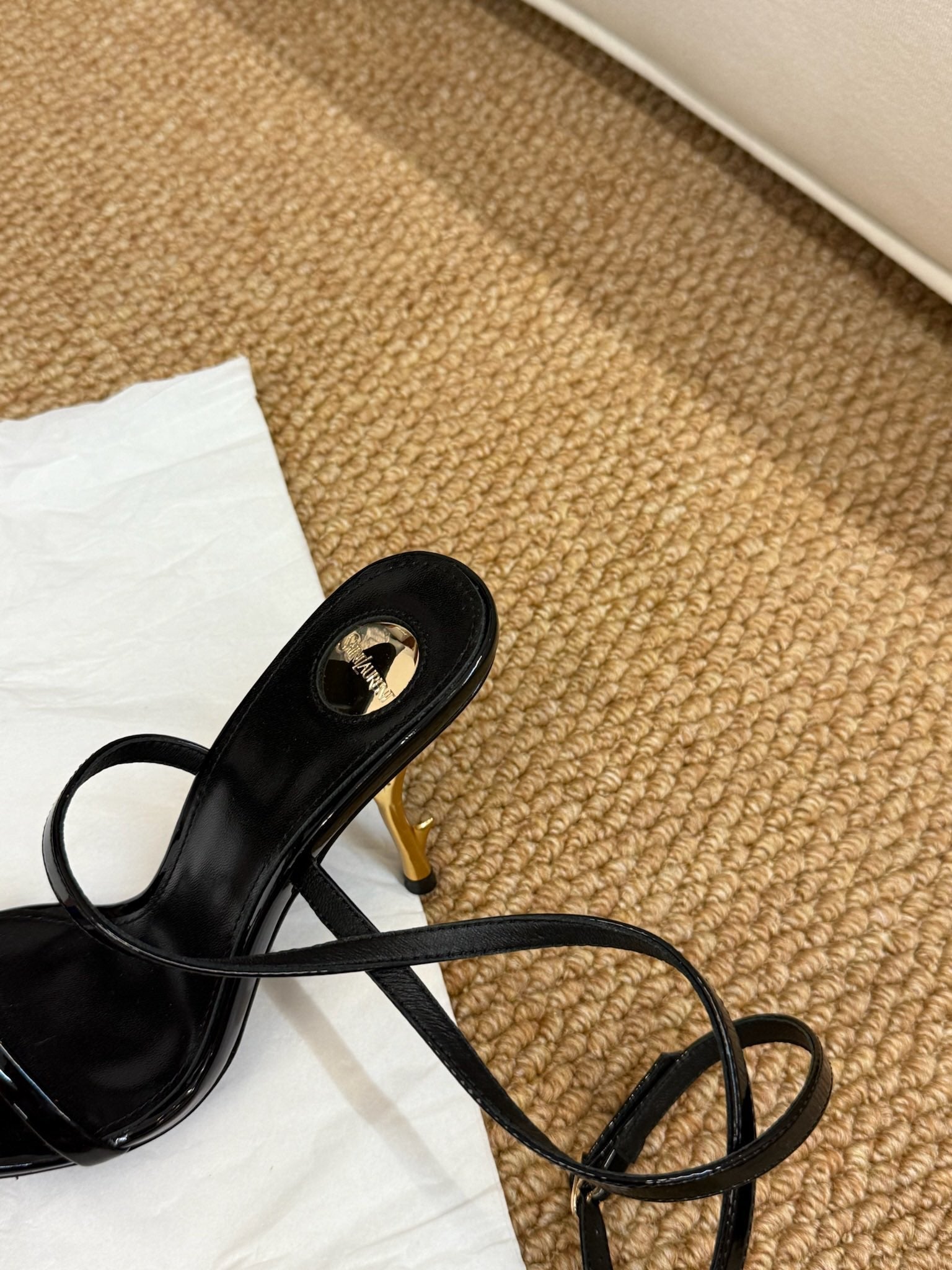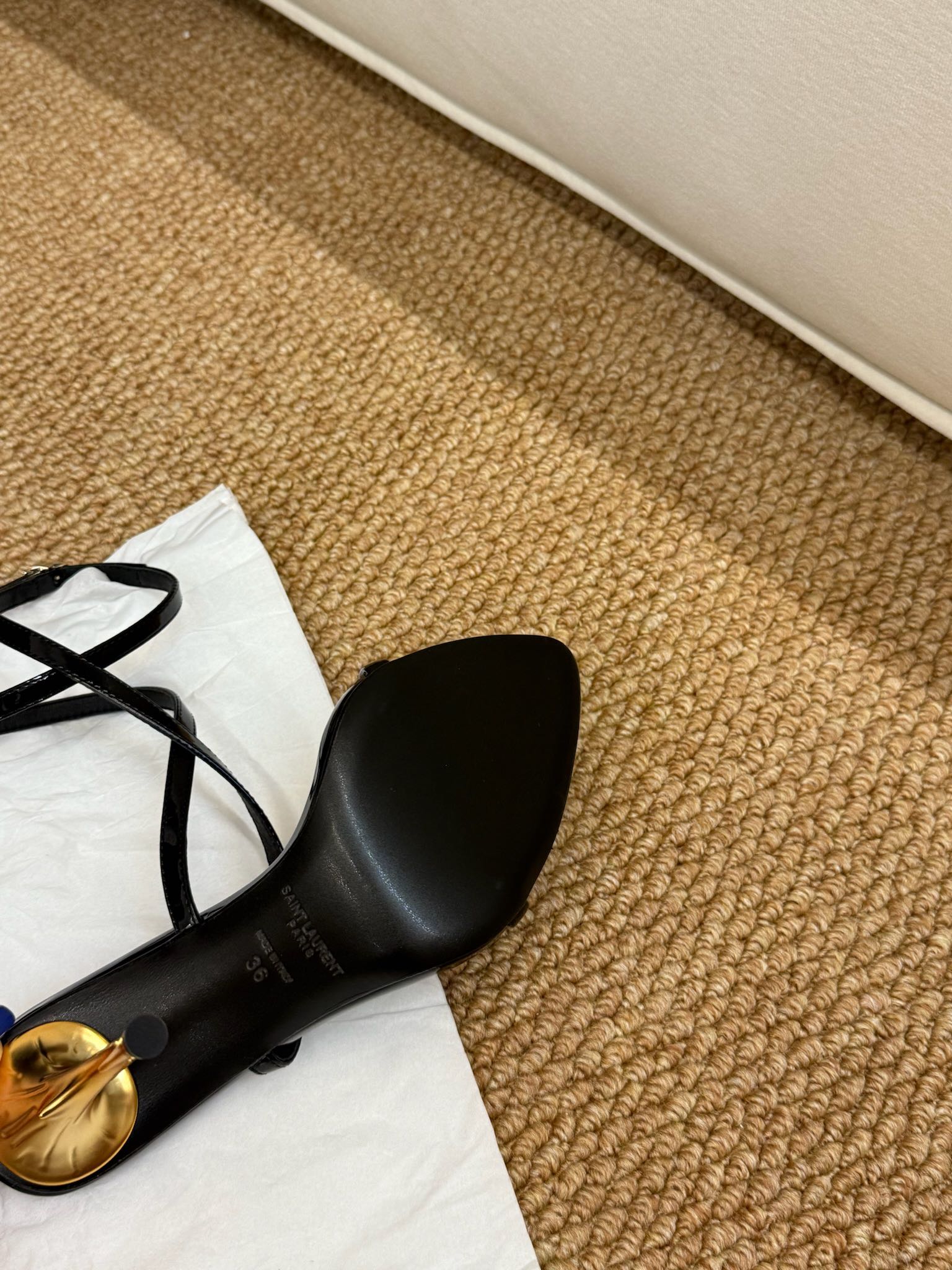 YSL HIGH HEEL SANDALS 25S IN BLACK SHINY LAMBSKIN